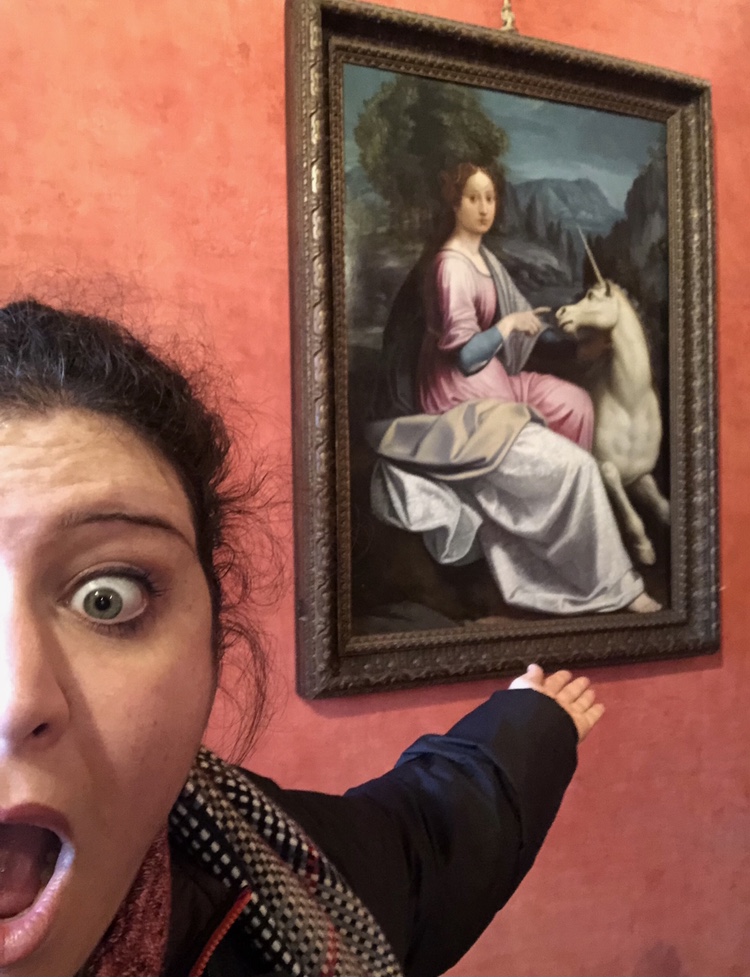 Il Domenichino nel 1604 affresca una parete della Galleria dei Carracci di Palazzo Farnese a Roma ritraendo una dolce fanciulla e il suo unicorno bianco. L’opera è tra le più conosciute e s’intitola ‘Vergine con Unicorno’.