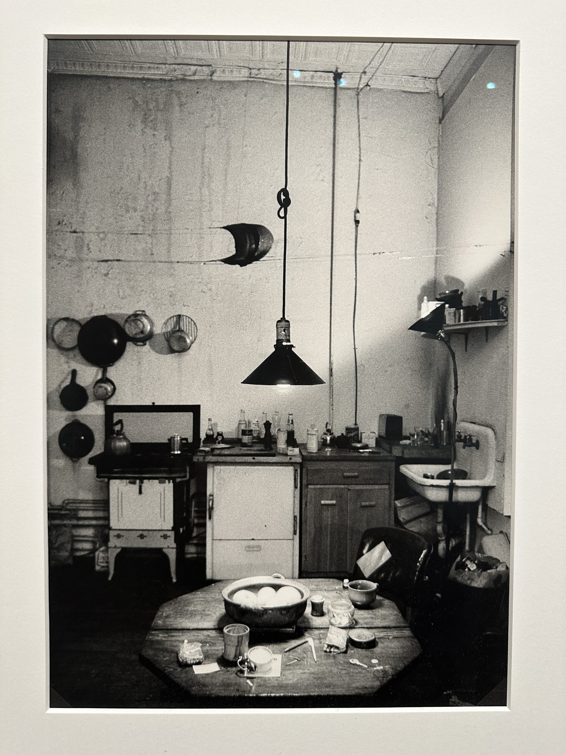 Proprio di quest’ultimo troviamo in esposizione diversi scatti che lo ritraggono mentre buca la tela bianca con un temperino. La luce catturata da Mulas taglia il quadro insieme alla lama. Affascinante come due artisti si fondano in un’unica immagine, quasi in un’unica gestualità.
