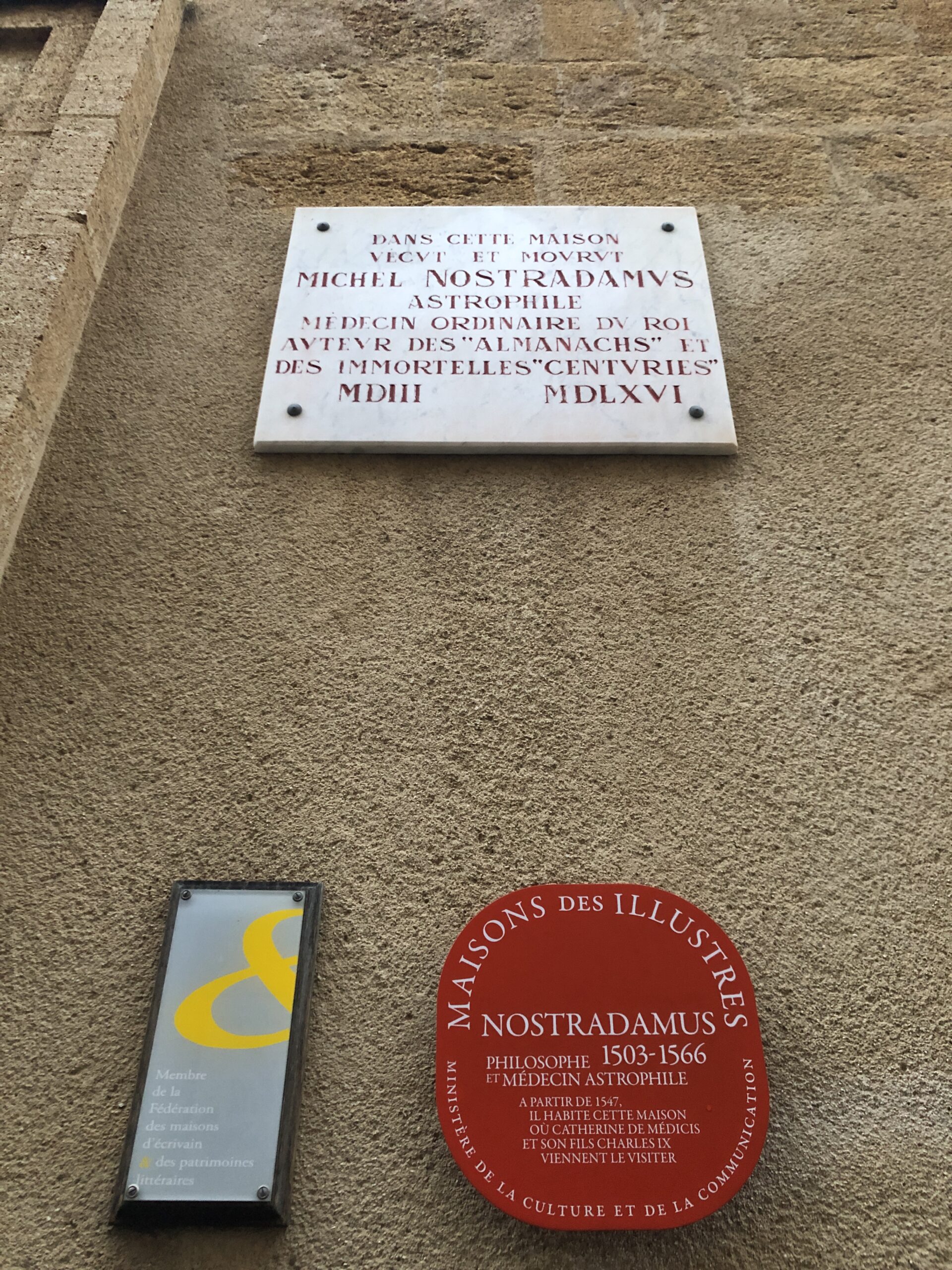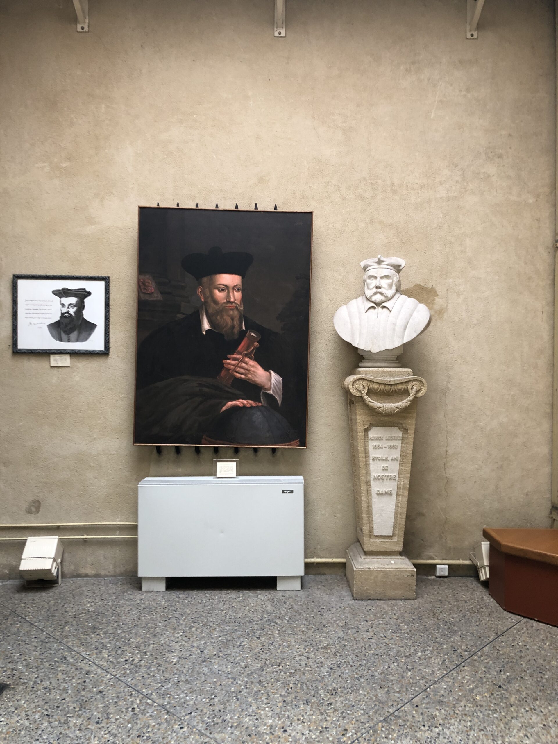 Da fuori ha tutta l’aria di un antico palazzo conservato in maniera egregia, c’è anche una targa vicino l’entrata che informa i passanti di trovarsi al cospetto della dimora di Nostradamus, al quale peraltro viene intitolata anche la via, e non si può far a meno di entrare perché la curiosità è tanta. Il famoso astrologo vissuto nel 1500 è uno dei più conosciuti scrittori di profezie della storia, nato a Saint-Rey-de-Provance, un paesino poco distante, si trasferì qui a Salon con la seconda moglie e i suoi sei figli, non credo esista al mondo qualcuno che non abbia almeno una volta letto o sentito parlare delle sue predizioni. Durante la sua carriera erano in molti ad affidarsi a lui lasciandosi ispirare dalle sue previsioni ricordiamo ad esempio la Regina Caterina de Medici che lo stimava a tal punto da assumerlo a corte in qualità di medico.