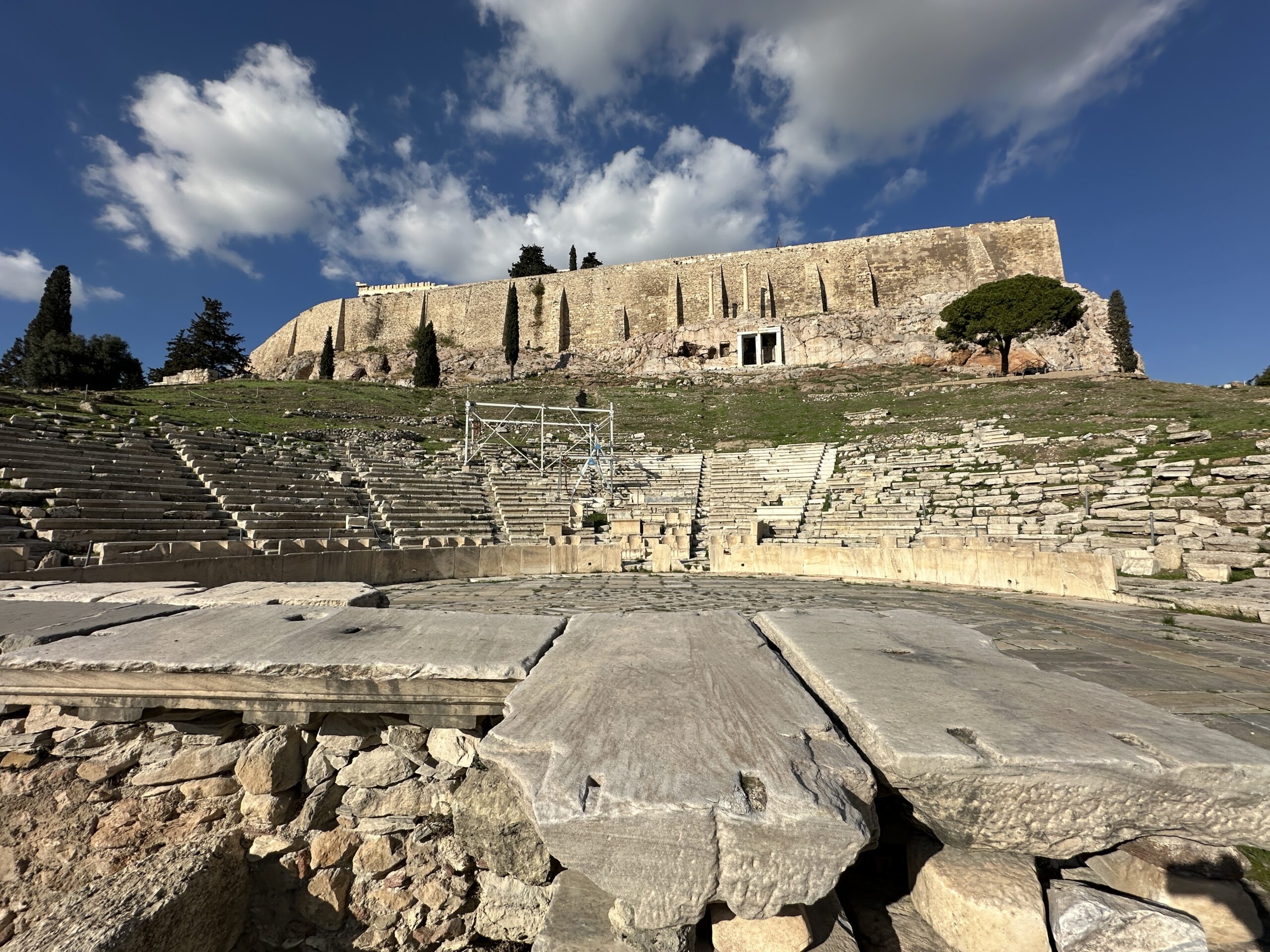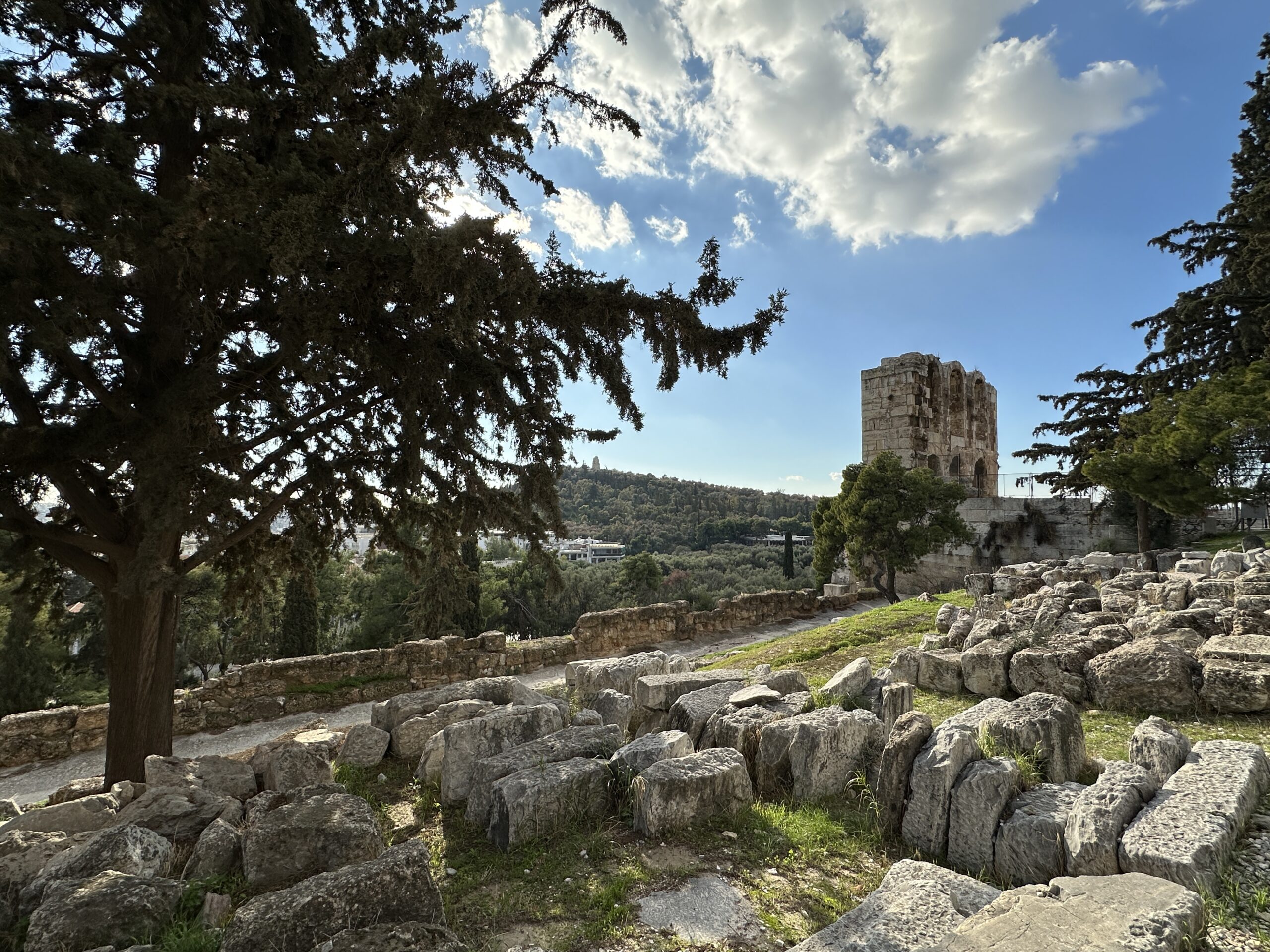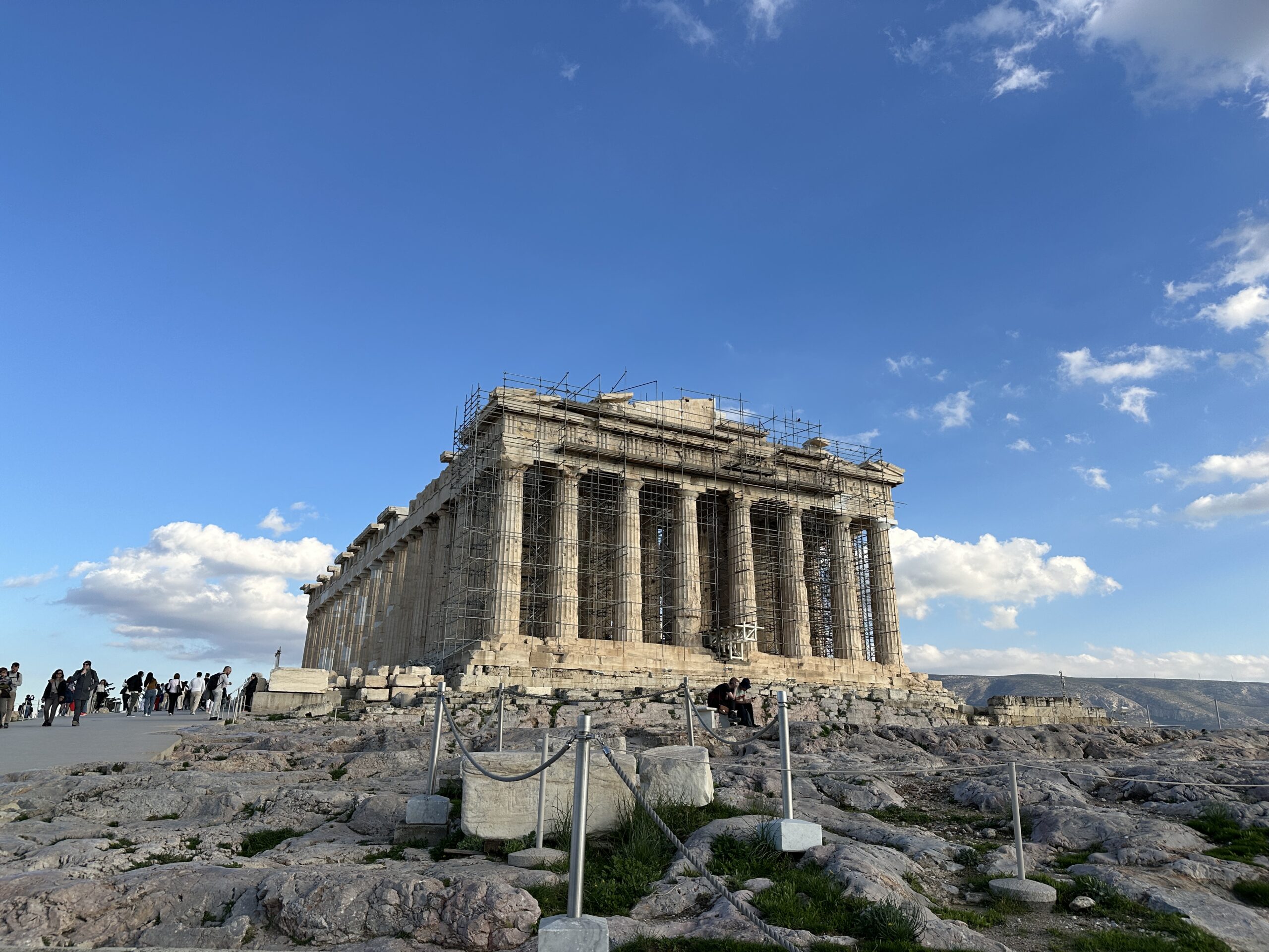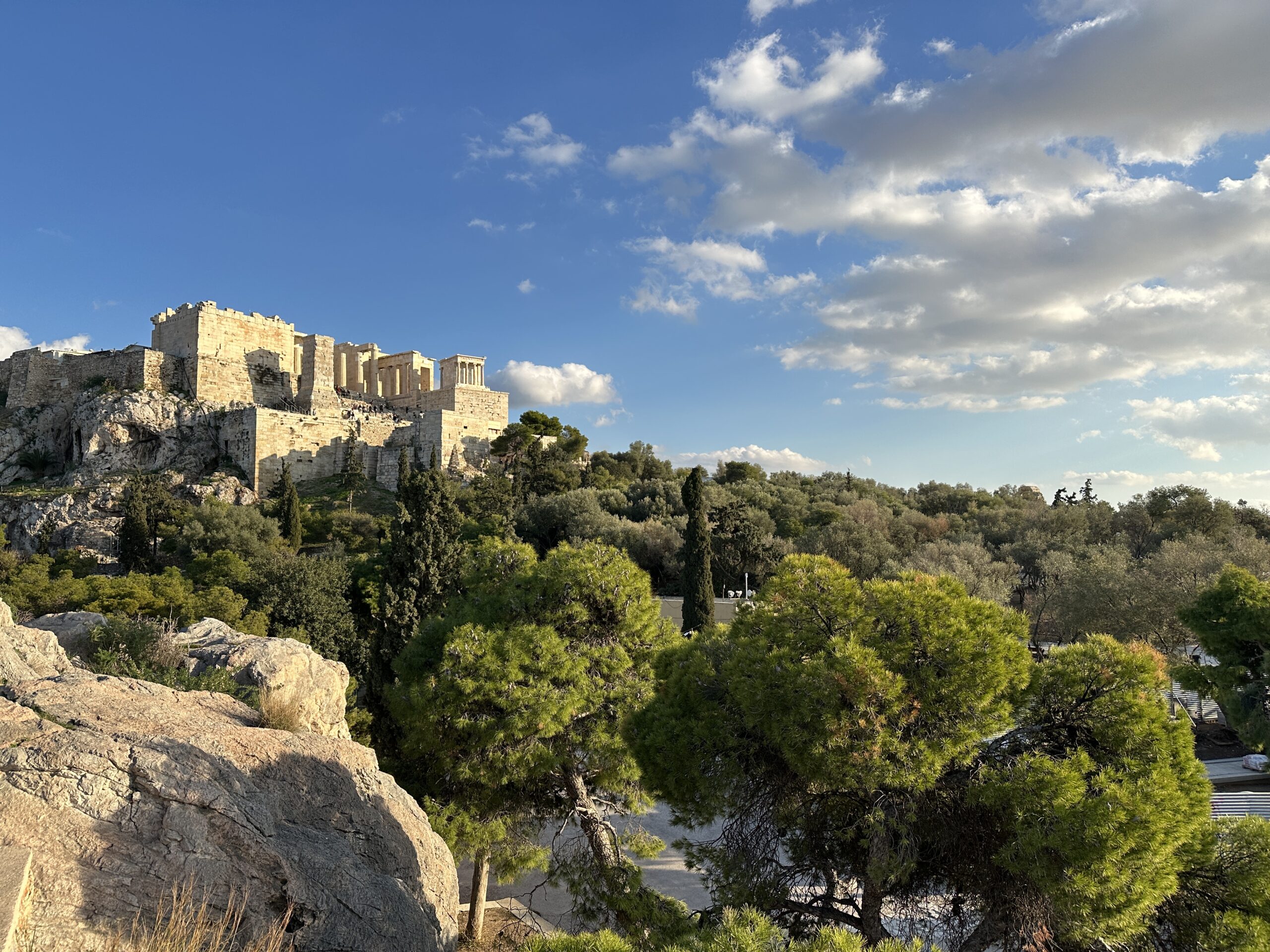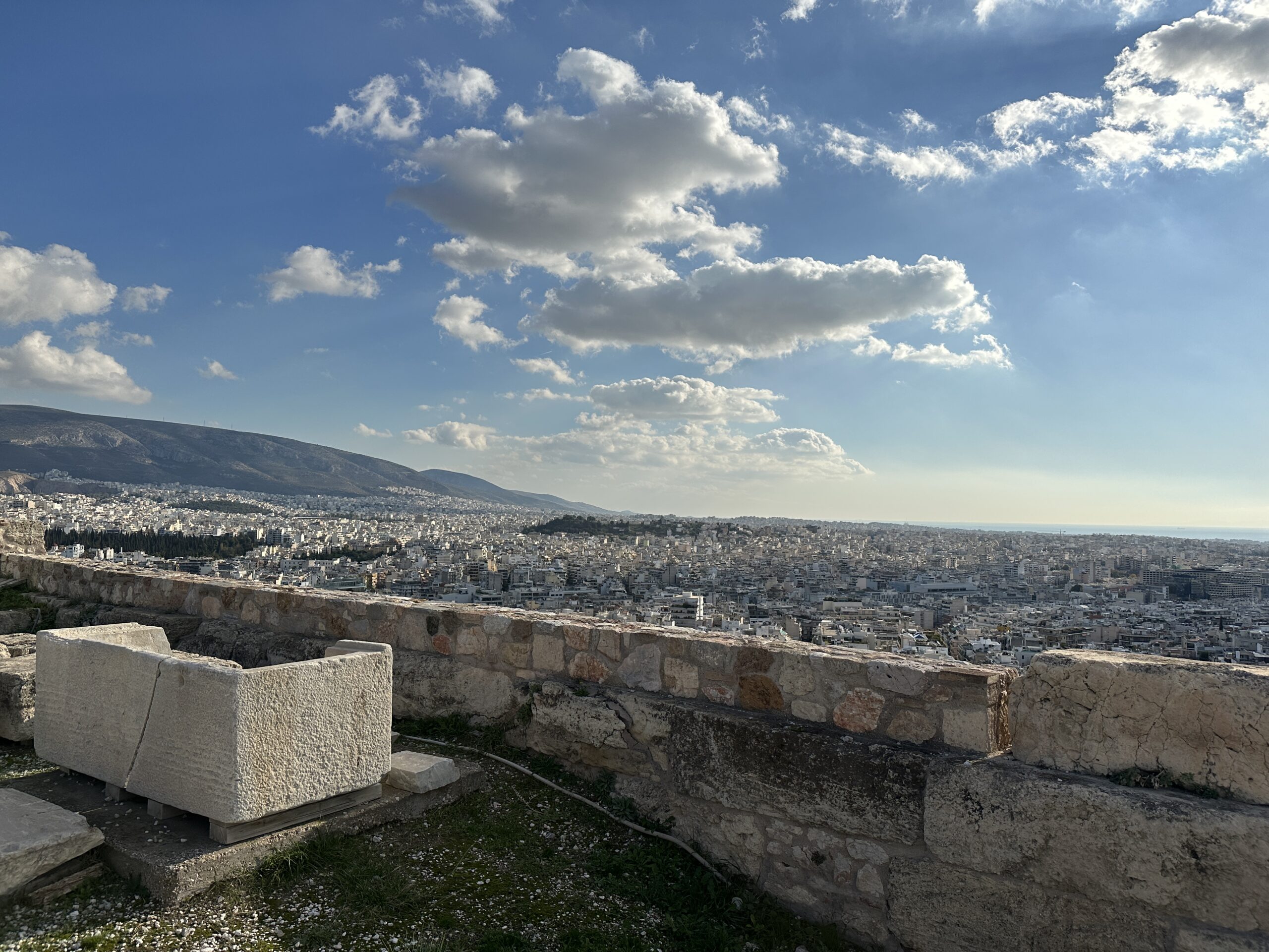 Considerando l’irregolarità del perimetro dell’altura, la pianta di questi edifici è piuttosto disordinata. Atene ai suoi piedi sembra un mondo totalmente estraneo all’atmosfera di questo luogo antico. Mi aggiro cercando di carpire il più piccolo dei particolari.