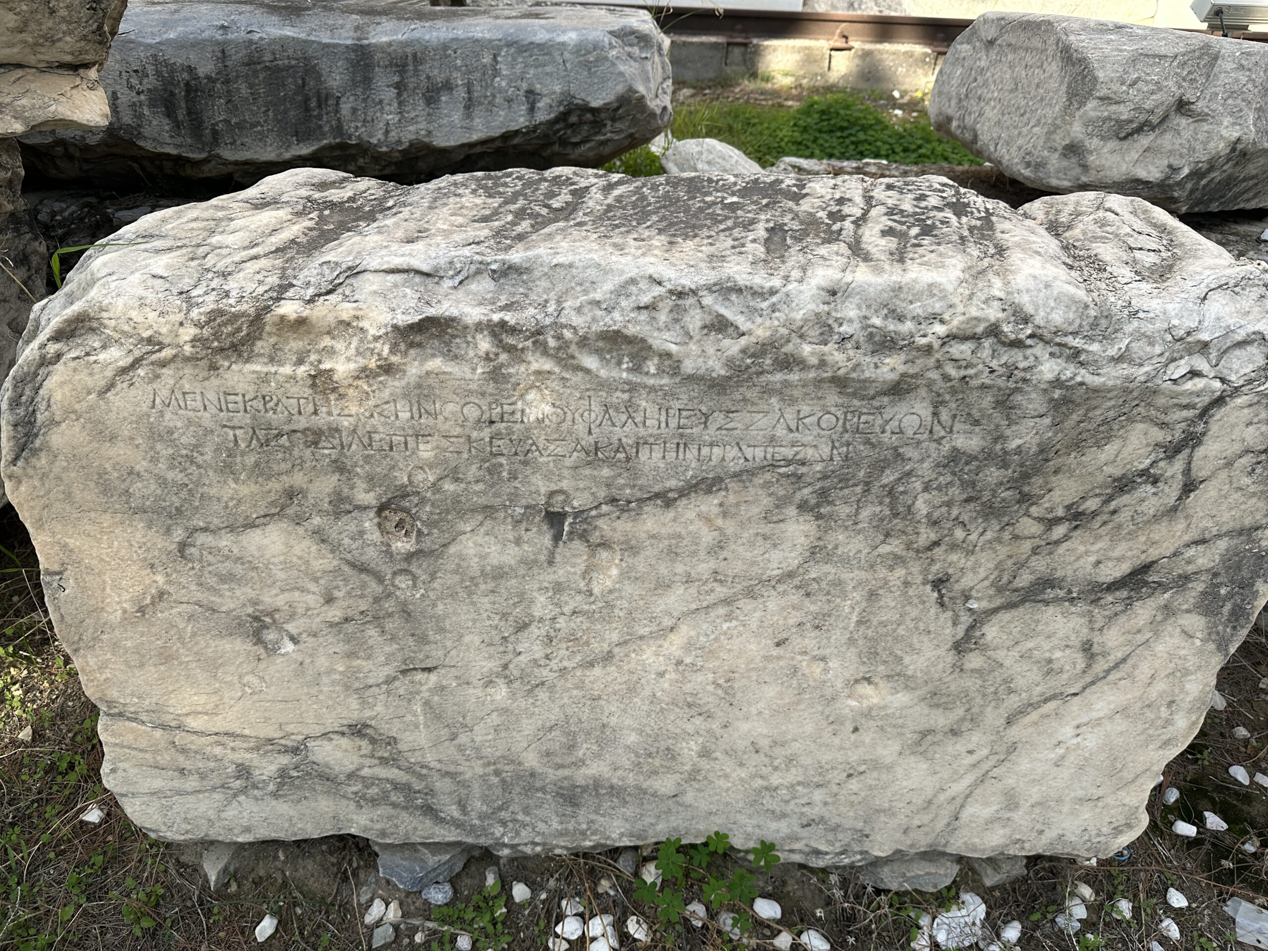 “Parte di queste colonne sono state restaurate e sostituite. Vedi quei segmenti più chiari?”