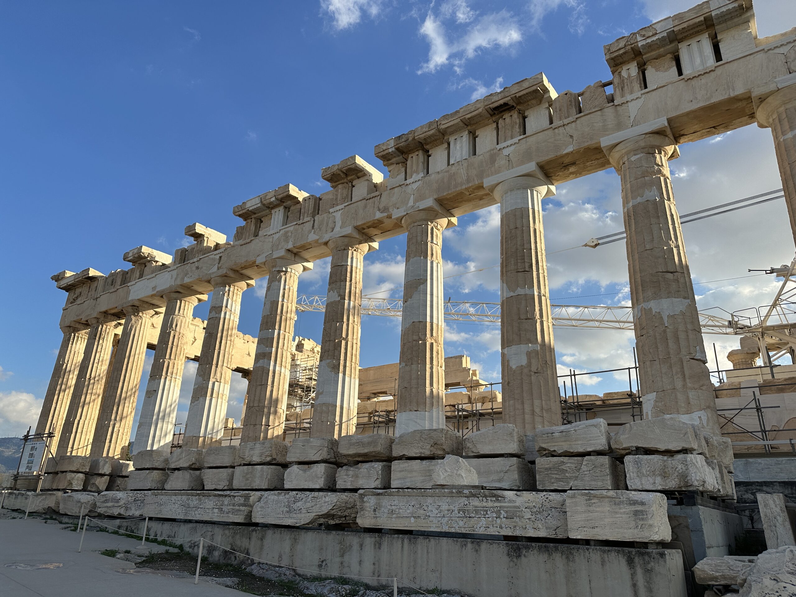 “Sì sto leggendo su questa guida che il Partenone era ricco di colori, blu cobalto, bronzo, giallo, rosso.”