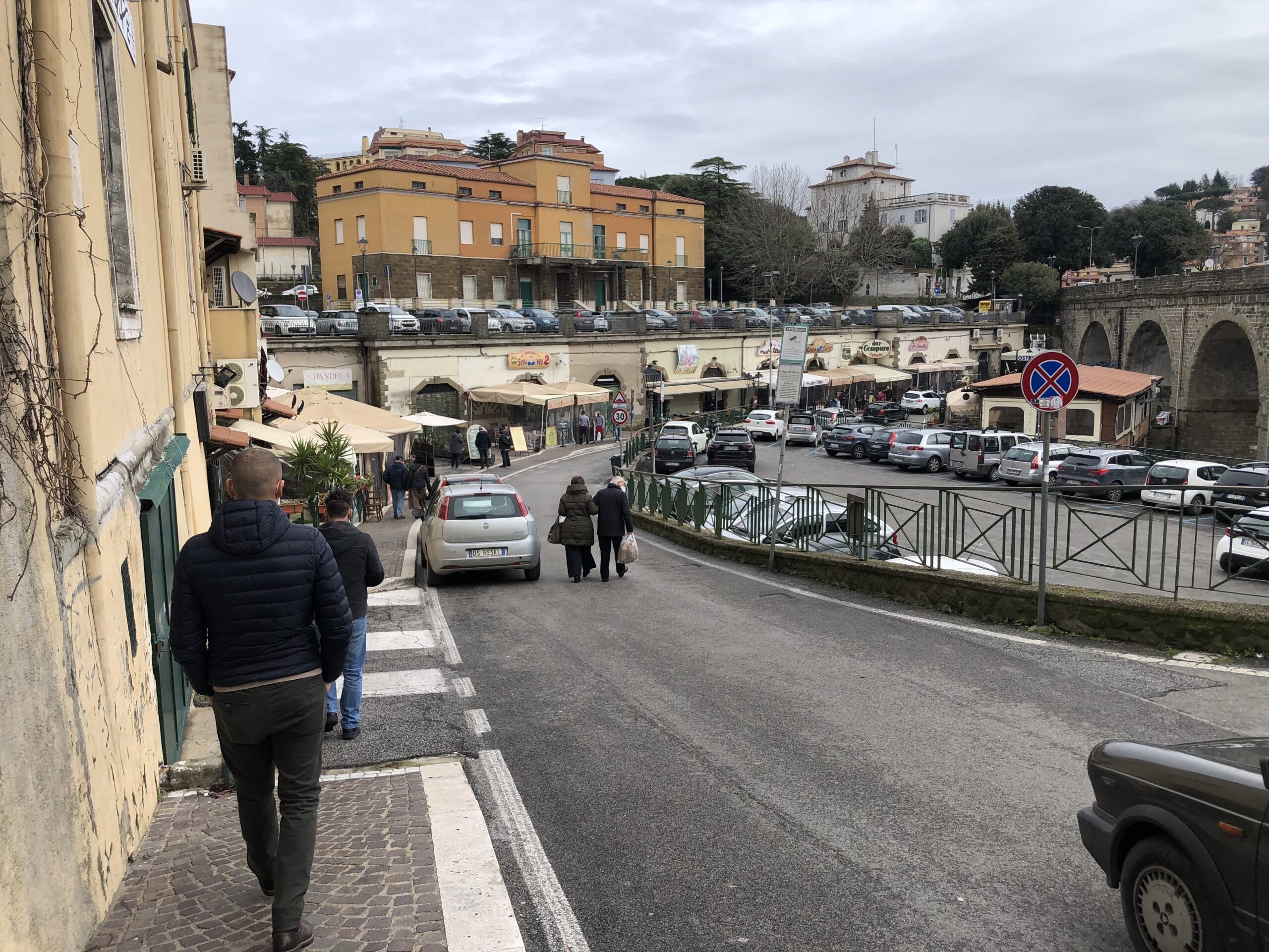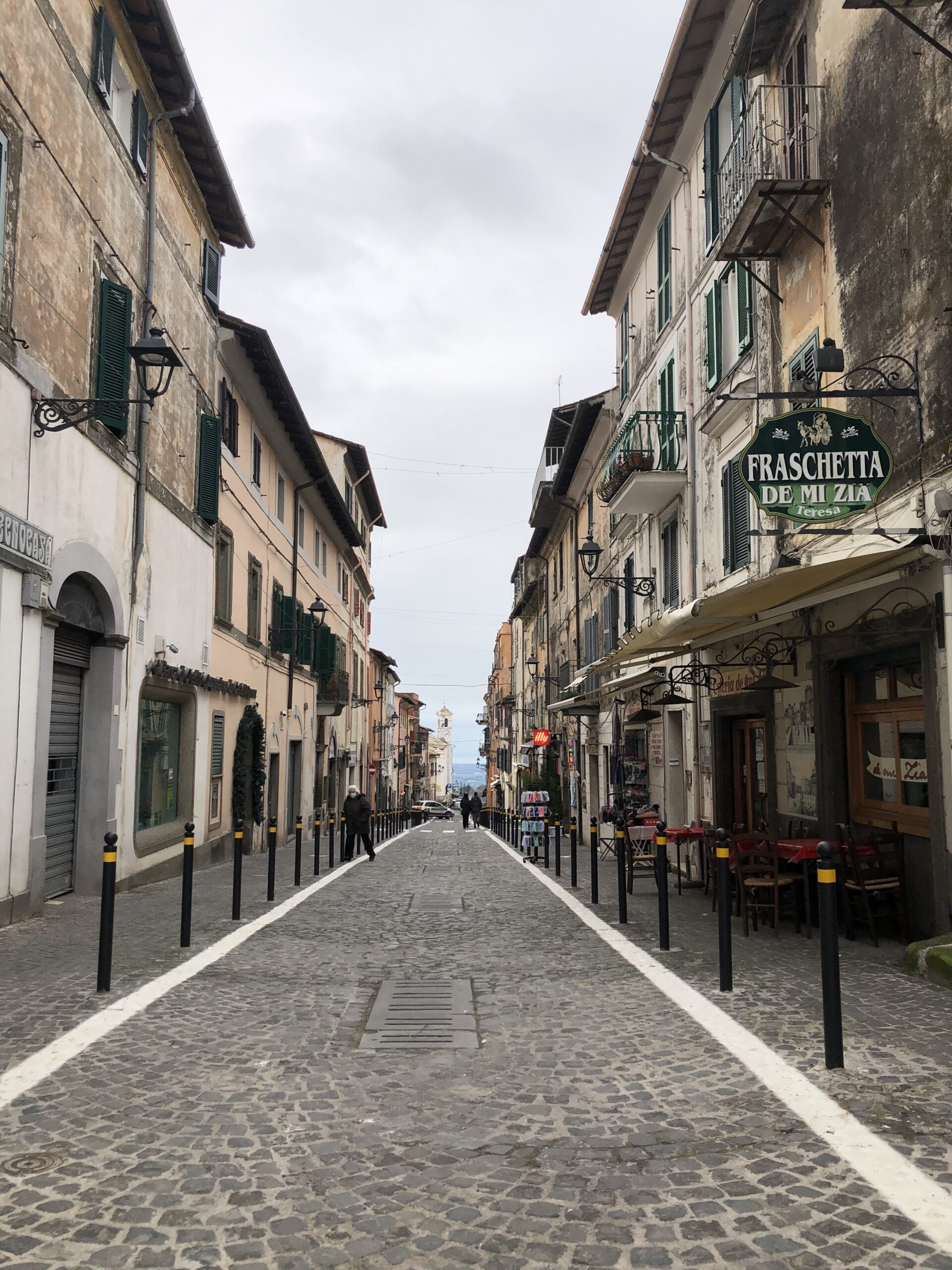 Una breve via (Borgo San Rocco) nella quale si susseguono le fraschette con i loro esigui spazi interni ed esterni. Un parcheggio sul tetto, un parcheggio fronte marciapiede e lunghissime code di turisti e residenti che si accalcano nel fine settimana.