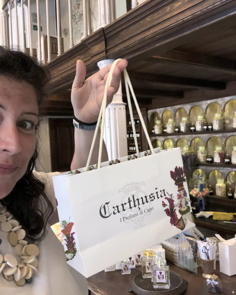 Mio malgrado c’è solo una cosa che io possa fare: lasciarmi andare ai piaceri dello shopping nella bottega dei profumi Carthusia. Compro un paio di fragranze che conquistano le mie narici, certo che un po’ di sorrisi da parte delle addette alle vendite non guasterebbero. Sembrava di parlare con degli zombie appena scongelati.