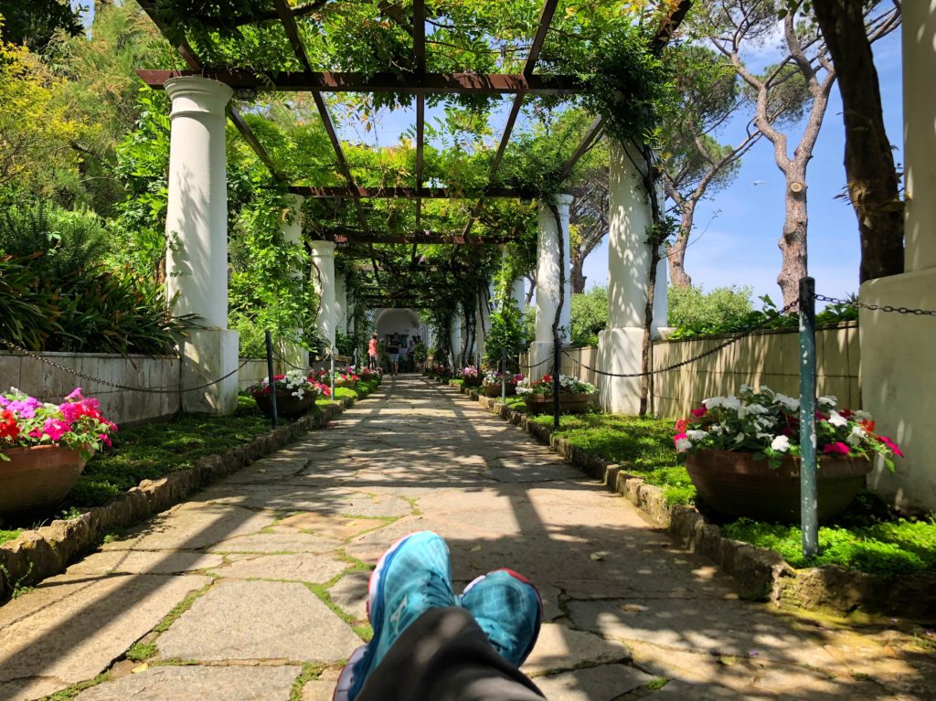 La nostra guida ci racconta che duemilacinquecento anni fa c’era un solo modo di raggiungere Ana (in greco antico significa “altura” cioè la parte più alta di Capri), salendo 1000 scalini dalla piazzetta del porto, diciamocelo, alla fine non sono nemmeno tanti se hai un paio di mesi a disposizione!