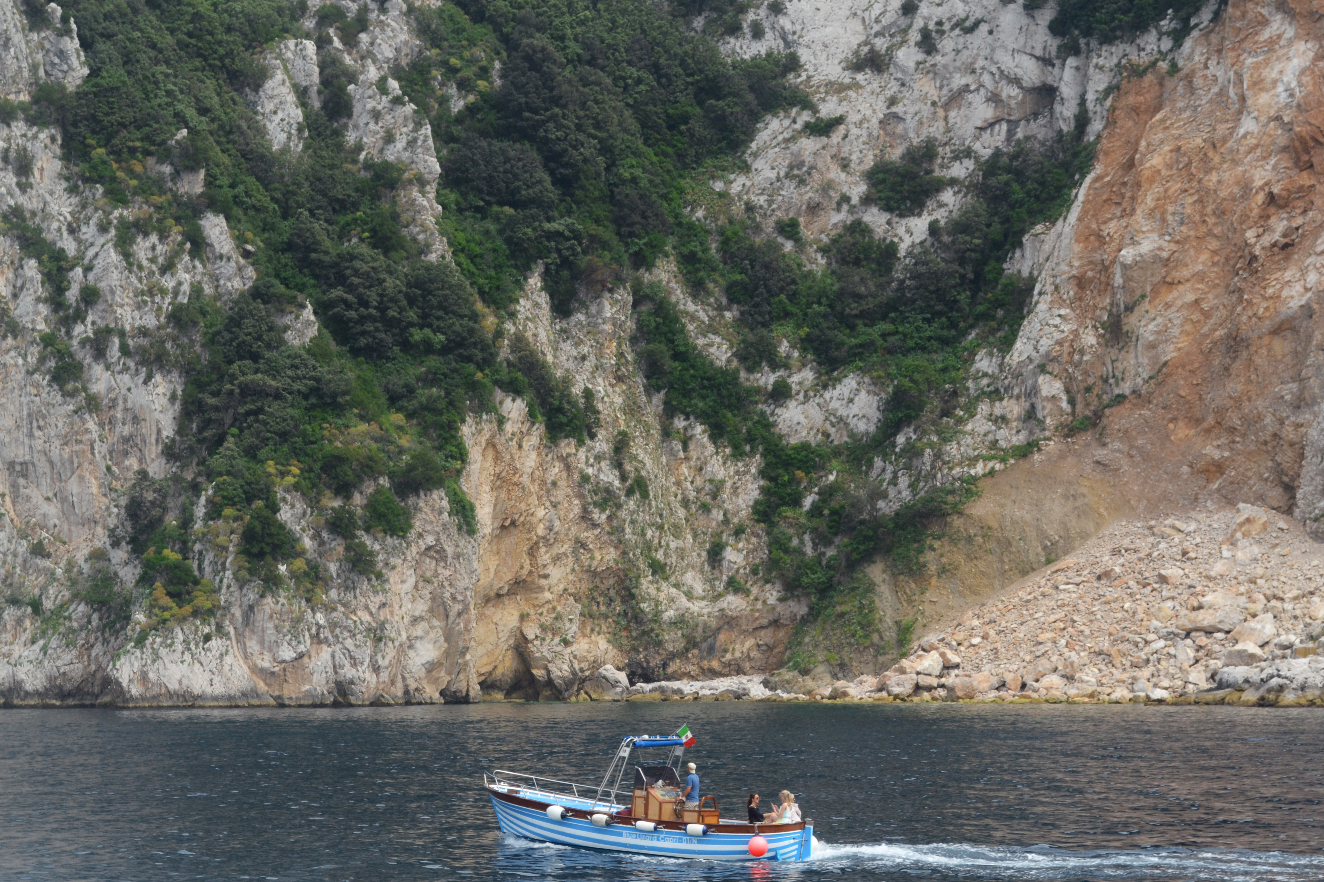 La prima scogliera che incontriamo è il “salto di Tiberio”, una scogliera dalla quale venivano spinte le mogli che non andavano più a genio.