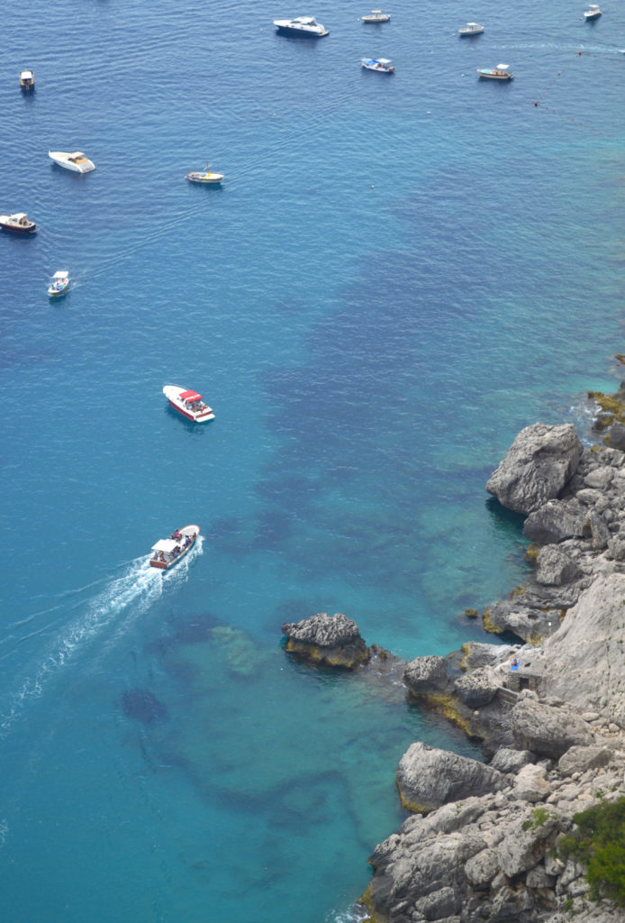 Mentre facciamo il giro dell’isola mi rendo conto che la parte migliore di questo posto è proprio la costa. Con le caprette nere che brucano sugli strapiombi, le macchie di verde sulle scogliere, l’acqua color cobalto e le decine di piccole imbarcazioni che accompagnano i turisti come nei vecchi film anni cinquanta.