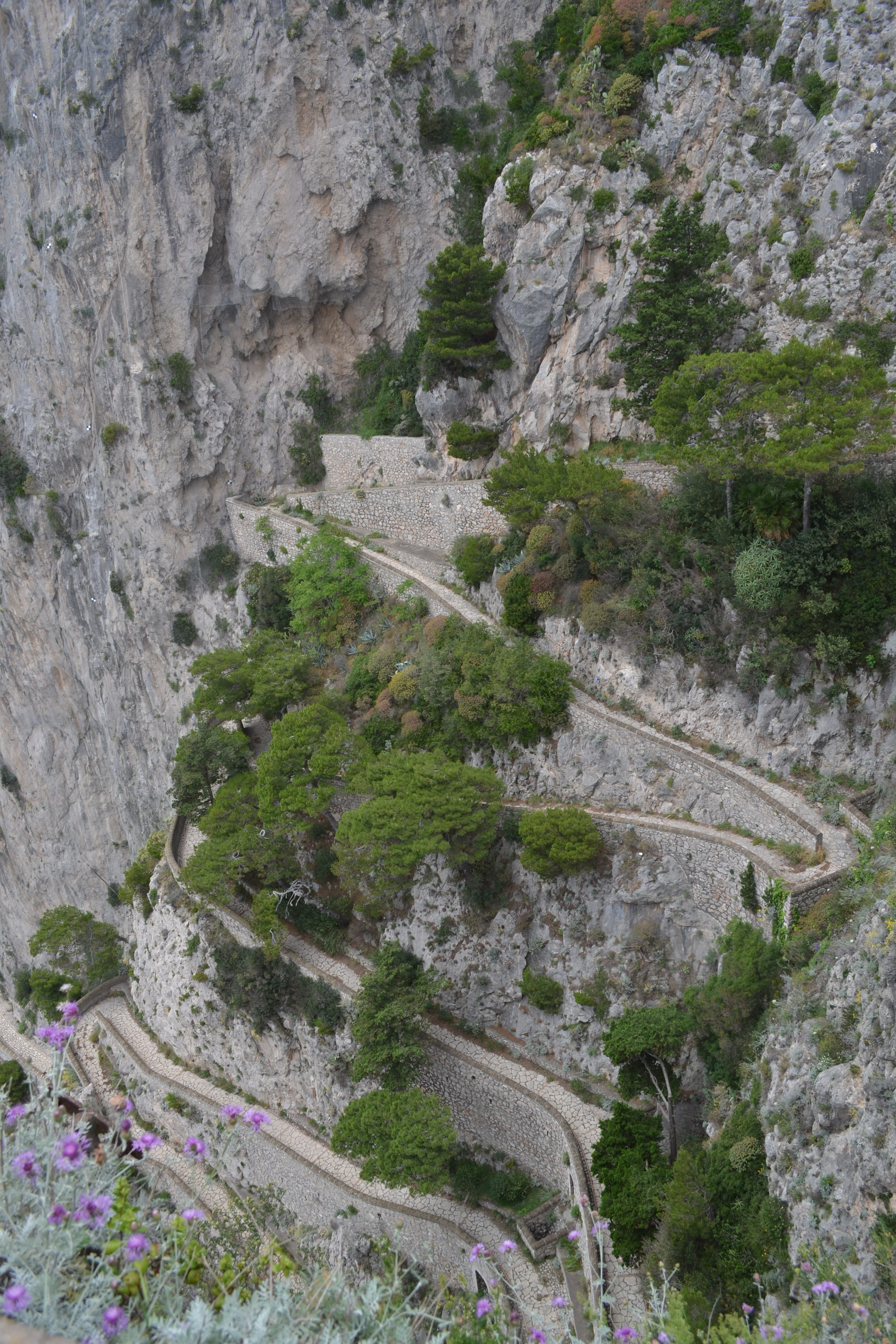 Arrivo al porto già affollatissimo, il nostro cicerone ci indica una strada a picco sulle scogliere, quella che dovremmo fare per raggiungere Anacapri. La chiamano la strada “mamma mia” per l’ovvia imprecazione che vien fuori spontanea mentre la percorri (questo solo perché i capresi sono persone più raffinate ed educate di me, io le avrei dato sicuramente un altro nome).