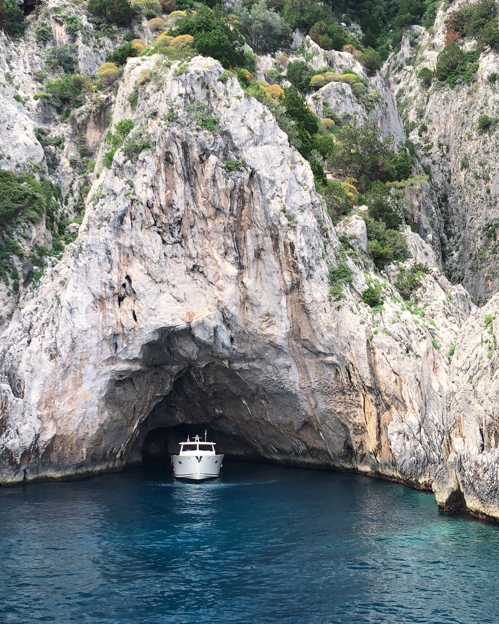 Mentre facciamo il giro dell’isola mi rendo conto che la parte migliore di questo posto è proprio la costa. Con le caprette nere che brucano sugli strapiombi, le macchie di verde sulle scogliere, l’acqua color cobalto e le decine di piccole imbarcazioni che accompagnano i turisti come nei vecchi film anni cinquanta.