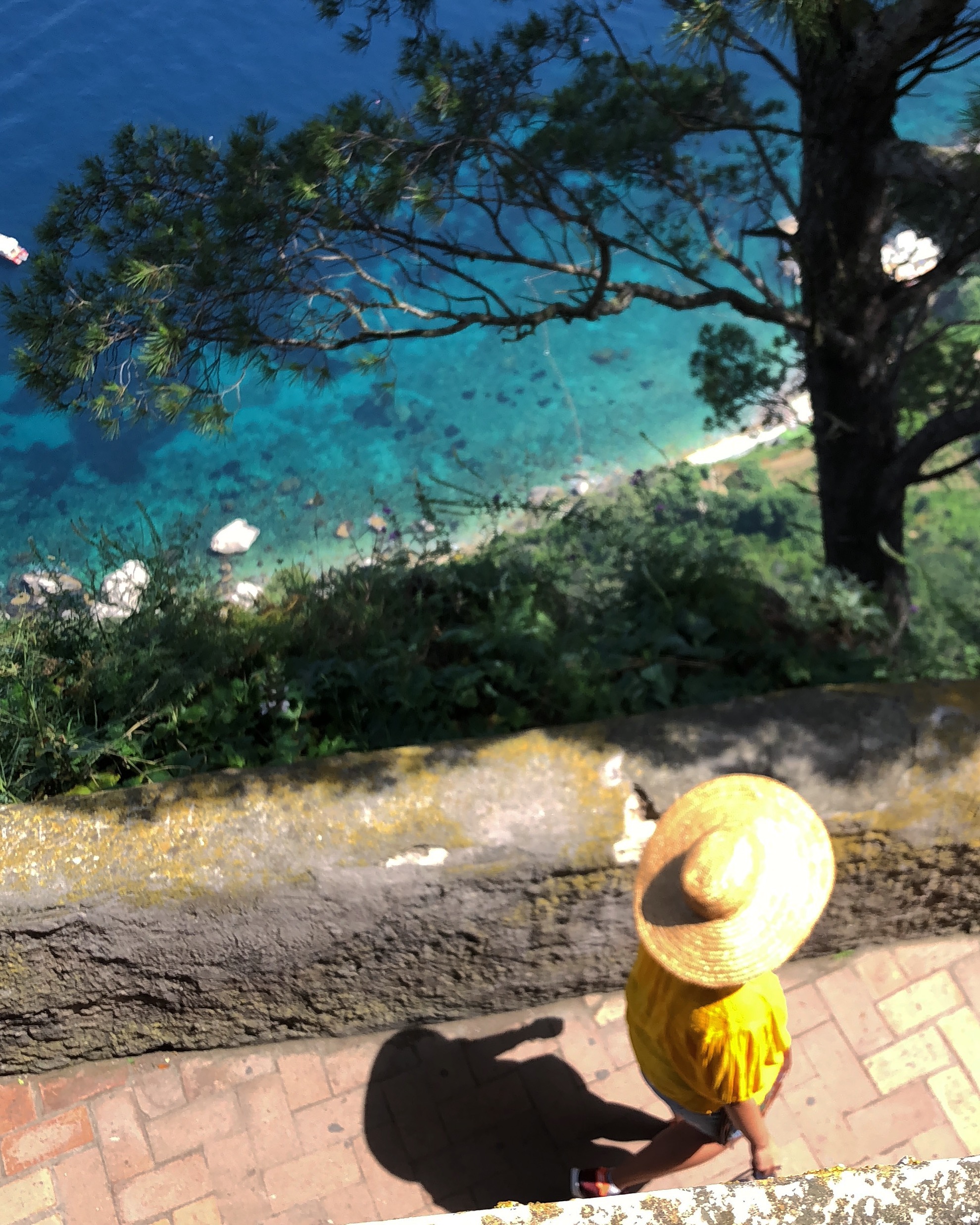 La nostra guida ci racconta che duemilacinquecento anni fa c’era un solo modo di raggiungere Ana (in greco antico significa “altura” cioè la parte più alta di Capri), salendo 1000 scalini dalla piazzetta del porto, diciamocelo, alla fine non sono nemmeno tanti se hai un paio di mesi a disposizione!