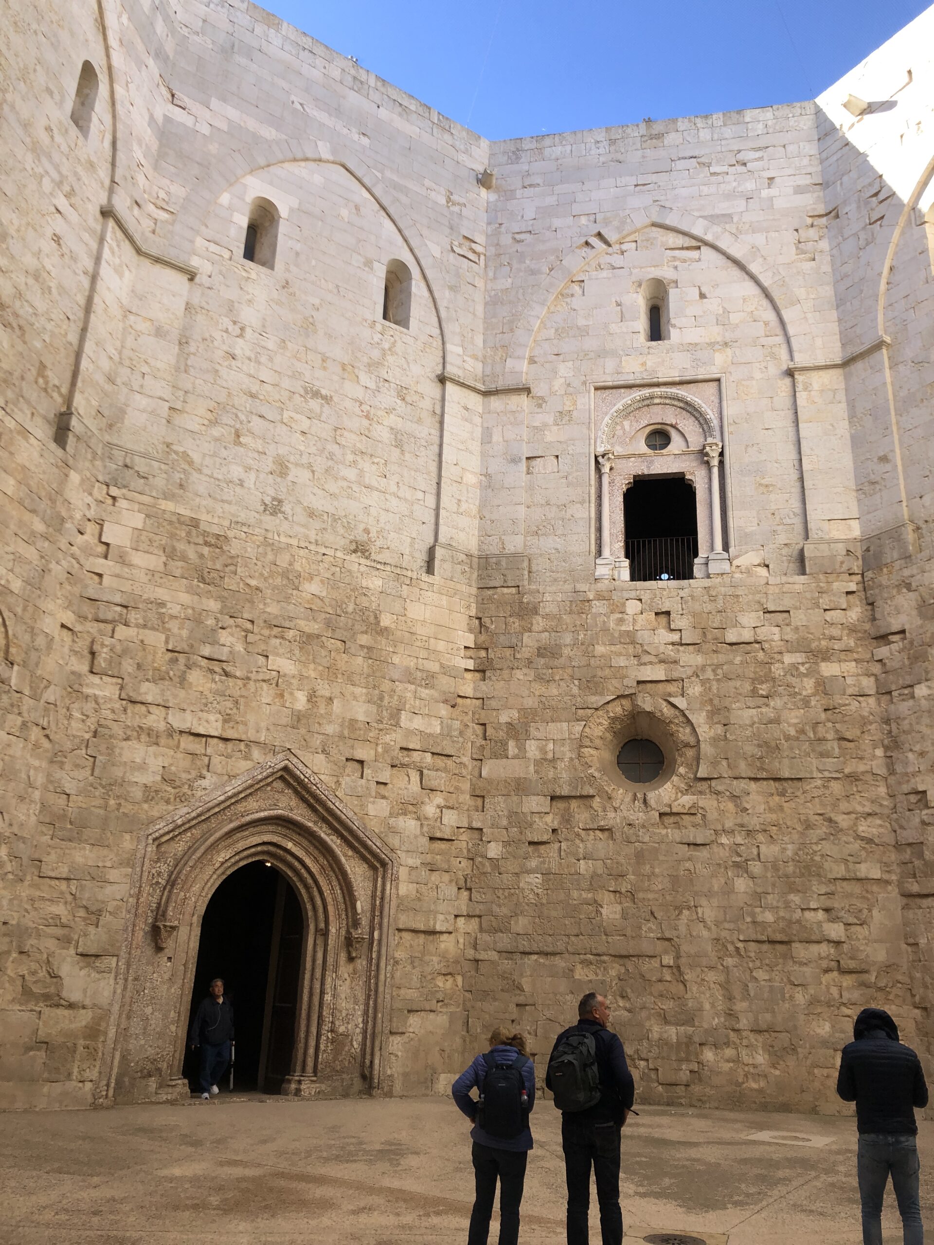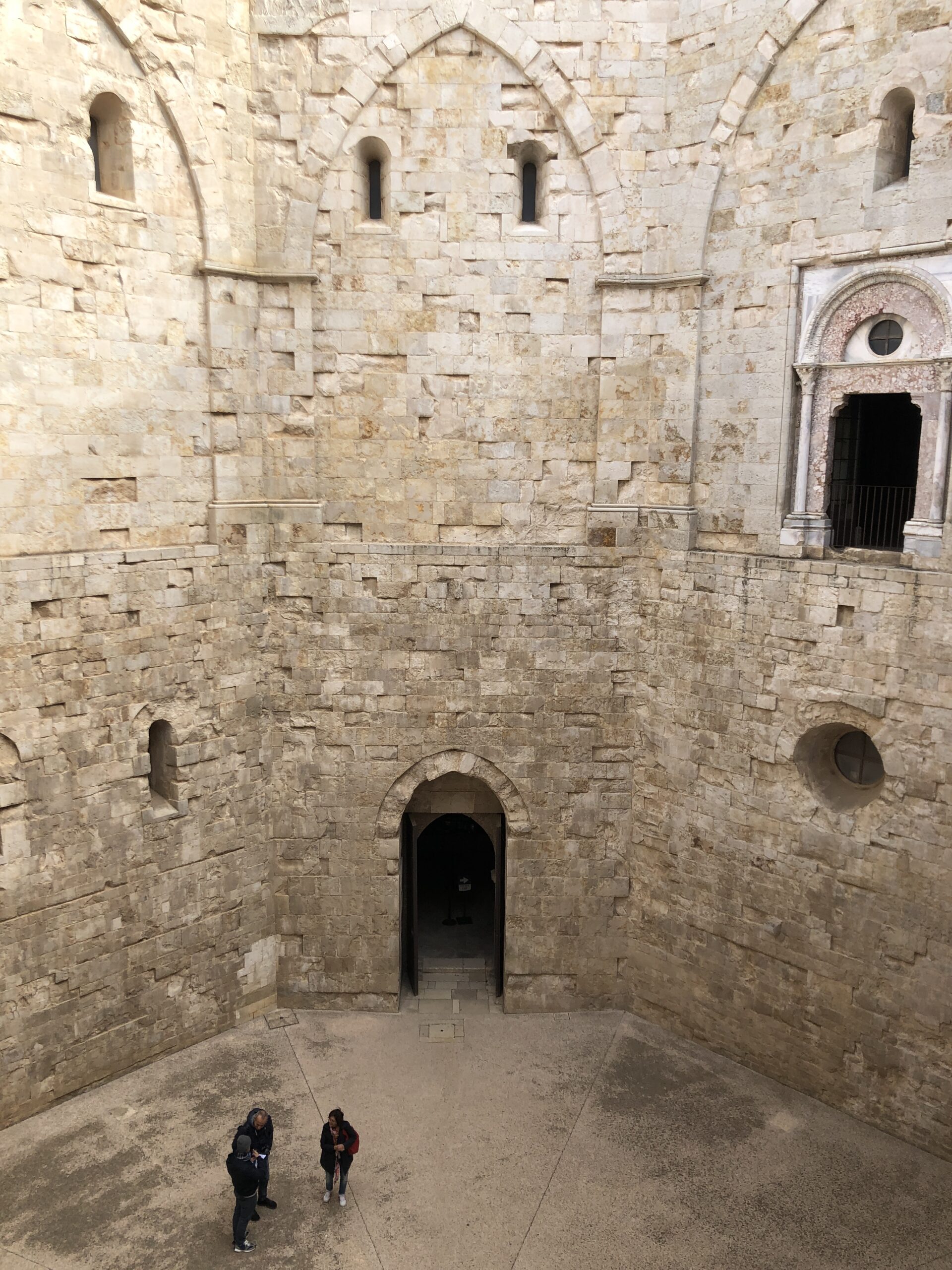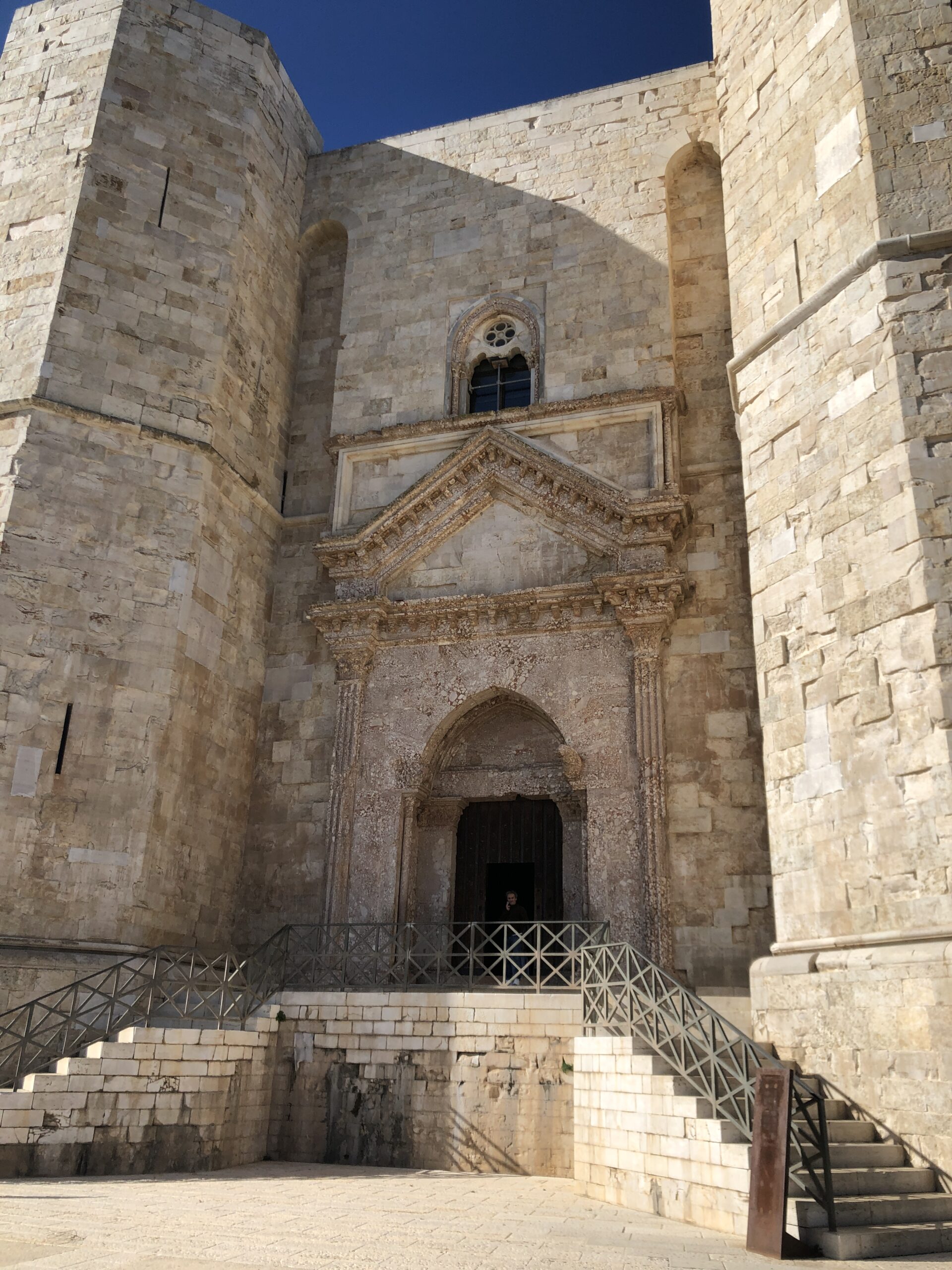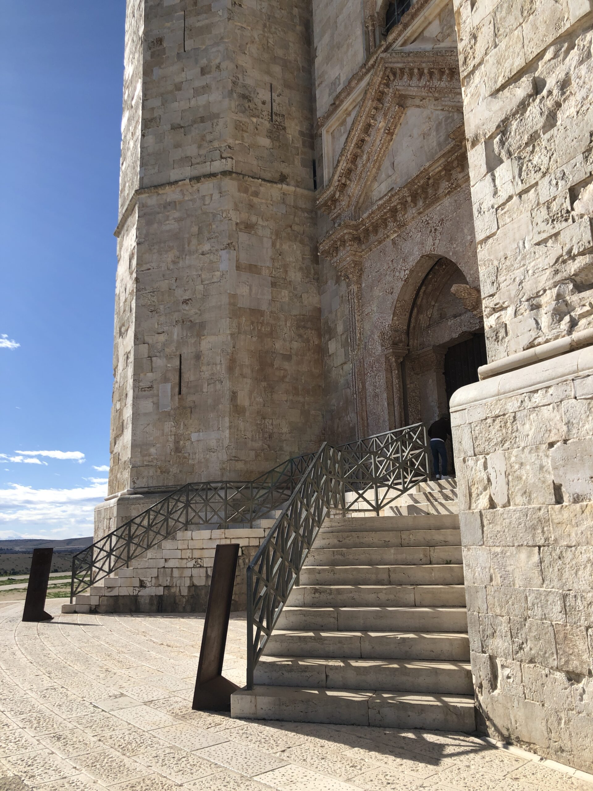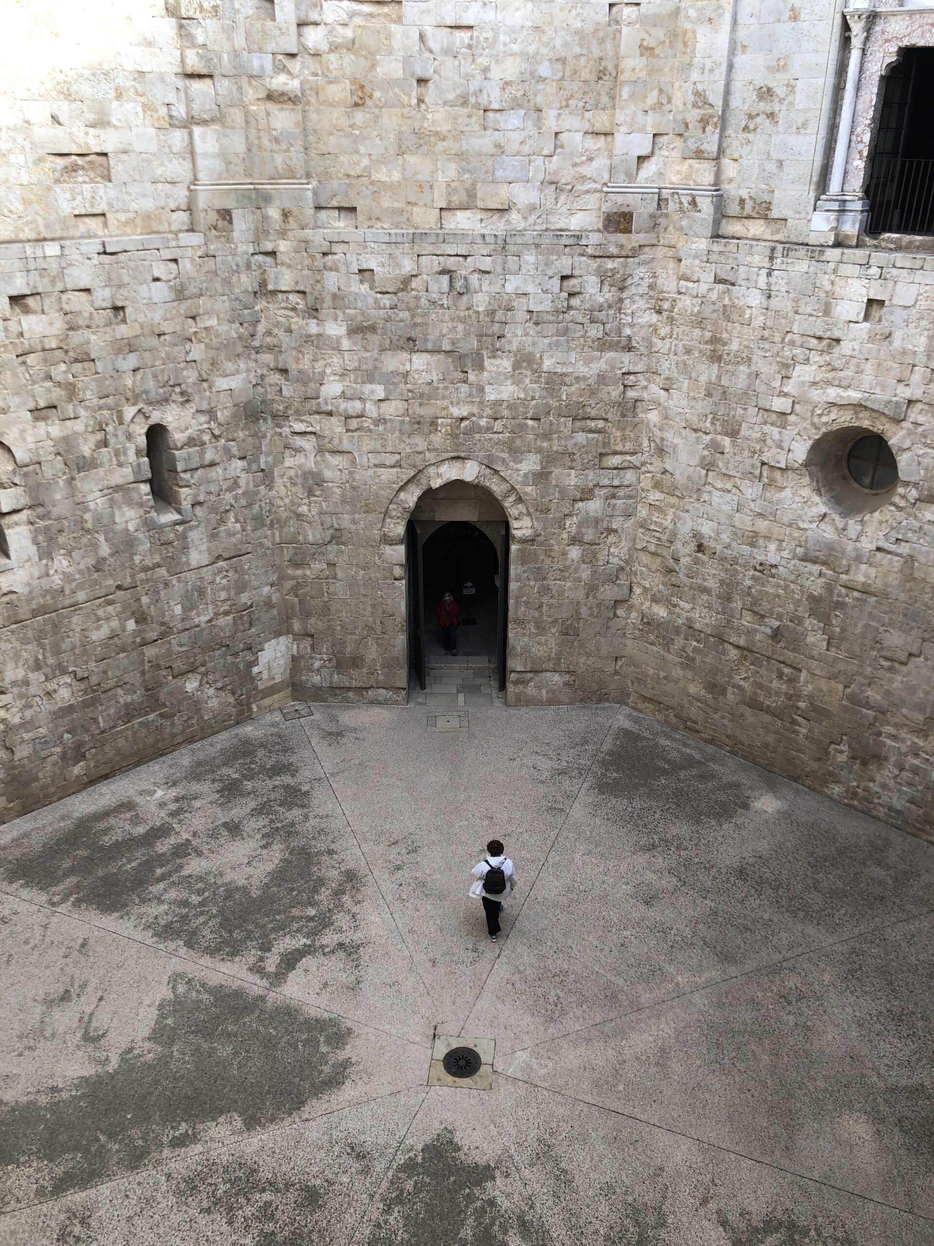Mi piace molto la miscellanea di stili che uniscono l’arte classica con la gotica e quella romanica e, non ci sono soltanto linguaggi artistici che si mescolano tra loro qui dentro, anche le religioni convivono in armonia, proprio come voleva Federico II. Troviamo infatti simboli ebraici come la stella di David, decorazioni islamiche e dettagli riconducibili al cristianesimo. Una zona franca, all’interno della quale tutti avevano una voce e l’esposizione di un pensiero permetteva lunghi scambi di opinioni. Mi piace immaginare questo luogo in questo modo. L’otto non sarà stato scelto a caso, simbolo dell’infinito inoltre…l’ottagono è l’unica figura che si inserisce perfettamente sia in un quadrato che in un cerchio. Il quadrato simboleggia i quattro elementi terreni: aria acqua fuoco e terra, oltre ai quattro punti cardinali; il cerchio invece rappresenta il cielo, la parte divina, ultraterrena. Quasi come se questo castello volesse essere il trait d’union tra il l’uomo e Dio.