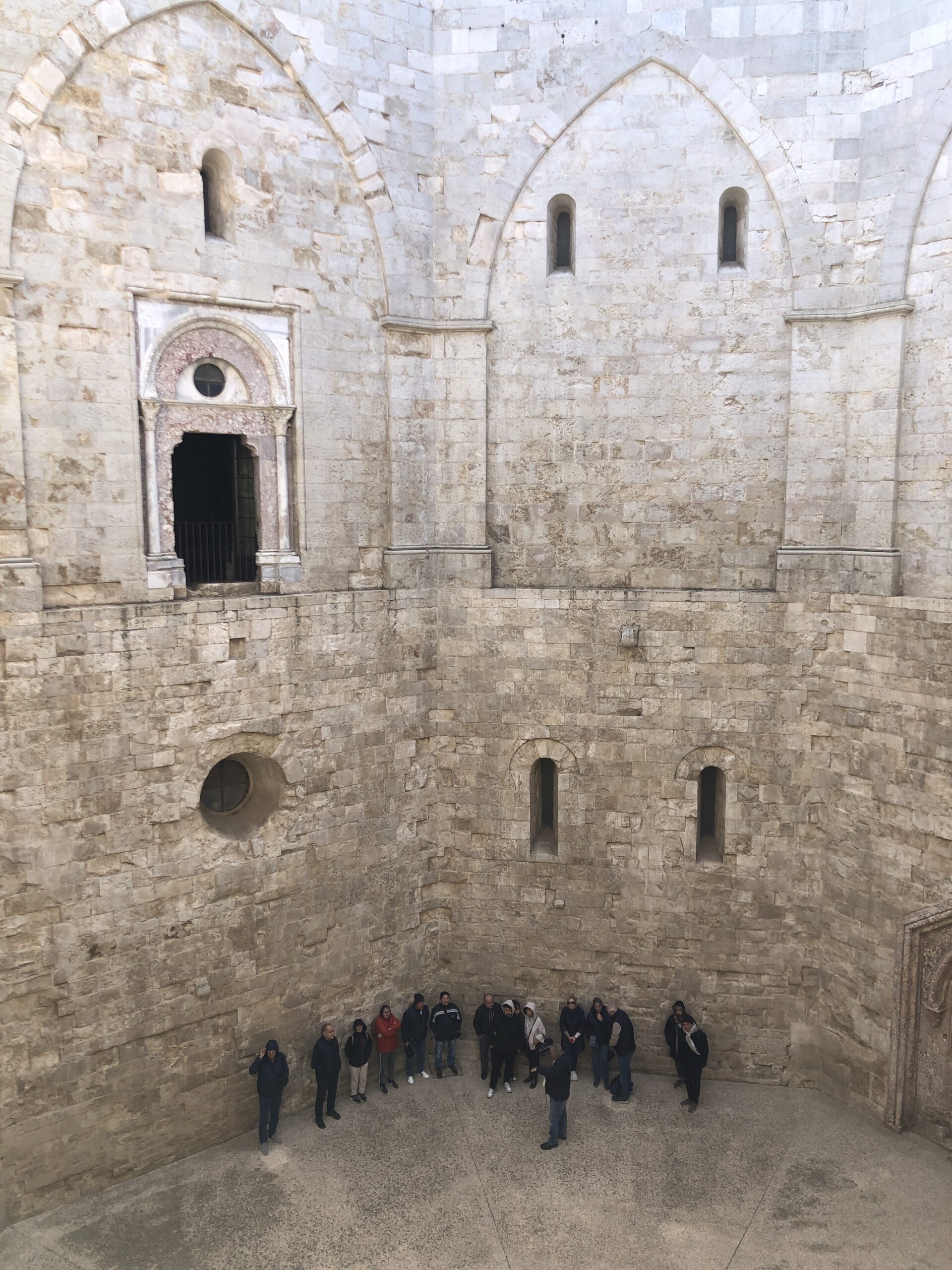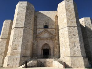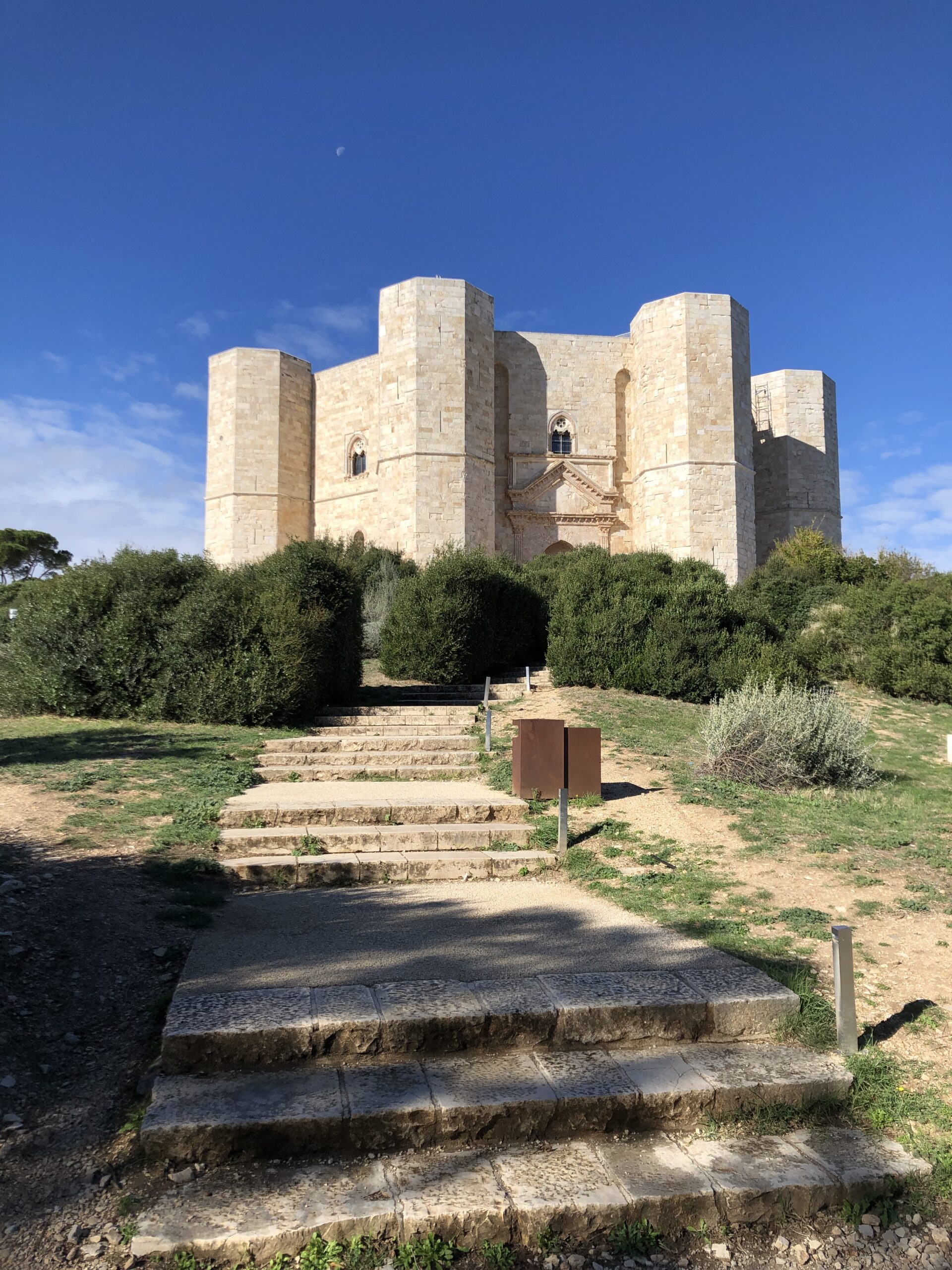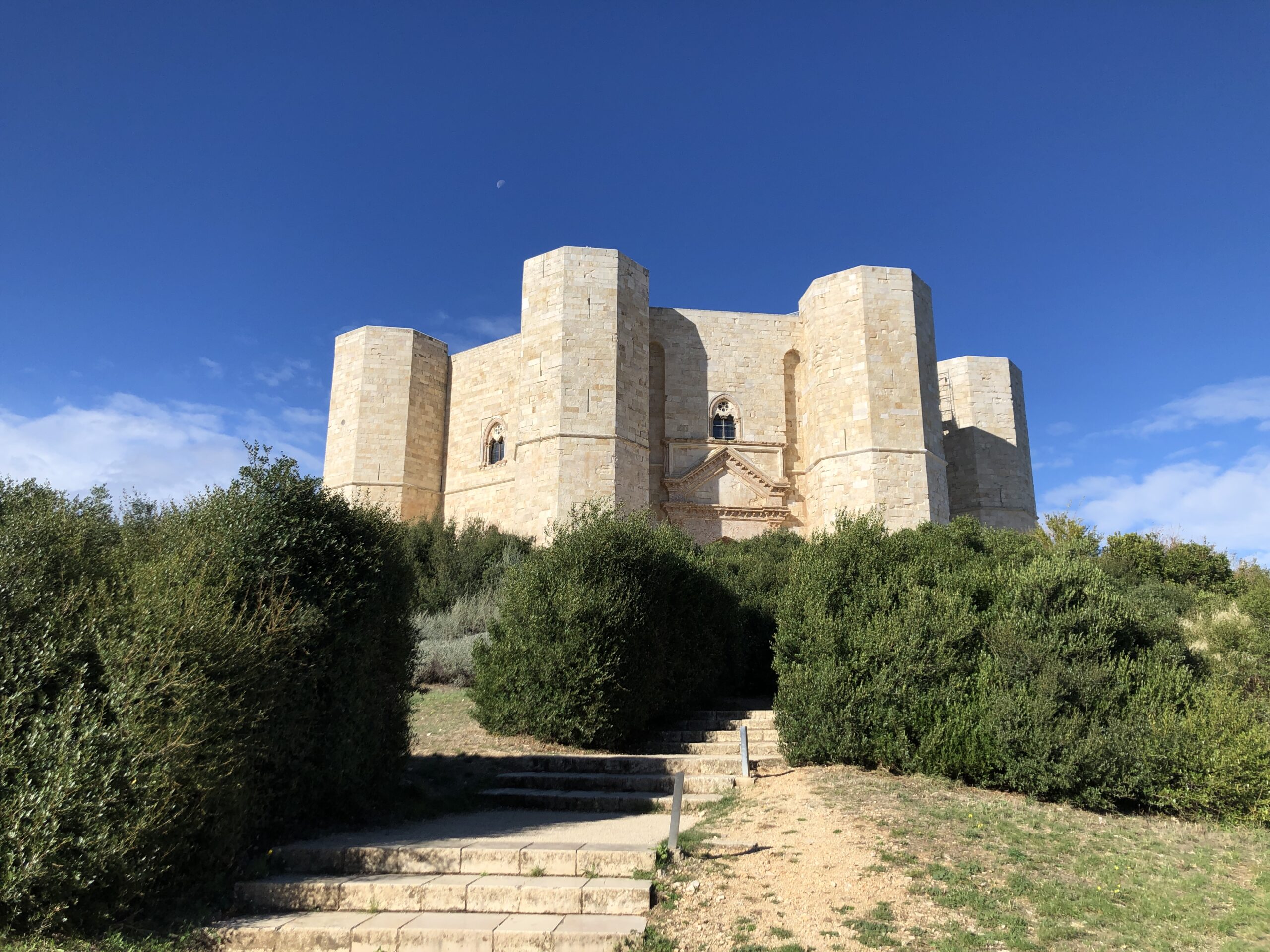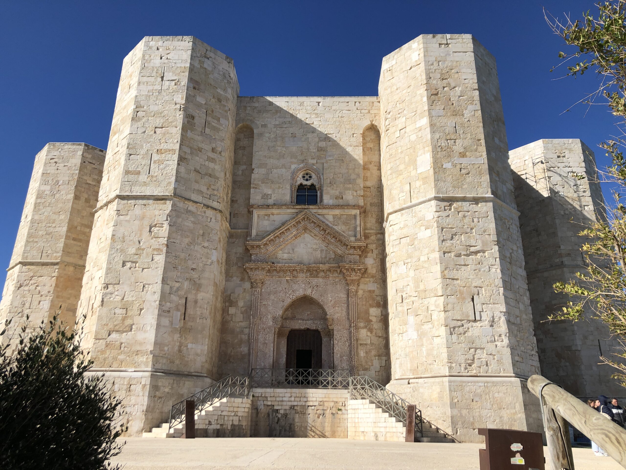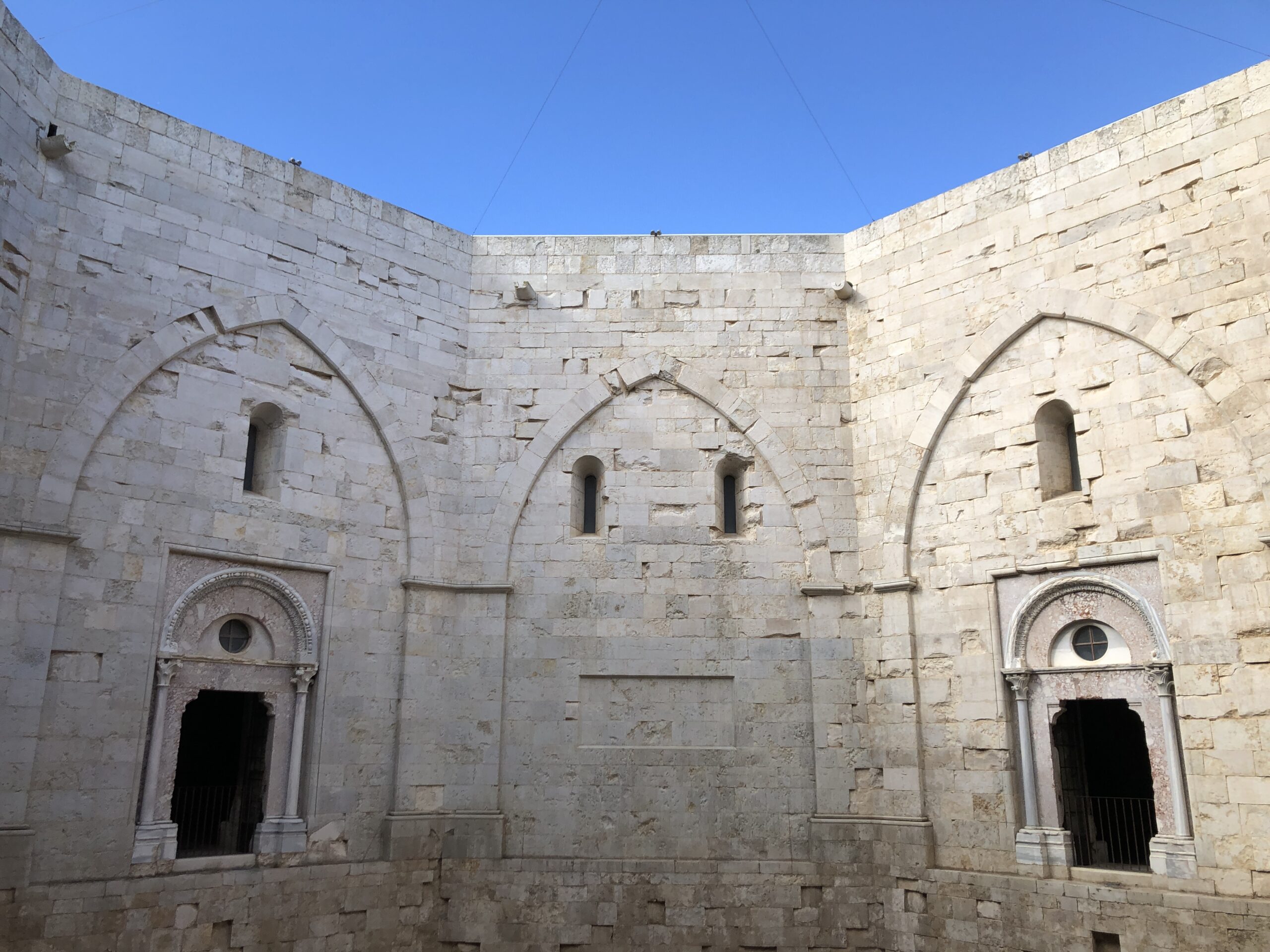 Mi piace molto la miscellanea di stili che uniscono l’arte classica con la gotica e quella romanica e, non ci sono soltanto linguaggi artistici che si mescolano tra loro qui dentro, anche le religioni convivono in armonia, proprio come voleva Federico II. Troviamo infatti simboli ebraici come la stella di David, decorazioni islamiche e dettagli riconducibili al cristianesimo. Una zona franca, all’interno della quale tutti avevano una voce e l’esposizione di un pensiero permetteva lunghi scambi di opinioni. Mi piace immaginare questo luogo in questo modo. L’otto non sarà stato scelto a caso, simbolo dell’infinito inoltre…l’ottagono è l’unica figura che si inserisce perfettamente sia in un quadrato che in un cerchio. Il quadrato simboleggia i quattro elementi terreni: aria acqua fuoco e terra, oltre ai quattro punti cardinali; il cerchio invece rappresenta il cielo, la parte divina, ultraterrena. Quasi come se questo castello volesse essere il trait d’union tra il l’uomo e Dio.