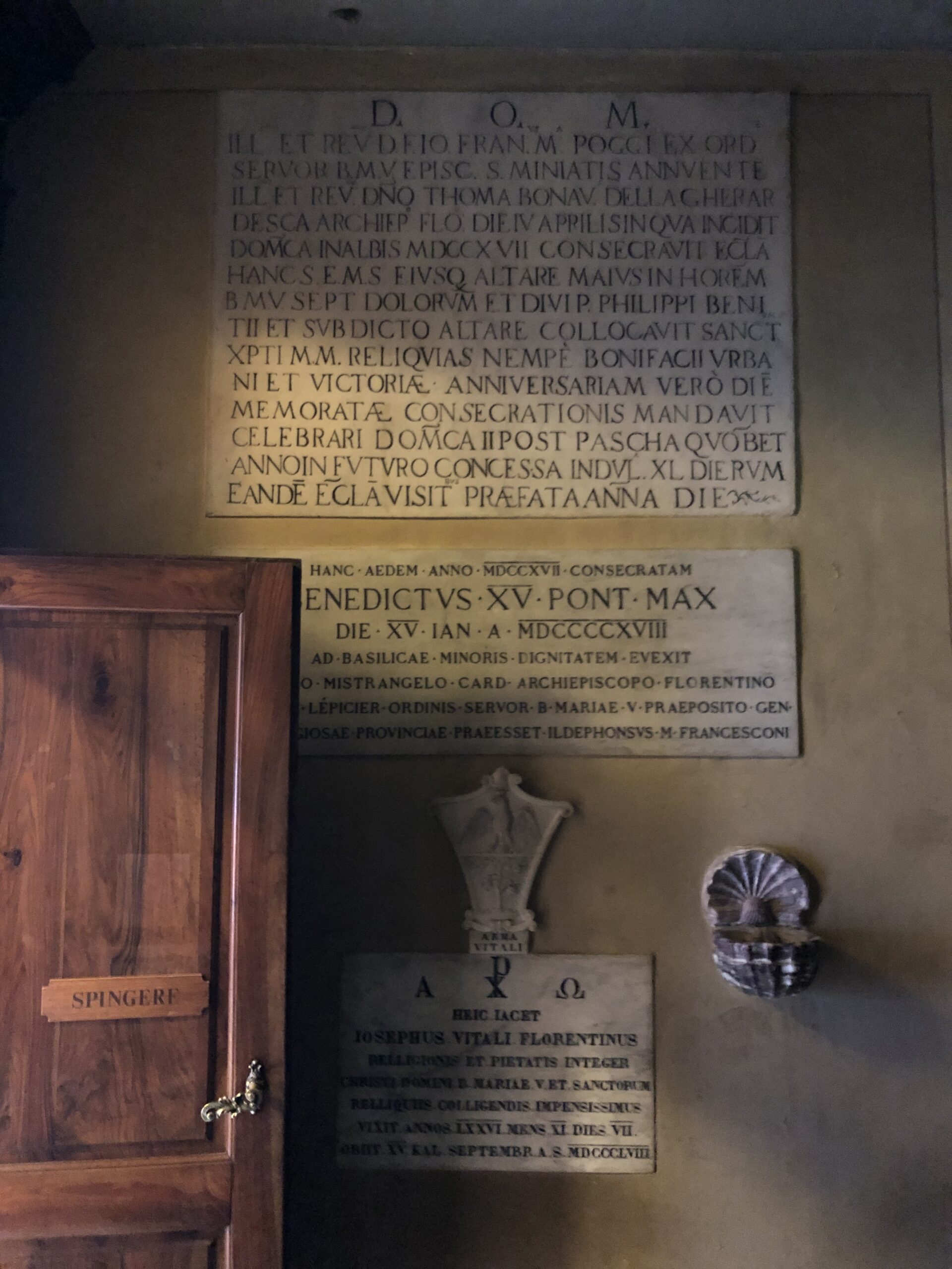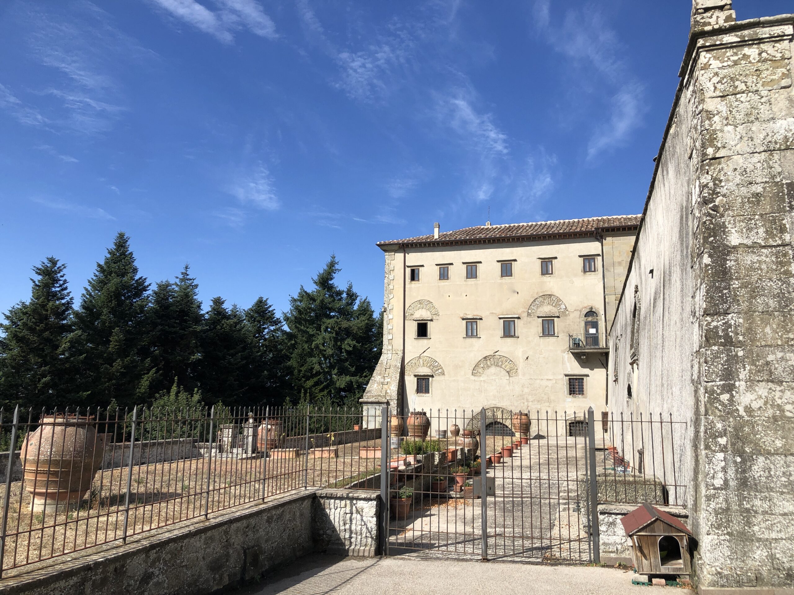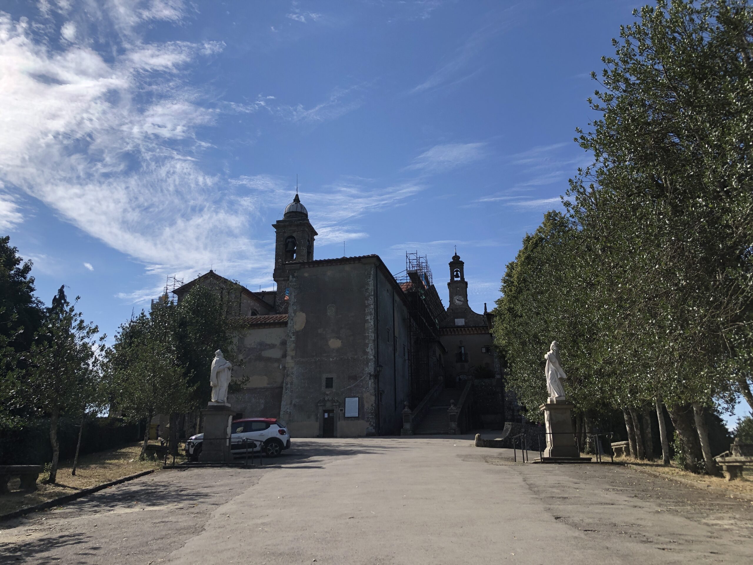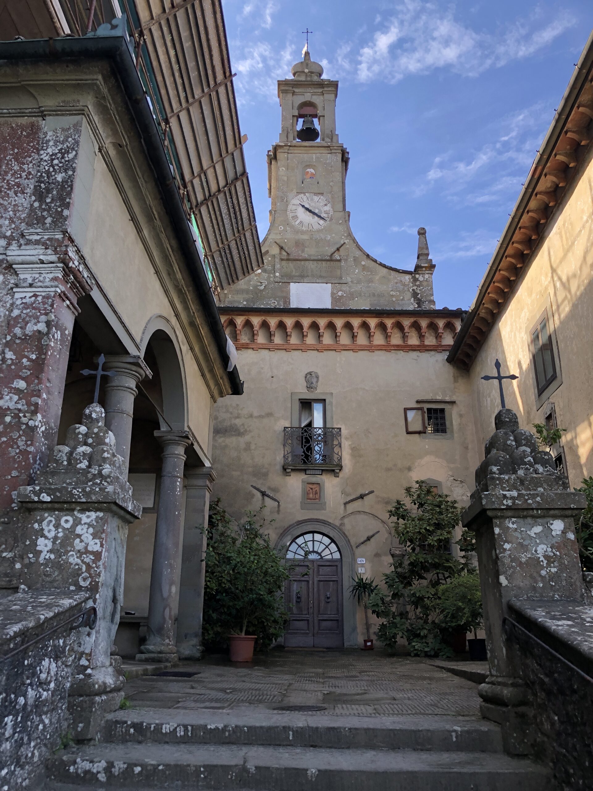 Questo convento nasce nel 1241 successivamente ad un lascito di un certo Giuliano da Bivigliano (Bivigliano è un comune poco distante). Il signor Giuliano lasciò in eredità parte del Monte “Asinario” (così si chiamava all’epoca) al Vescovo di Firenze. Insomma, fin qui nulla di strano, da secoli è solo ordinaria amministrazione per la Chiesa; la cosa buffa però fu che ben sette baldanzosi fiorentini, decisero tutti e sette trotterellando, di recarsi presso questo luogo ameno anche se spartano, per vivere nella povertà come Servi di Maria. Lasciarono quindi a casa ogni bene e (ma son dettagli), anche le rispettive famiglie. Nel giro di una manciata di anni ai sette eremiti si unirono molti altri uomini e, a metà del 1200, l’Ordine dei Servi di Maria si stanziò ufficialmente in questo incredibile luogo in mezzo al bosco. Fino al 1800 i frati condussero qui una vita isolata godendo (suppongo) dei colori delle stagioni, di letture ed arte, dei rumori del bosco e dei frutti della terra. Praticamente la stessa vita che faccio io con l’aggiunta dello smog e delle tasse.