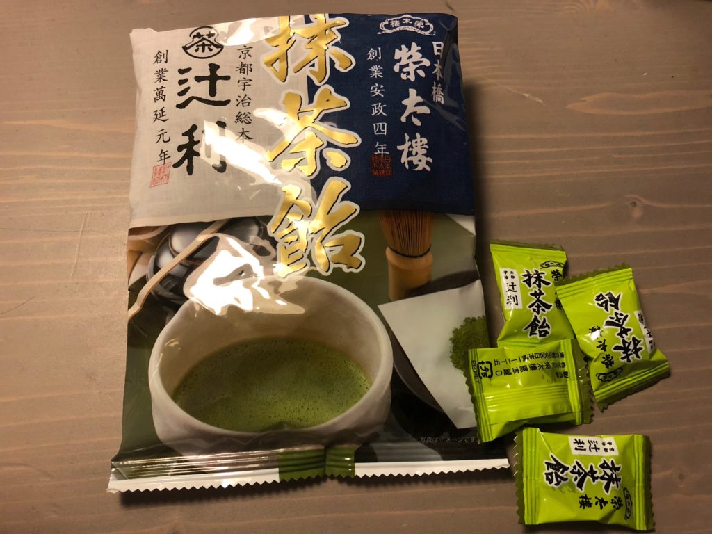 Sono caramelle al tè in confezione singola. Io le porto con me in borsa e sono un’ottimo sostituto al caffè. Ci sono anche dolcetti al matcha e al tè in forma gelatinosa. Anche questi sono buonissimi, ricordano la consistenza delle conserve di castagne. Anche il gusto non è molto differente.