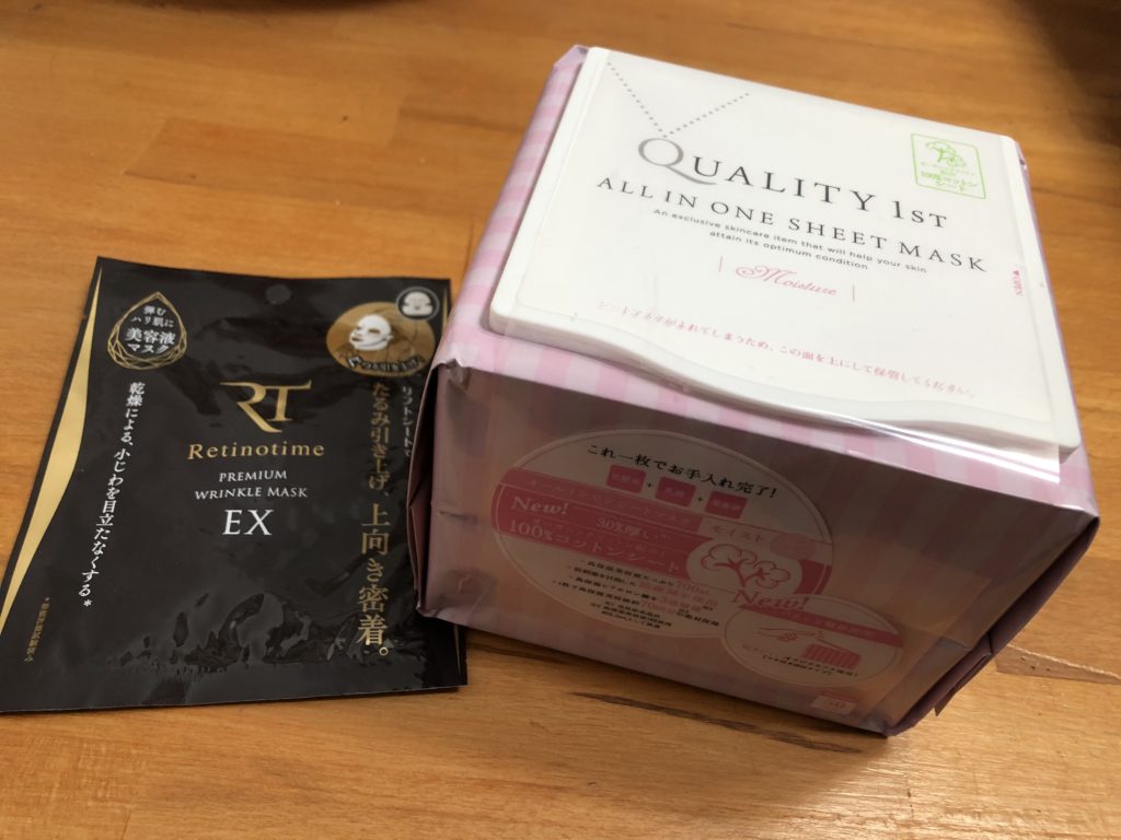 La confezione qui sopra è da 50 maschere. Un packaging comodo con l’apertura superiore che permette al tessuto delle maschere di non asciugarsi. Pagato poco meno di 20 euro.