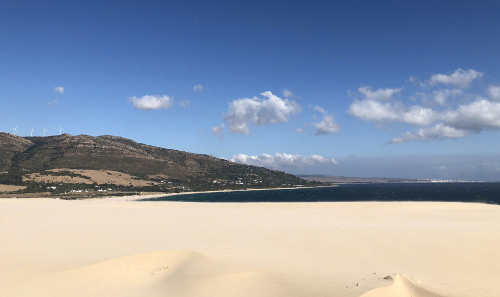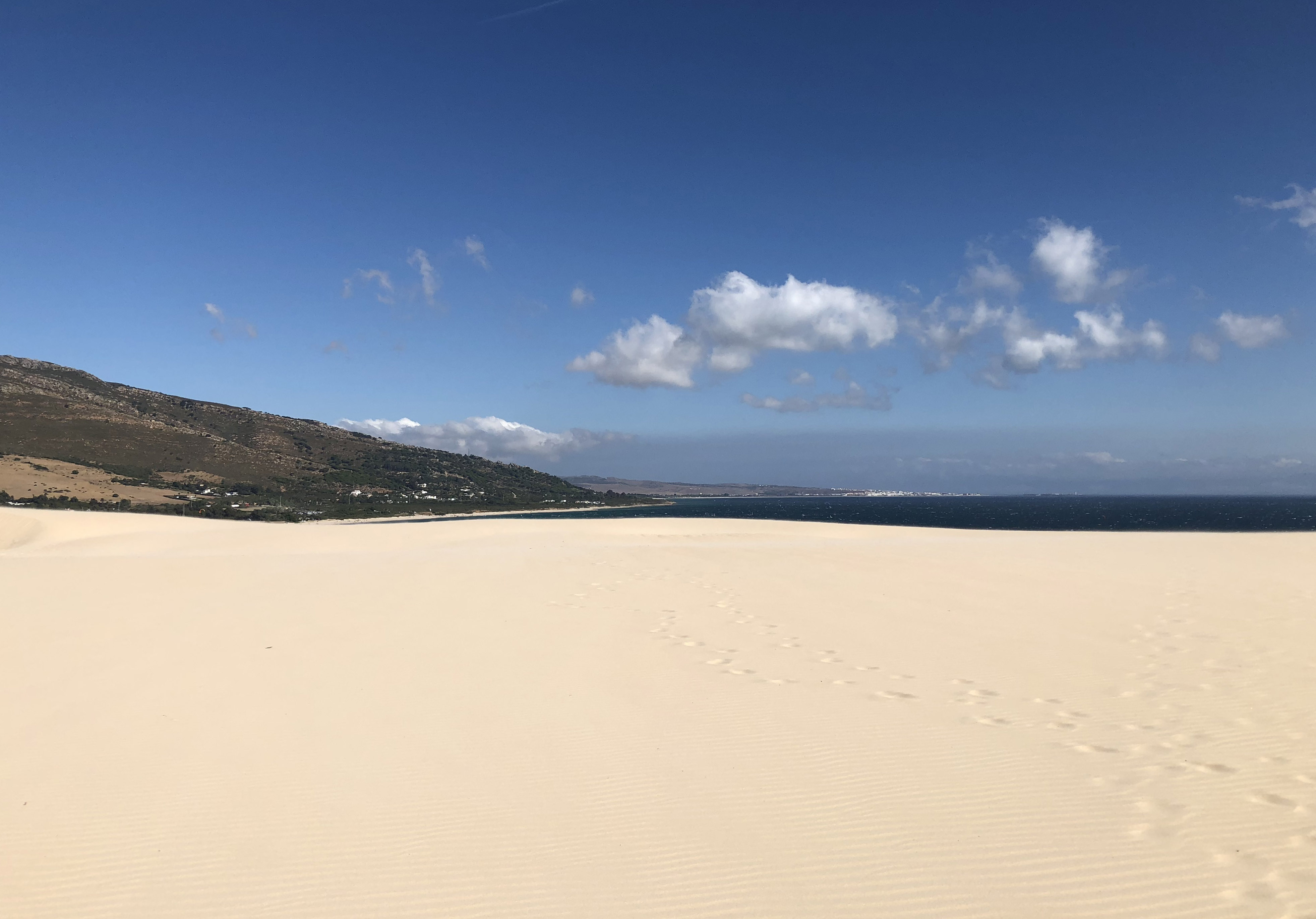 La grande duna della Playa de Valdevaqueros ci sorprende proprio sulla strada asfaltata.