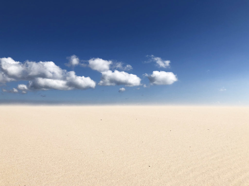 Altro che il riso ai matrimoni, qui la sabbia ti si infila ovunque e si muove in un vortice così veloce che sembra pungerti su tutto il corpo. Se ti metti in costume da bagno potresti farti una seduta gratuita di agopuntura.