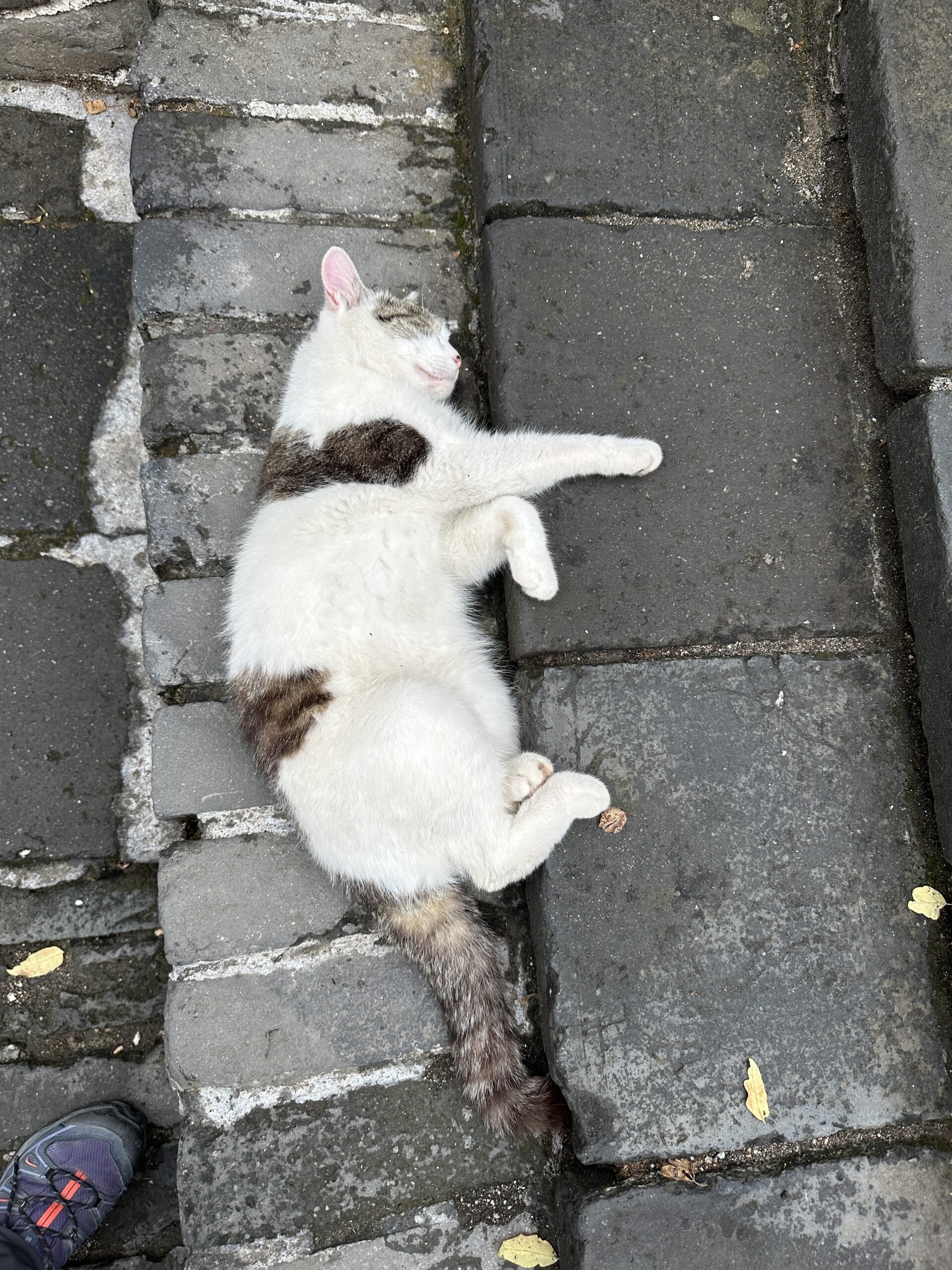 Una delle giornate più calde della storia, di quelle che il cielo sembra coperto, poi però ti tocchi la testa con la mano ed come poggiarla sulla graticola rovente. Se poi ci mettete che non ci sono bagni per km e che non ci sono nemmeno frasche o siepi o auto dietro le quali accucciarsi, eviti di bere per non dover andare in toilette, e la sensazione d’arsura aumenta. Anche se, a pensarci bene il rischio non c’era in effetti, avrei potuto tranquillamente ingurgitare un litro d’acqua e avrei sudato la pipì già alla prima rampa di scale in salita. E i reni, muti.