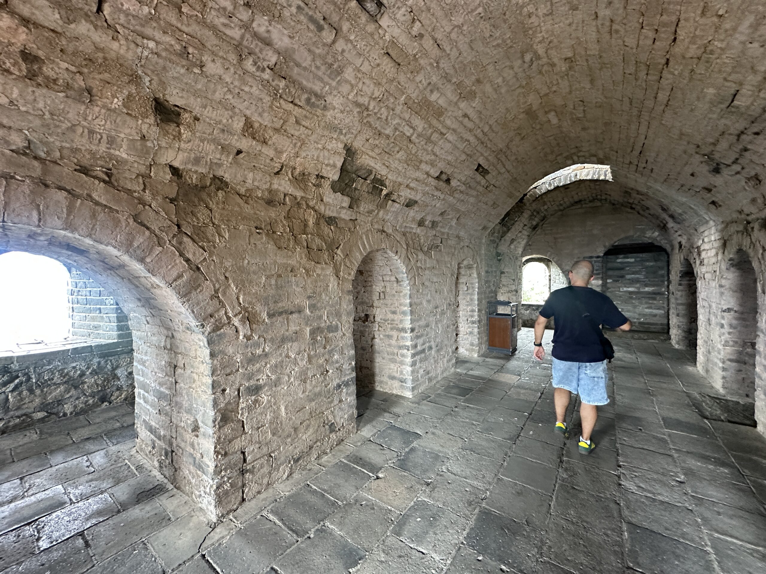 Già nel 221 a.C. esistevano mura di cinta dei vari feudi, ogni dinastia apportò qualcosa di nuovo a seconda degli ampliamenti dei possedimenti o dei loro ridimensionamenti. Fatto sta che sti cinesi erano già bravi in fatto di mura inerpicate su alture e, nel 1300 con la dinastia Ming diedero libero sfogo a tutta la loro maestria edificando ciò che ancora oggi è uno dei simboli più conosciuti dei questo Paese. Sto camminando perciò su una costruzione che ha più di 700 anni che si districa tra boschi e pendi, curvando e salendo e gettandosi in ripide discese per poi tornare in vetta.