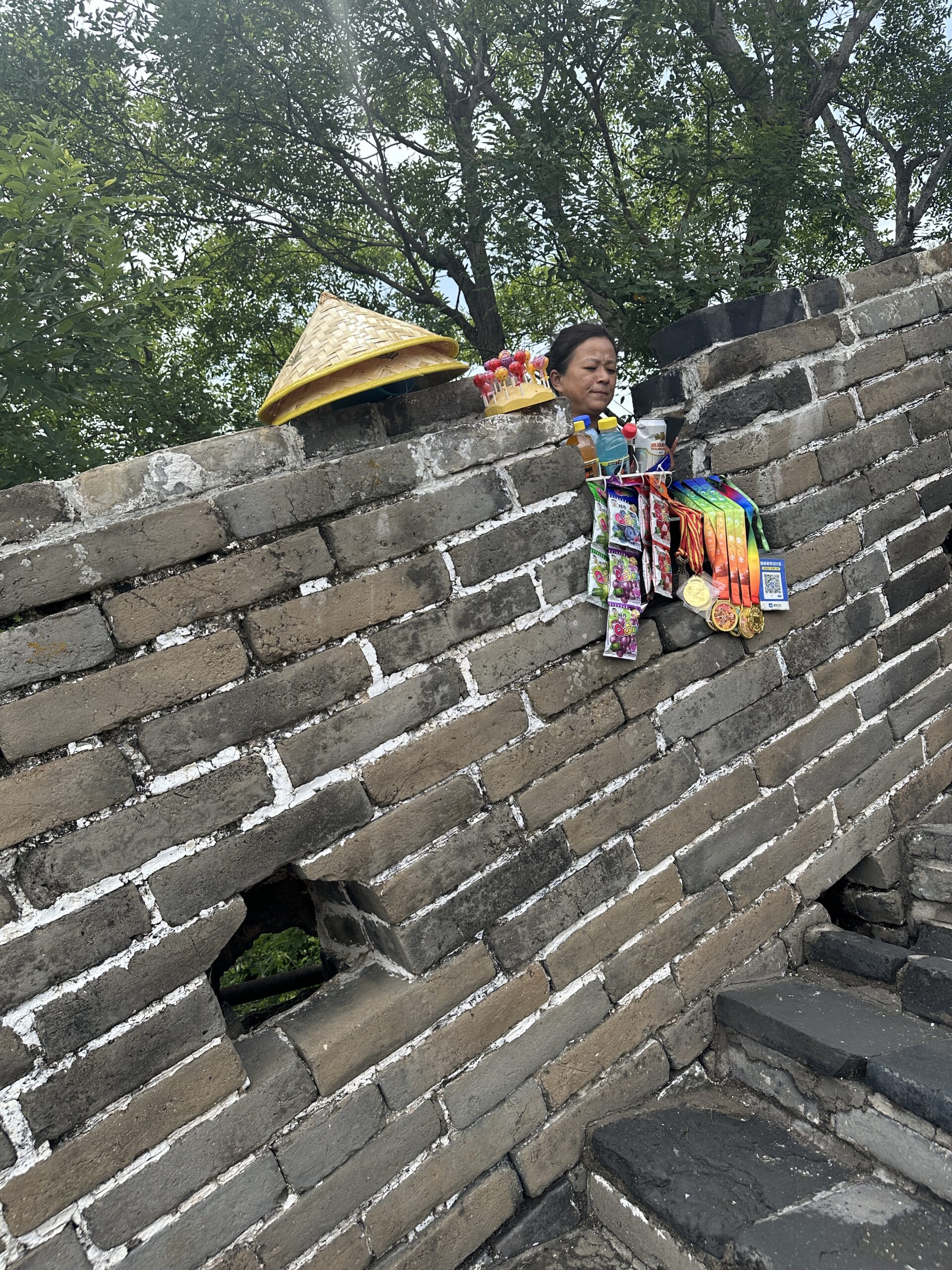 Di tanto in tanto spunta una testa al di là delle mura. Sono dei venditori di bibite ghiacciate, gelati, birre, souvenir, dolciumi e caramelle. Provo a sporgermi per vedere come diamine siano arrivati sino a lì e noto degli strettissimi viottoli nel bosco, probabilmente sono i sentieri utilizzati anche da coloro che hanno ristrutturato il tratto e contribuiscono alla pulizia e alla manutenzione dello stesso.