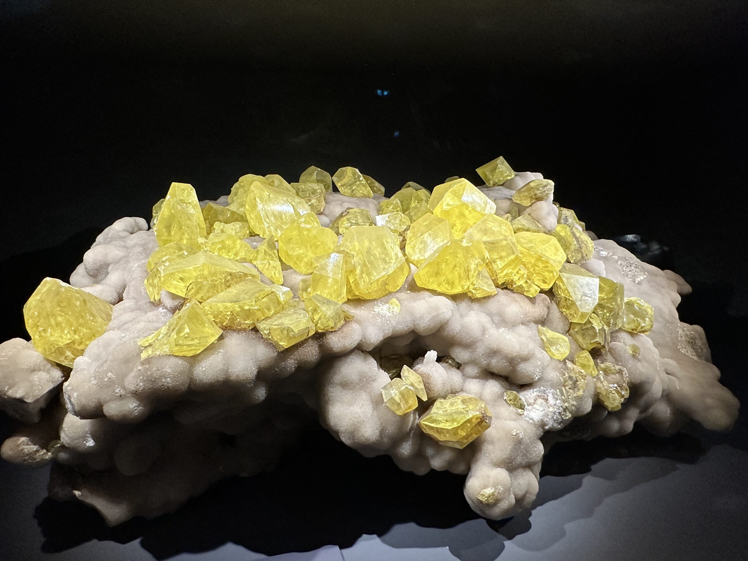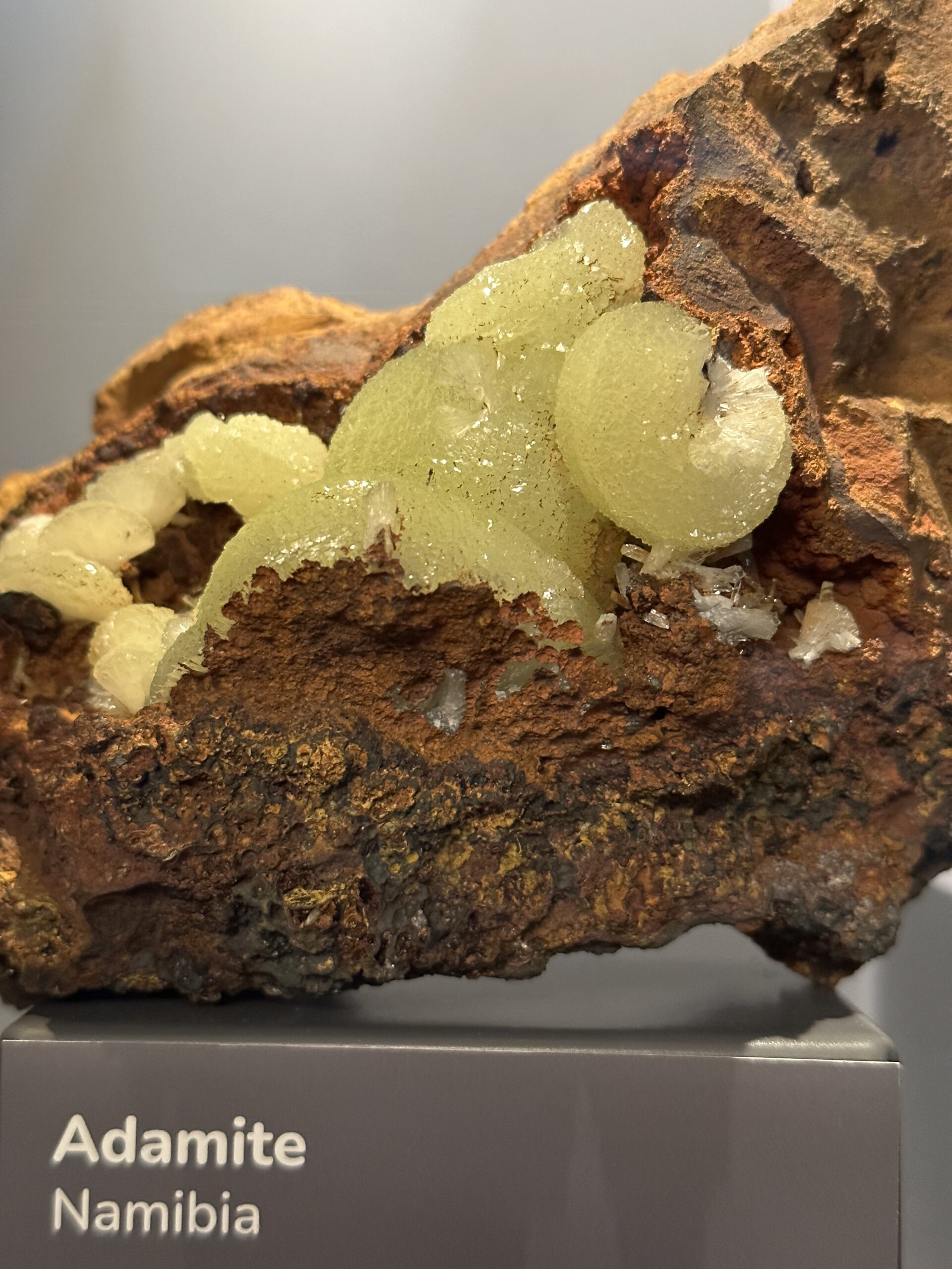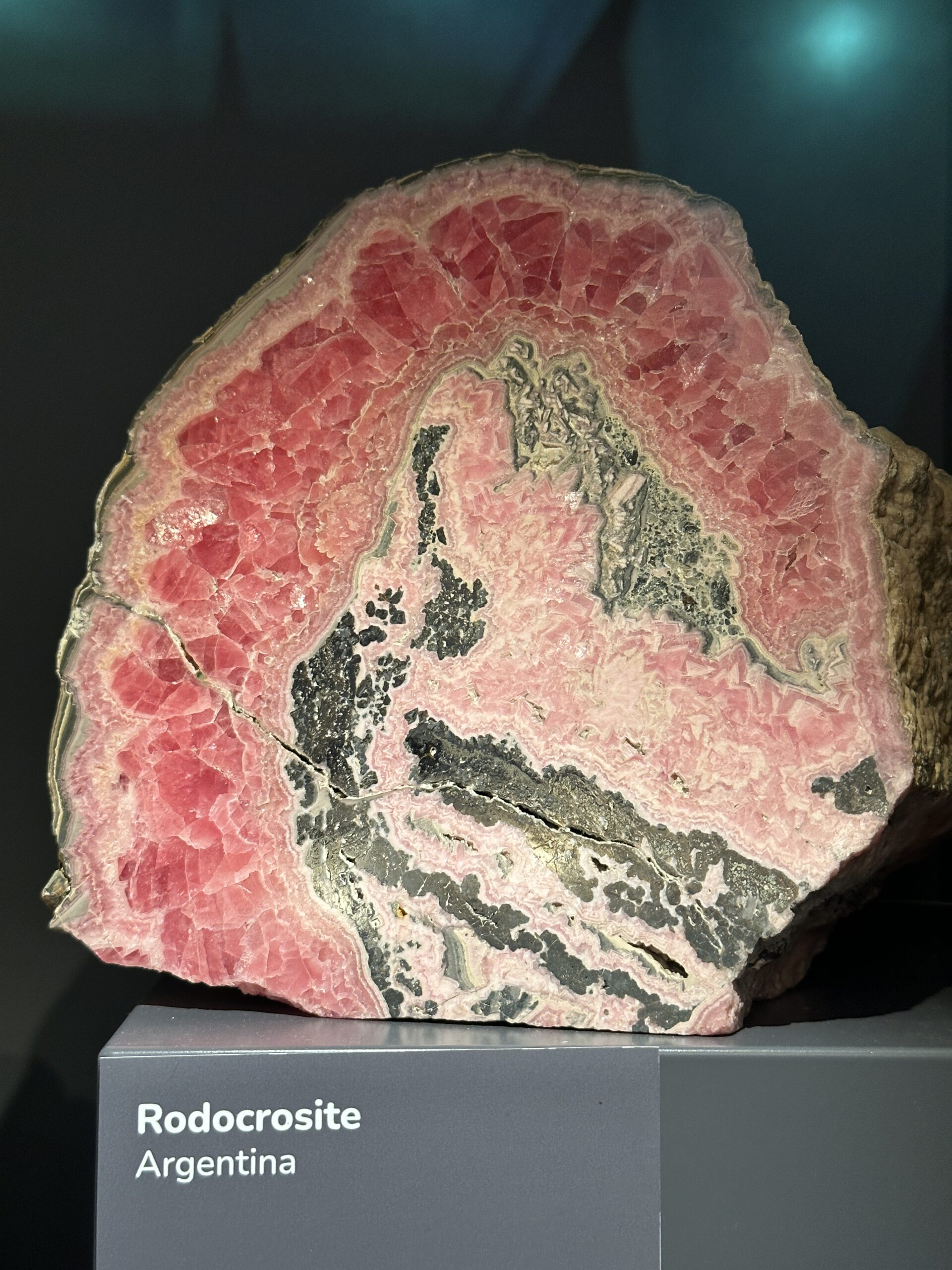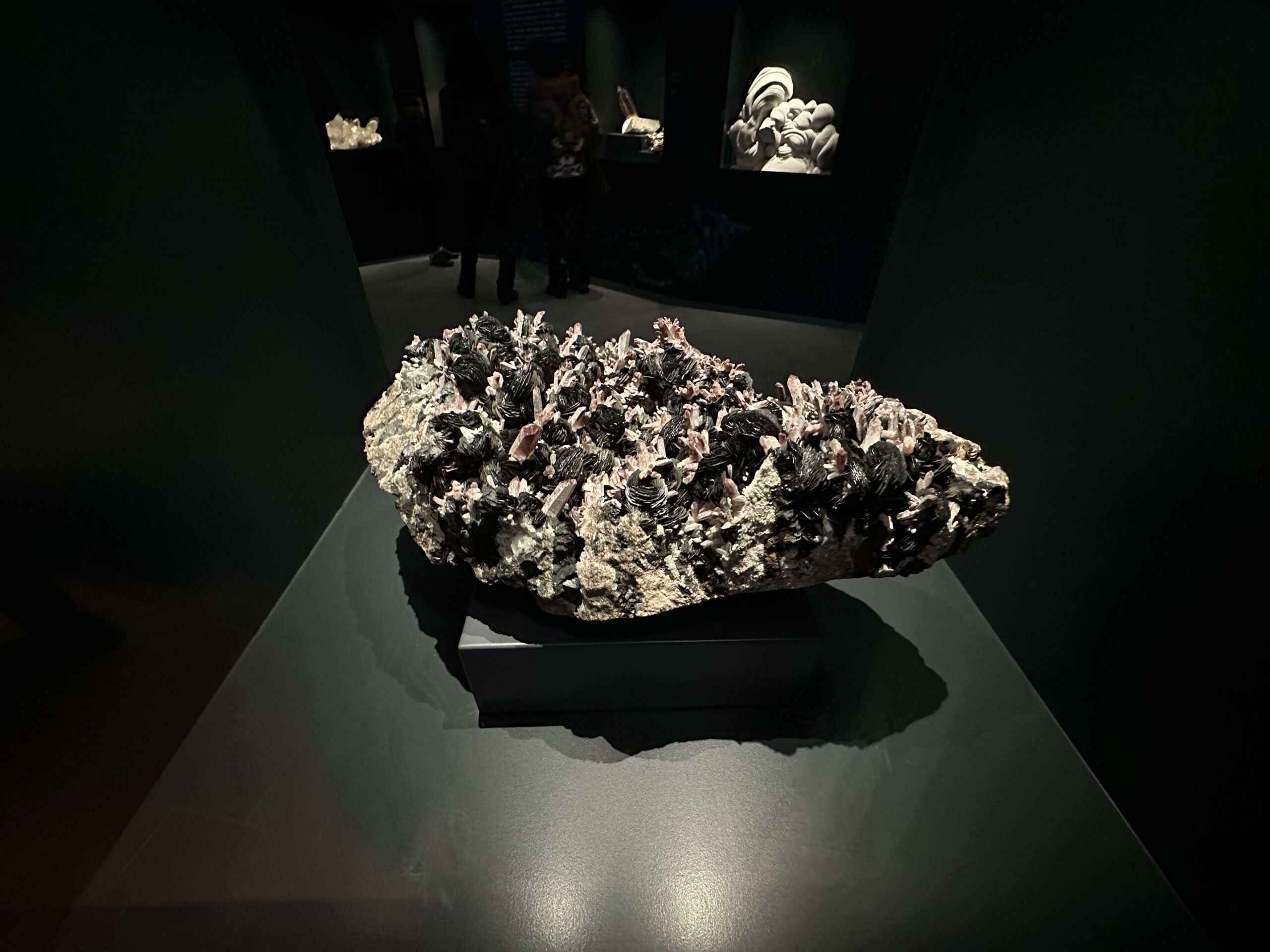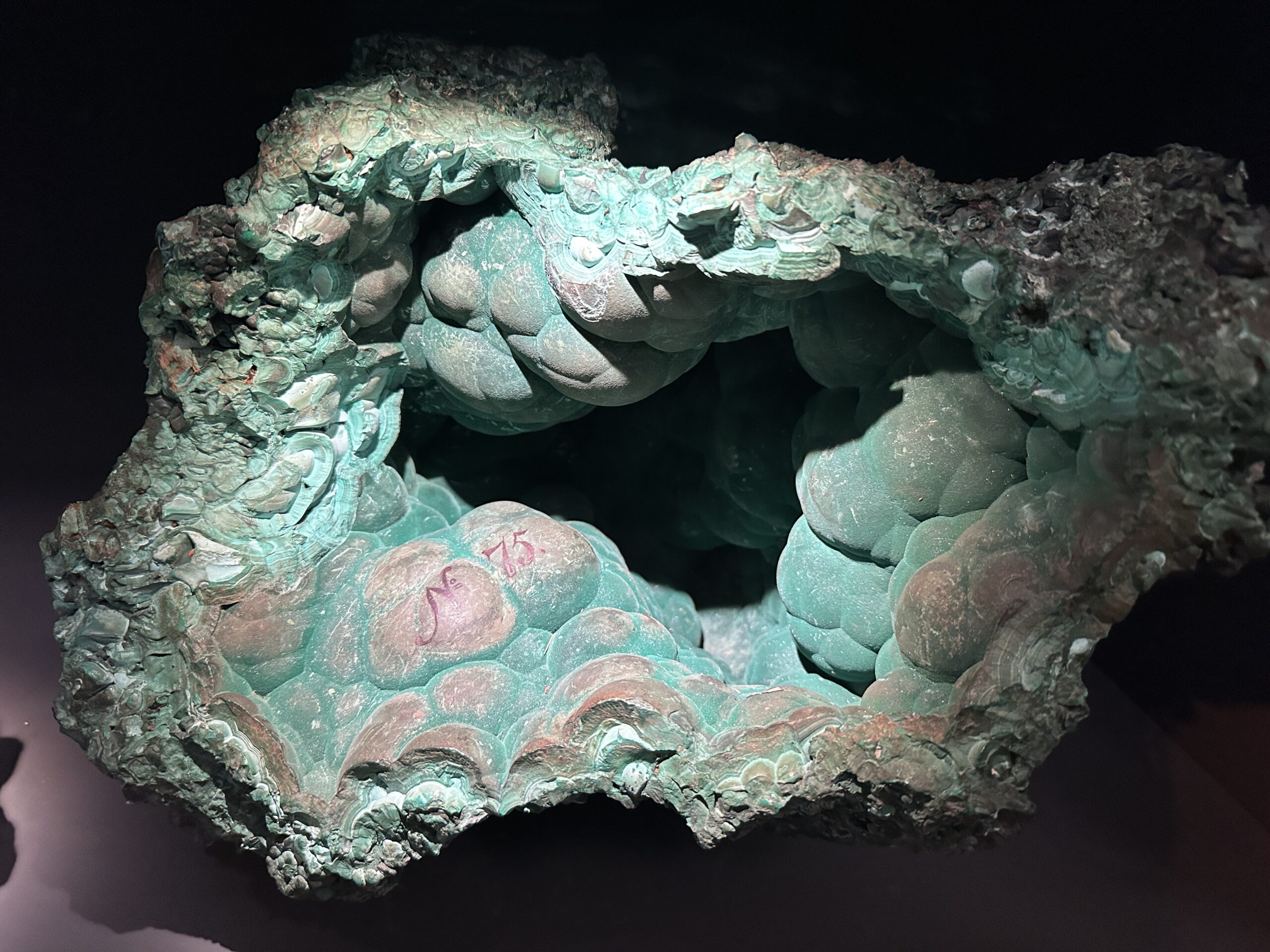 Pannelli scuri, luci molto soffuse stile locale equivoco, teche in vetro. I grandi pietre sono in bella mostra come fossero in una vetrina di alta gioielleria. É senza alcun dubbio la più bella collezione di minerali mai vista. I colori sono incredibili, forme sinuose, geometriche, morbide, granulose, lisce, ruvide, spigolose, frastagliate…è pazzesca la varietà di sfumature e consistenze. Purtroppo non ci sono etichette descrittive né manuali da poter consultare, ma solo piccoli cartellini con il nome della pietra proprio al di sotto di essa. Peccato, avrei apprezzato una presentazione più dettagliata, magari che mi suggerisse la consistenza che ha quel minerale al tatto, l’età della pietra, come e dove viene estratta, l’ utilizzo che se ne può fare, quanto sia preziosa o rara, cose del genere insomma. Nella saletta attigua a quella principale ci sono degli armadi con cassetti in vetro, peccato che non si possano aprire per guardarne il contenuto. C’è anche l’angolo delle pietre fluorescenti. Al buio i colori sono incredibili, sembra di stare ad un rave party, o ad un concerto dei Coldplay. Passo davvero molto tempo in queste sale perché sono letteralmente rapita da questi colori e starei ore ad contemplare il genio e la meraviglia della Natura.