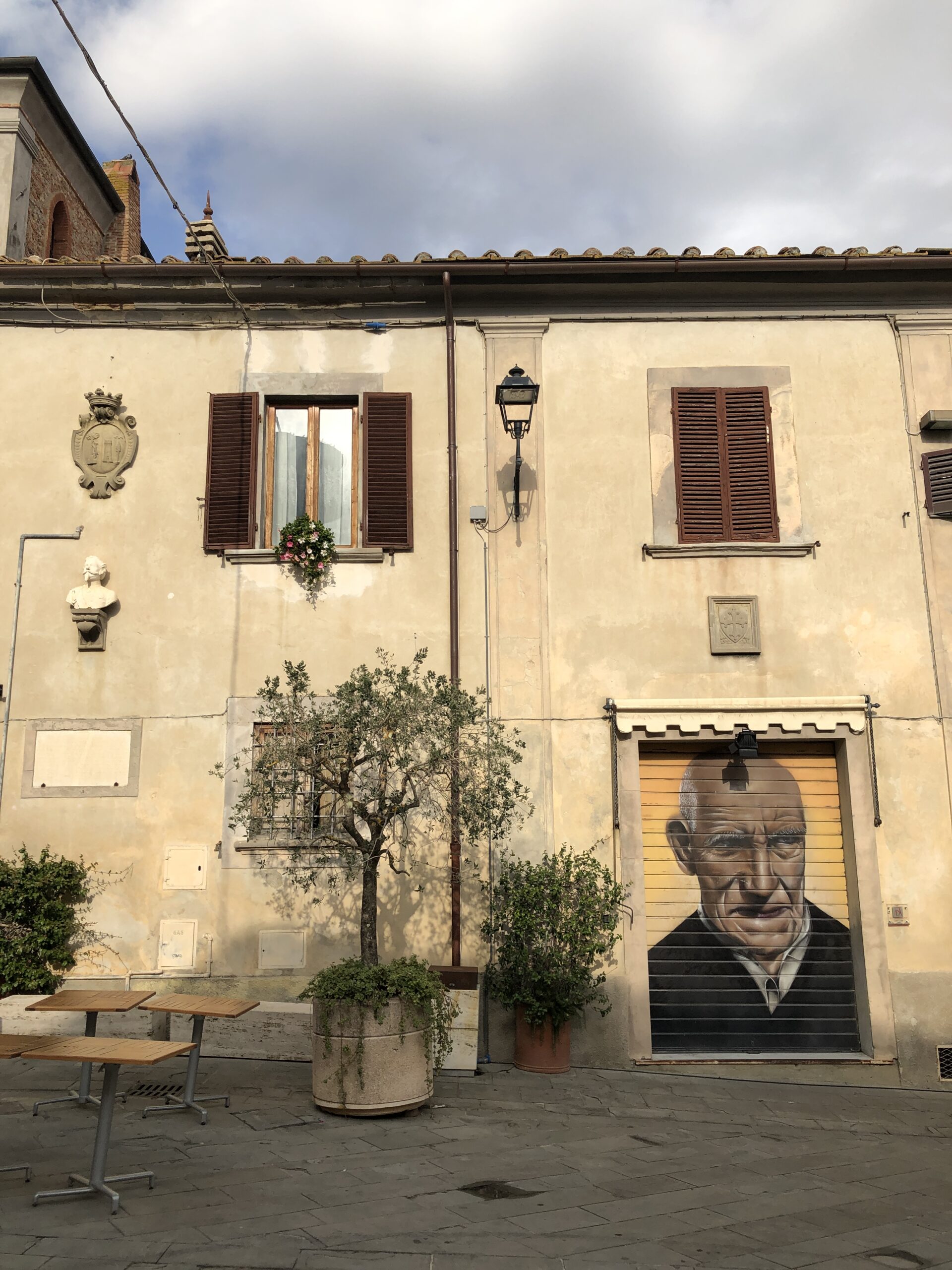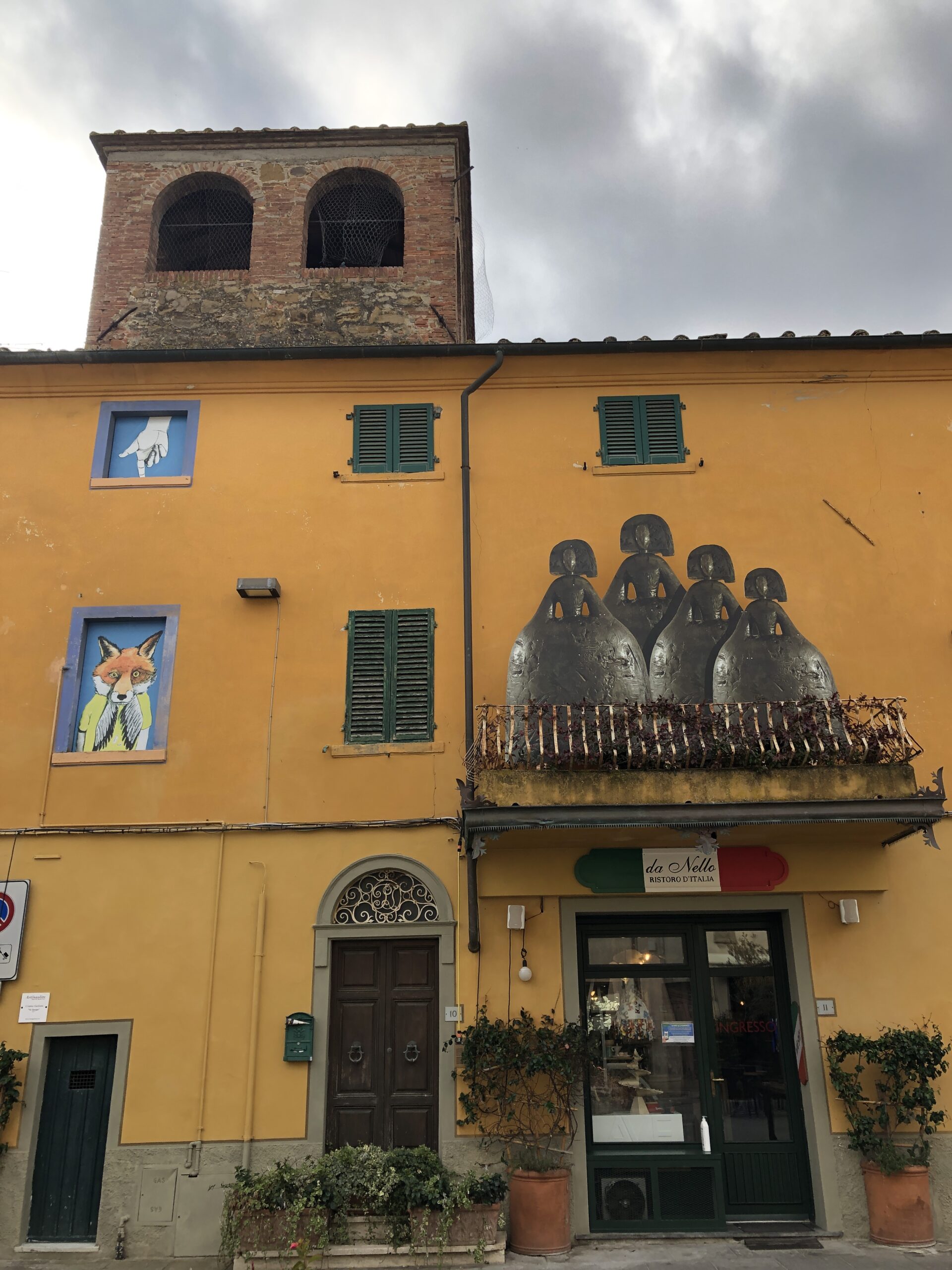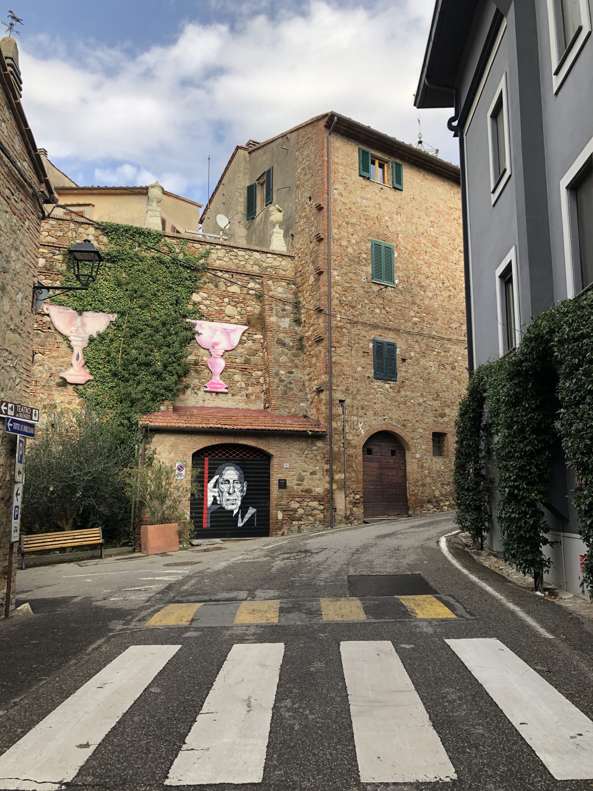 Un piccolo paesino nel quale mi sono fermata solamente perché attratta da tutte le cose strane che ha appeso alle pareti e sui margini della strada. Avete presente le camere degli adolescenti, con quei poster orrendi e le collezioni di pupazzetti sulle mensole polverose? Mi è apparsa così Lajatico. Un accozzaglia di opere e colori che nulla incastrano l’uno con l’altro ma riempiono gli spazi creando una strana e simpatica atmosfera.