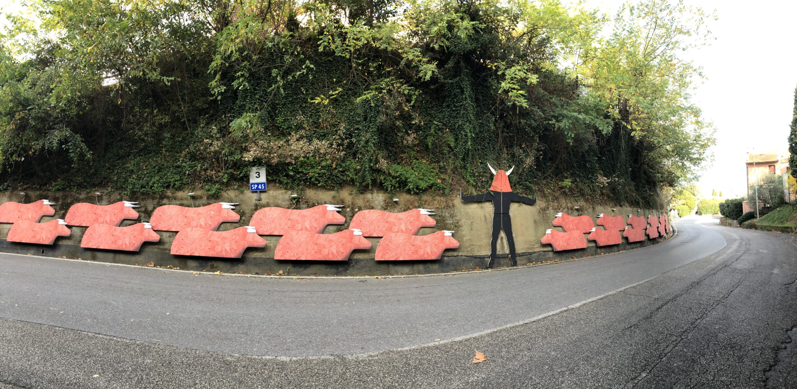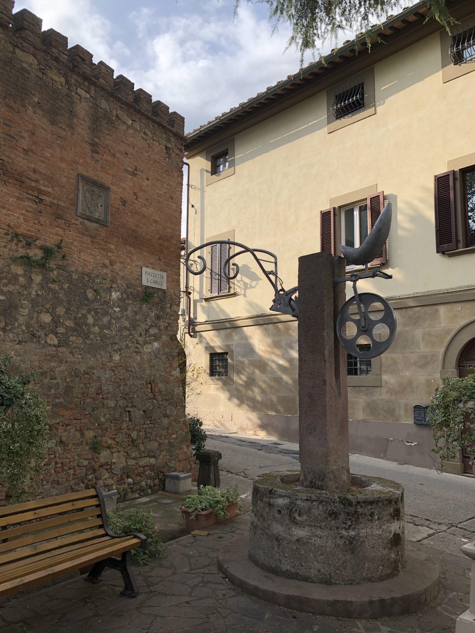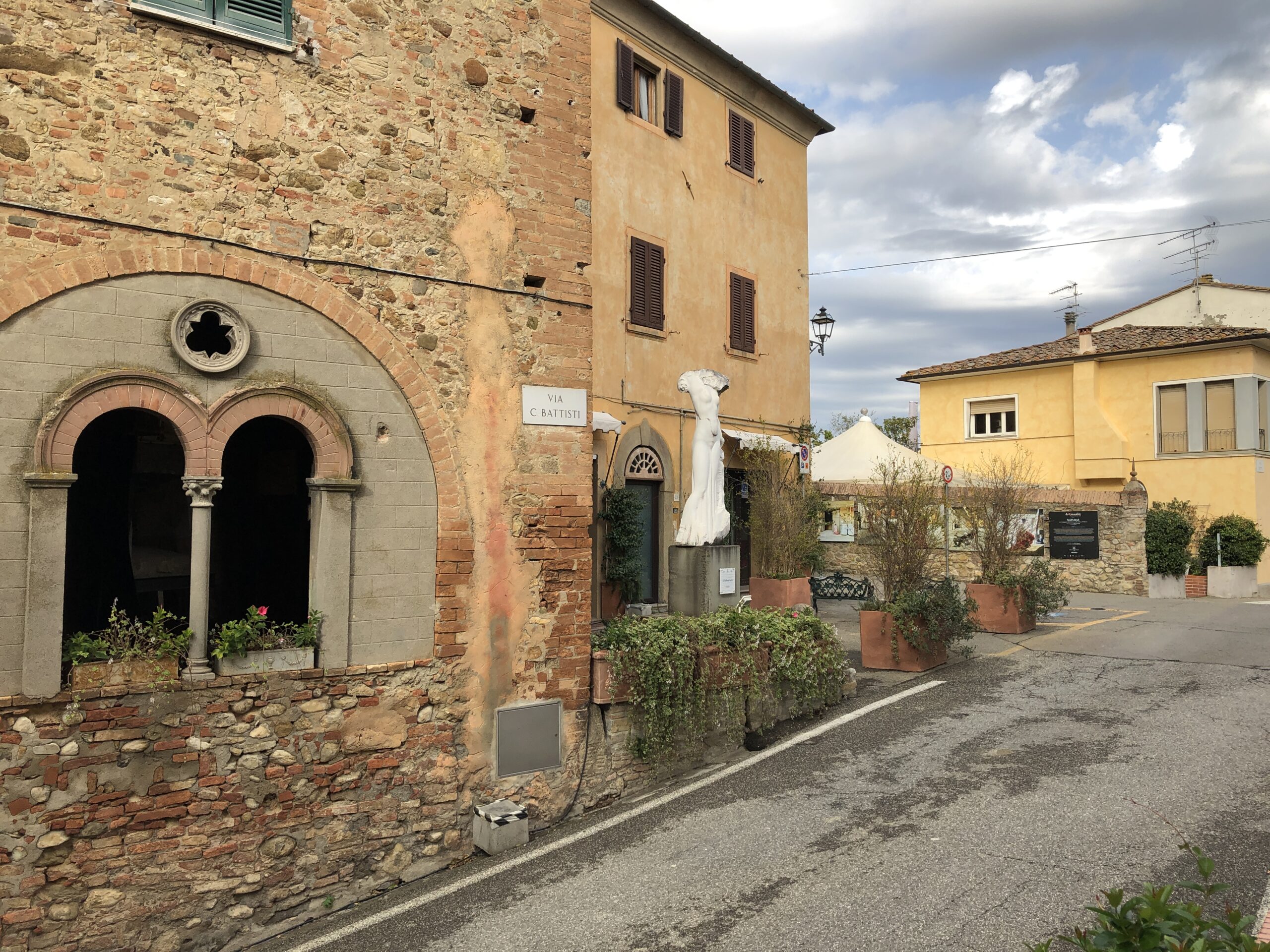 Un piccolo paesino nel quale mi sono fermata solamente perché attratta da tutte le cose strane che ha appeso alle pareti e sui margini della strada. Avete presente le camere degli adolescenti, con quei poster orrendi e le collezioni di pupazzetti sulle mensole polverose? Mi è apparsa così Lajatico. Un accozzaglia di opere e colori che nulla incastrano l’uno con l’altro ma riempiono gli spazi creando una strana e simpatica atmosfera.