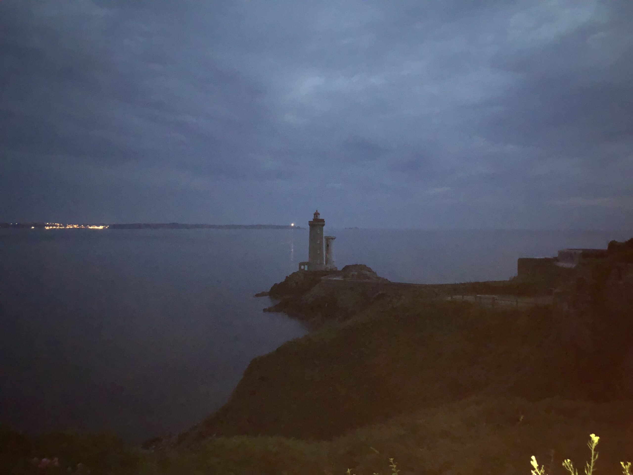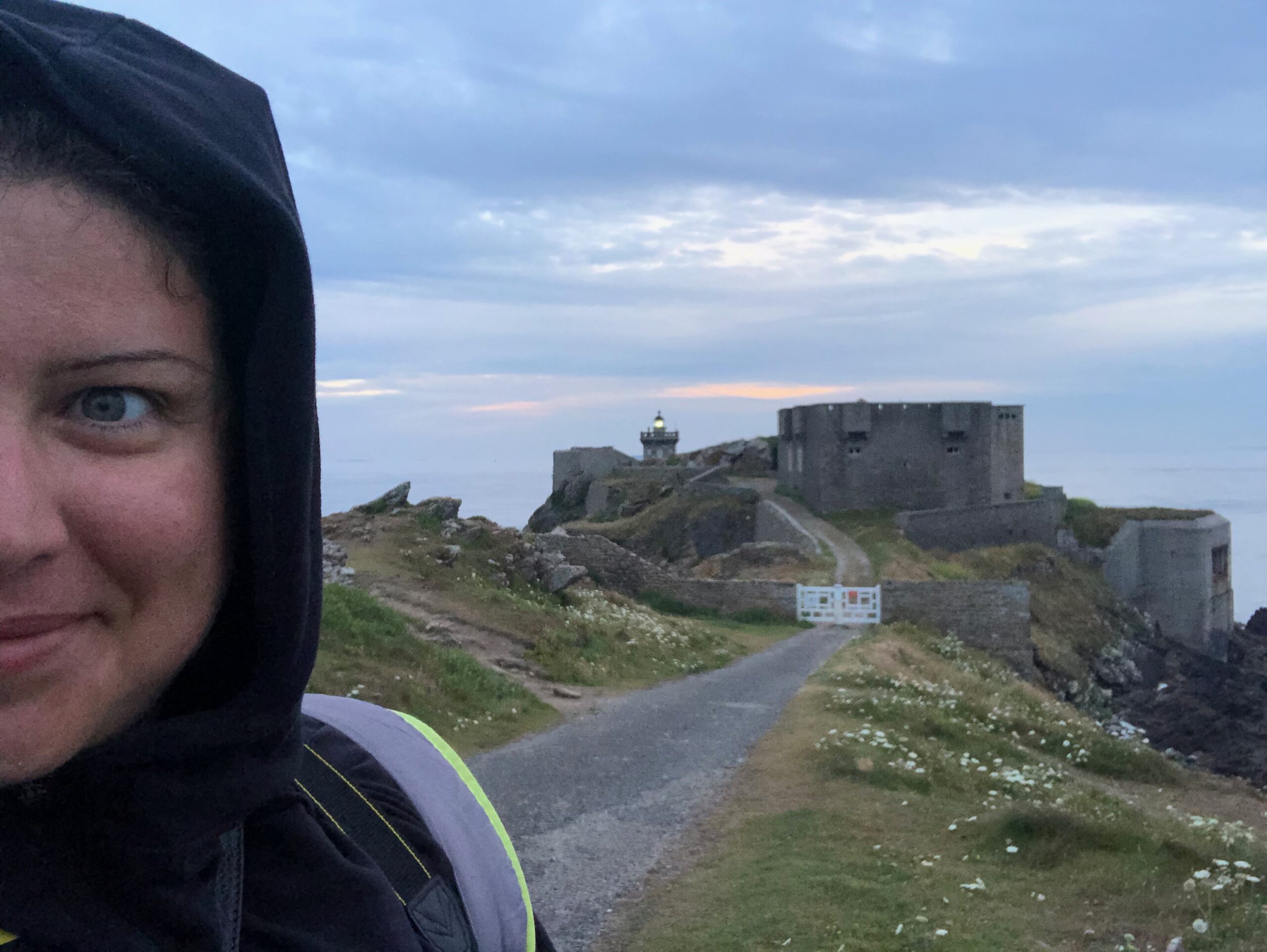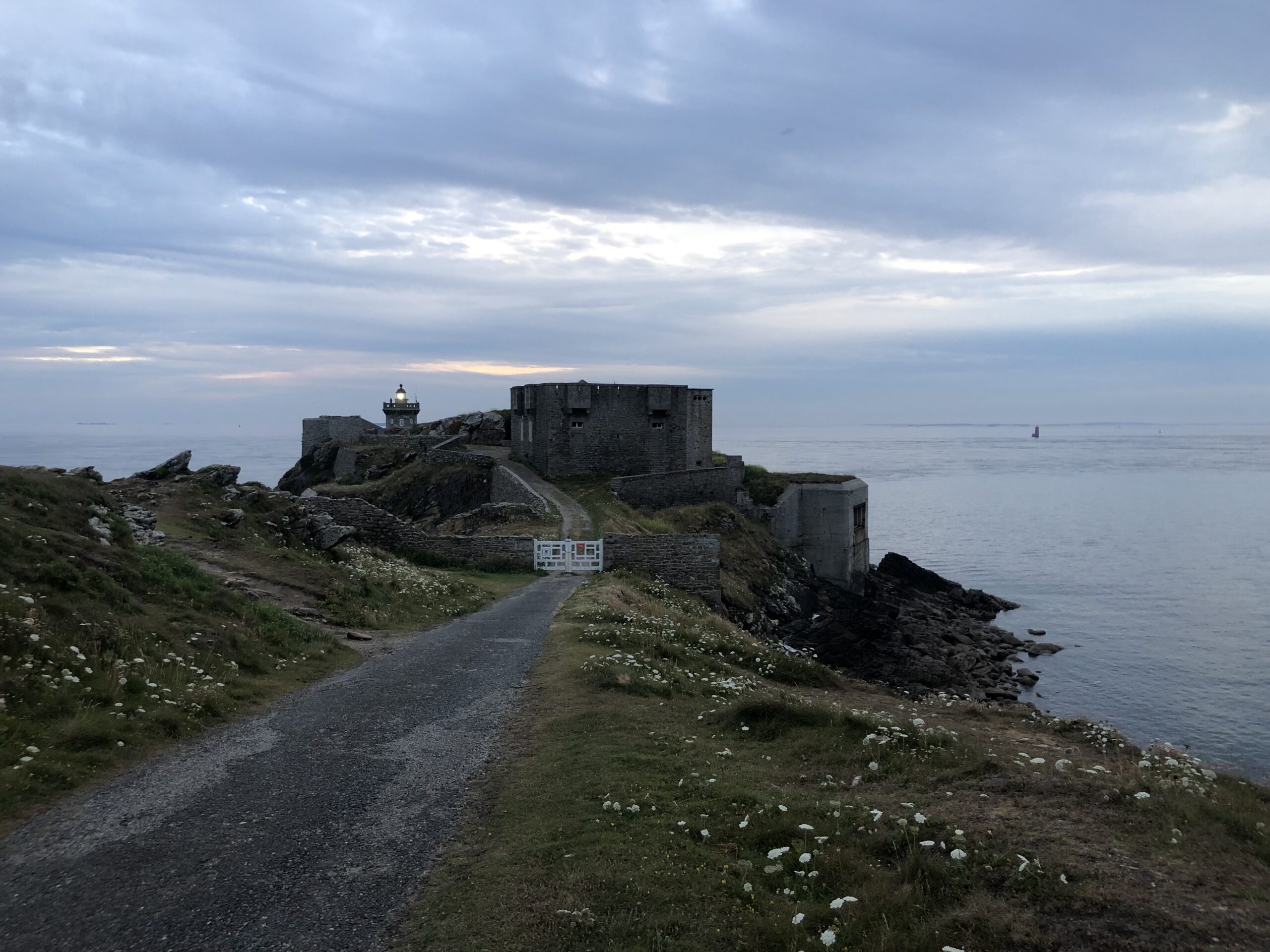 Il forte in granito, squadrato e freddo, non ha nulla a che vedere con l’eleganza del faro, un bunker si affaccia sul mare e le onde s’infrangono sulle rocce appuntite macchiate di verde. La sua luce si può vedere a 40 km distanza e, mentre il fascio luminoso gira, mi vengono in mente tutti quei film ambientati in un faro, dai più romantici ai più drammatici. Sarei proprio curiosa di vedere la grande lampadina e ancora di più mi divertirebbe vedere come viene montata.