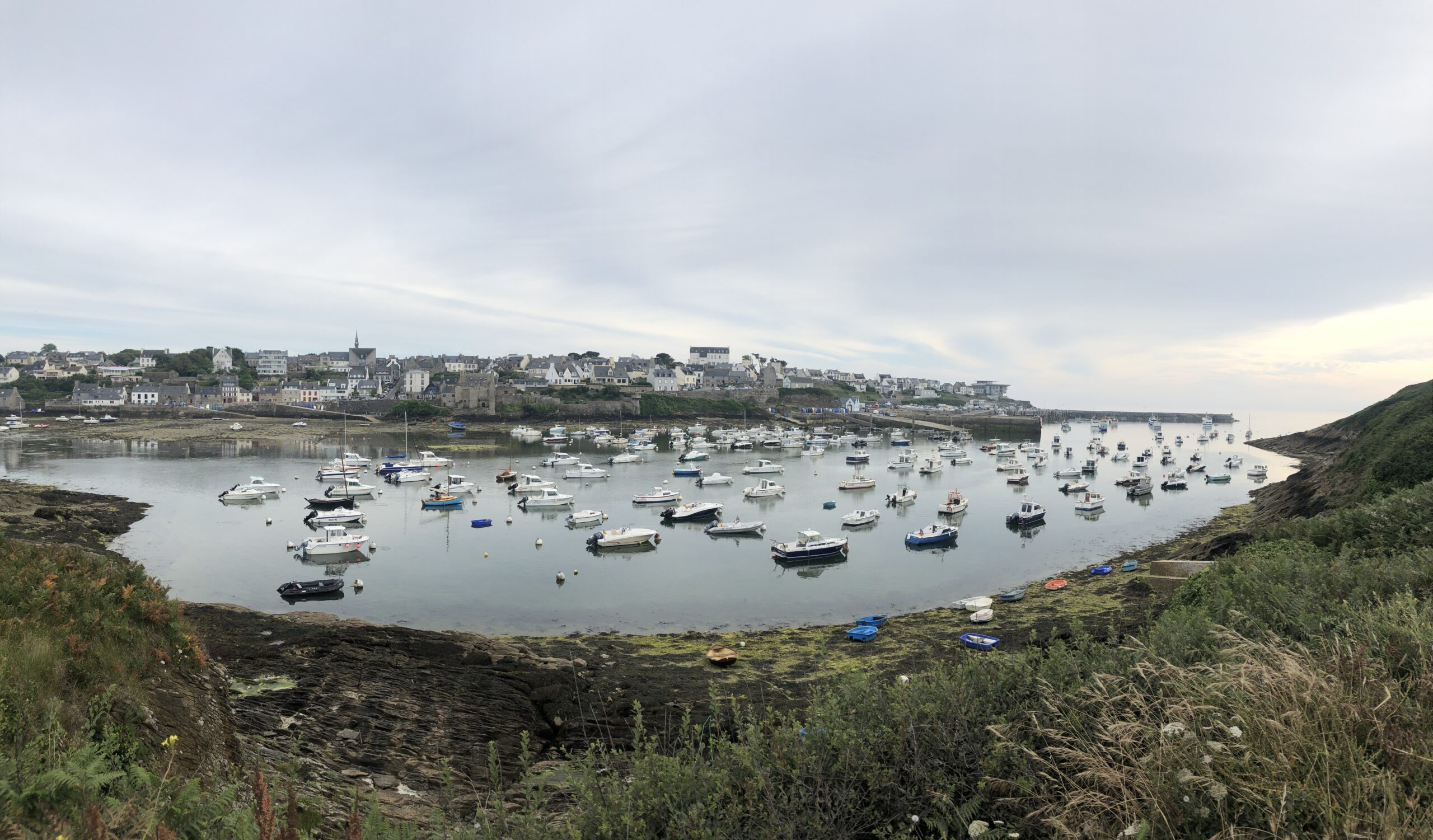 Le Conquet è il paesino più a occidente della Francia e, forse, uno dei posti più romantici da visitare al tramonto. É un borgo mignon con eleganti case in pietra dalle finestre colorate. C’è una grande insenatura costellata di piccole imbarcazioni, da una parte il promontorio erboso con  il sito naturale di Kermorvan sul quale stormi di piccoli uccelli bianchi altalenano tra il cielo e i fili d’erba; dall’altro lato invece le basse casette disegnano la lunga linea della costa.