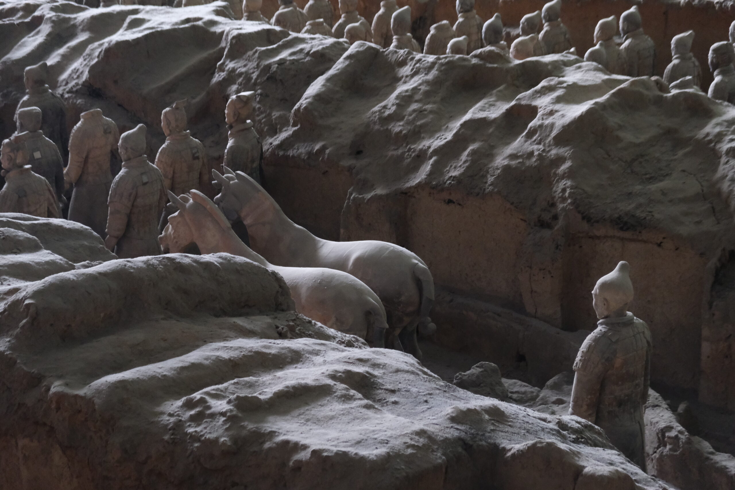 Oltre a questo enorme capannone, ci sono altri scavi visitabili, più piccoli e con ricostruzioni che, seppur fedeli all’originale, sono pur sempre ricostruzioni. Immaginate cosa avrà provato il Sig. Yang Zhifa quel giorno in cui, mentre cercava l’acqua, si è imbattuto in una testa in terracotta. Voleva scavare un posso e invece (poverino) si è ritrovato con il campo pieno di ‘esperti’ ed archeologi che hanno dissotterrato tutto sto ben di dio.