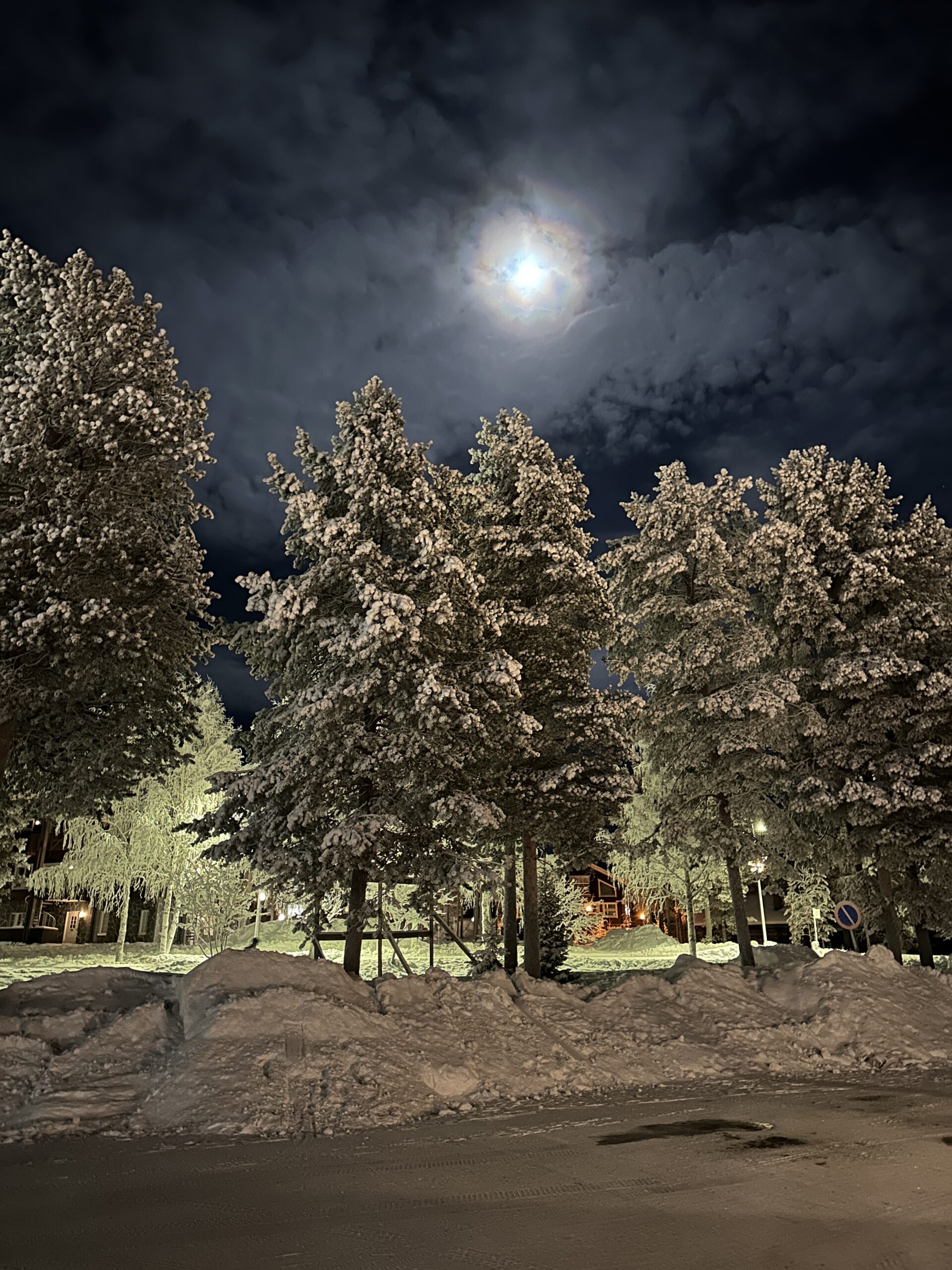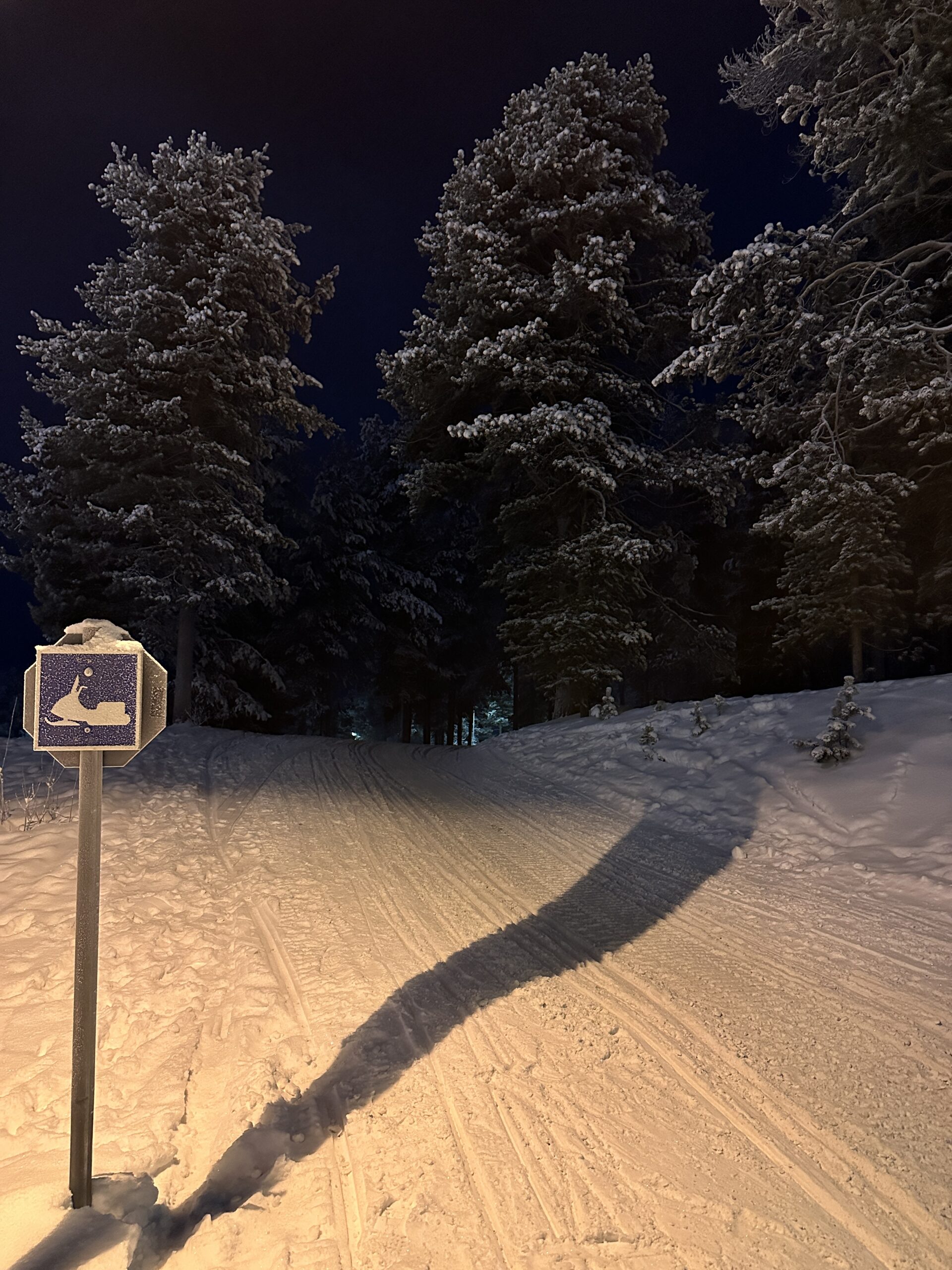 Non c’è fila e non c’è ressa. Non ci sono persone accalcate e nessuno grida, il centro è attaccato alle piste da scii, o per meglio dire, inglobato da esse. La cosa di assoluto divertimento per me è vedere la gente che esce dai ristoranti e, infilandosi gli scii di fondo, torna verso casa su sentieri illuminati in mezzo al bosco (ci sono circa 230 km di piste da fondo). Poi ci sono quelli che stanno bevendo un caffè al tavolino di un bar e dopo aver poggiato la tazzina sul tavolo, si alzano, attraversano la strada, mettono i piedi sulle tavole da snowboard e risalgono la cima. Sembra tutto così comodo, facile, ben studiato.