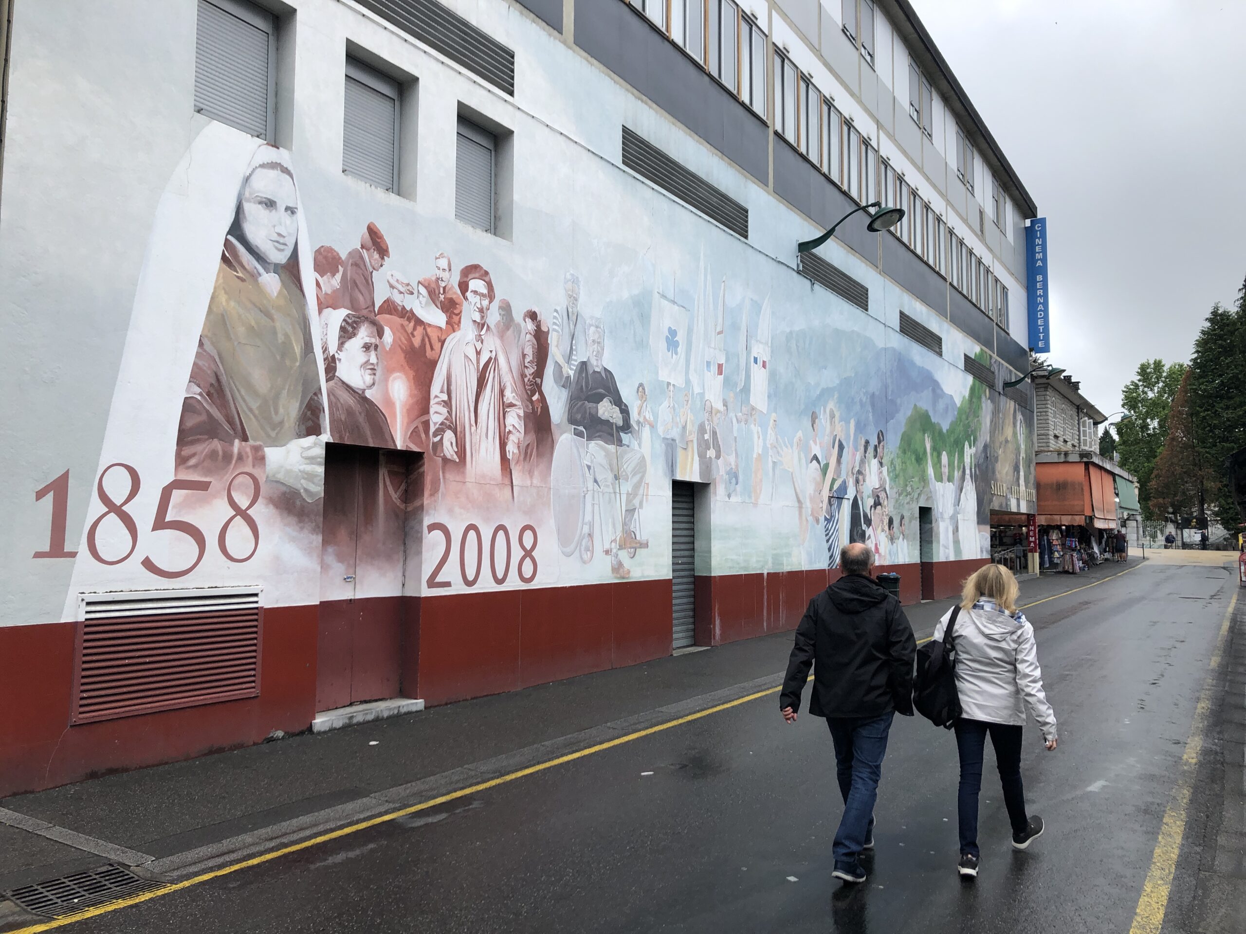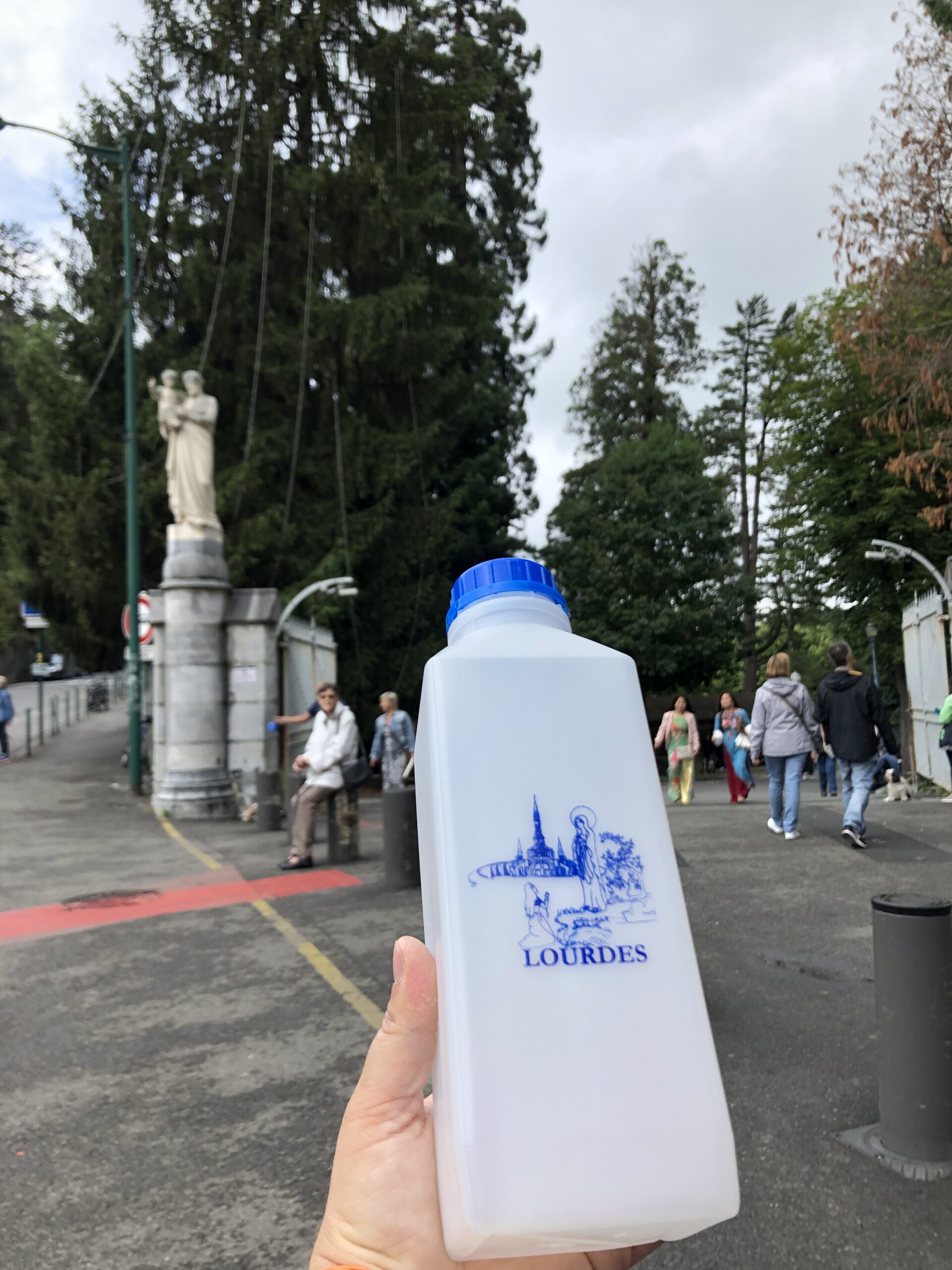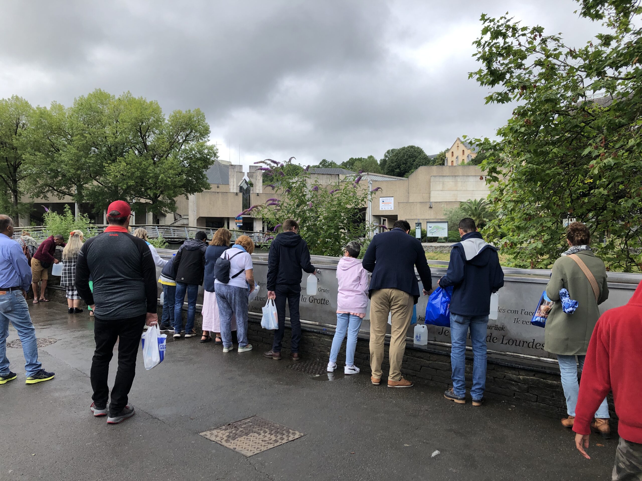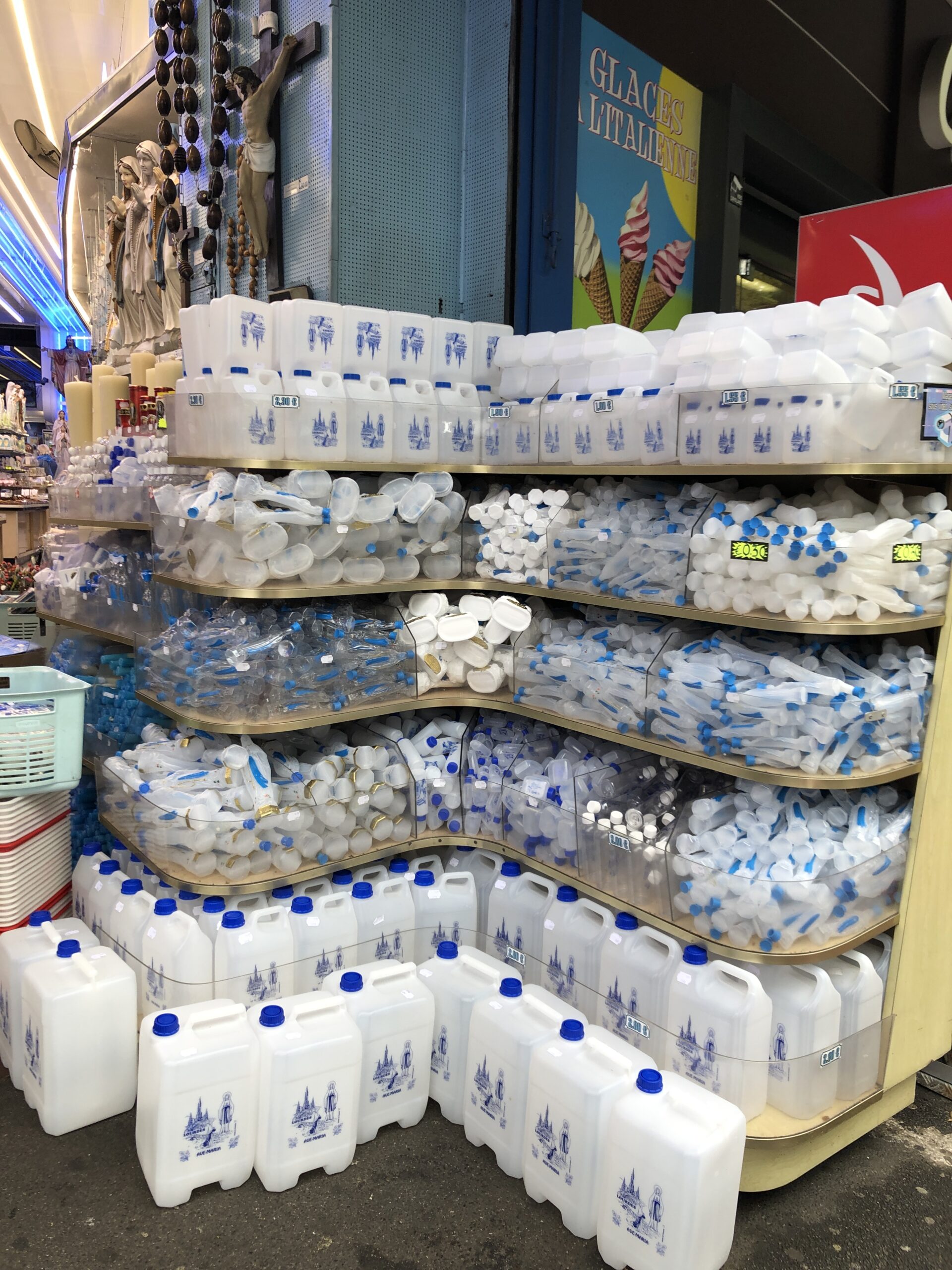 Faccio la fila come tutti per dissetarmi alla fonte miracolosa (confesso che è più buona dell’ Evian) e riempio le boccette souvenir.
