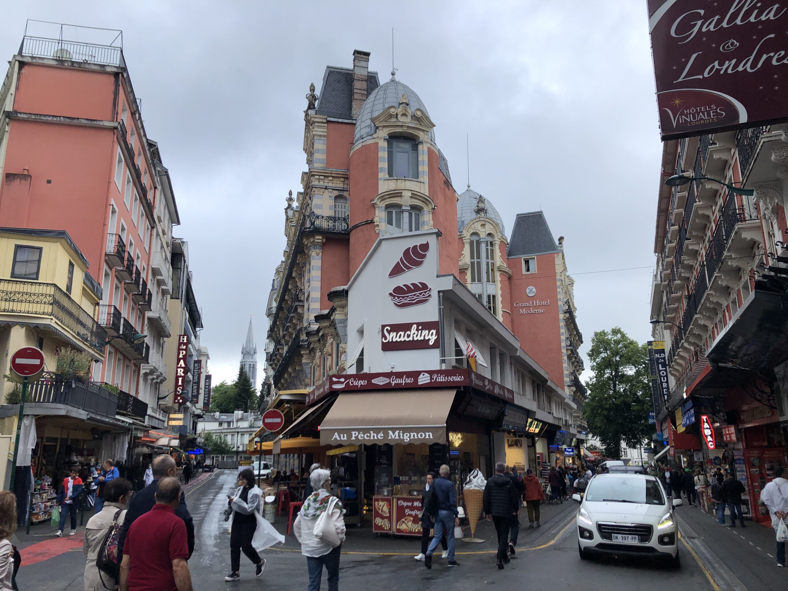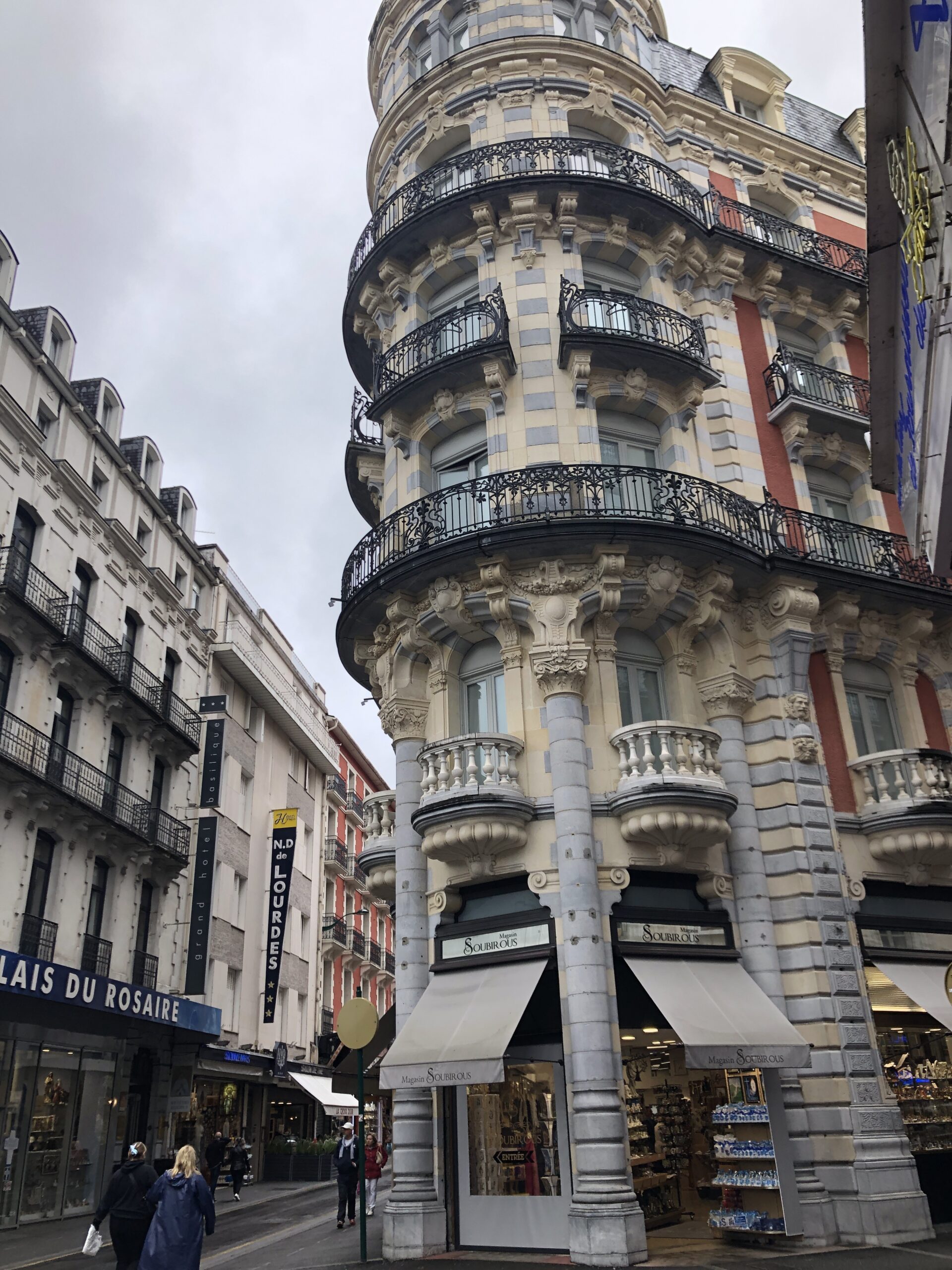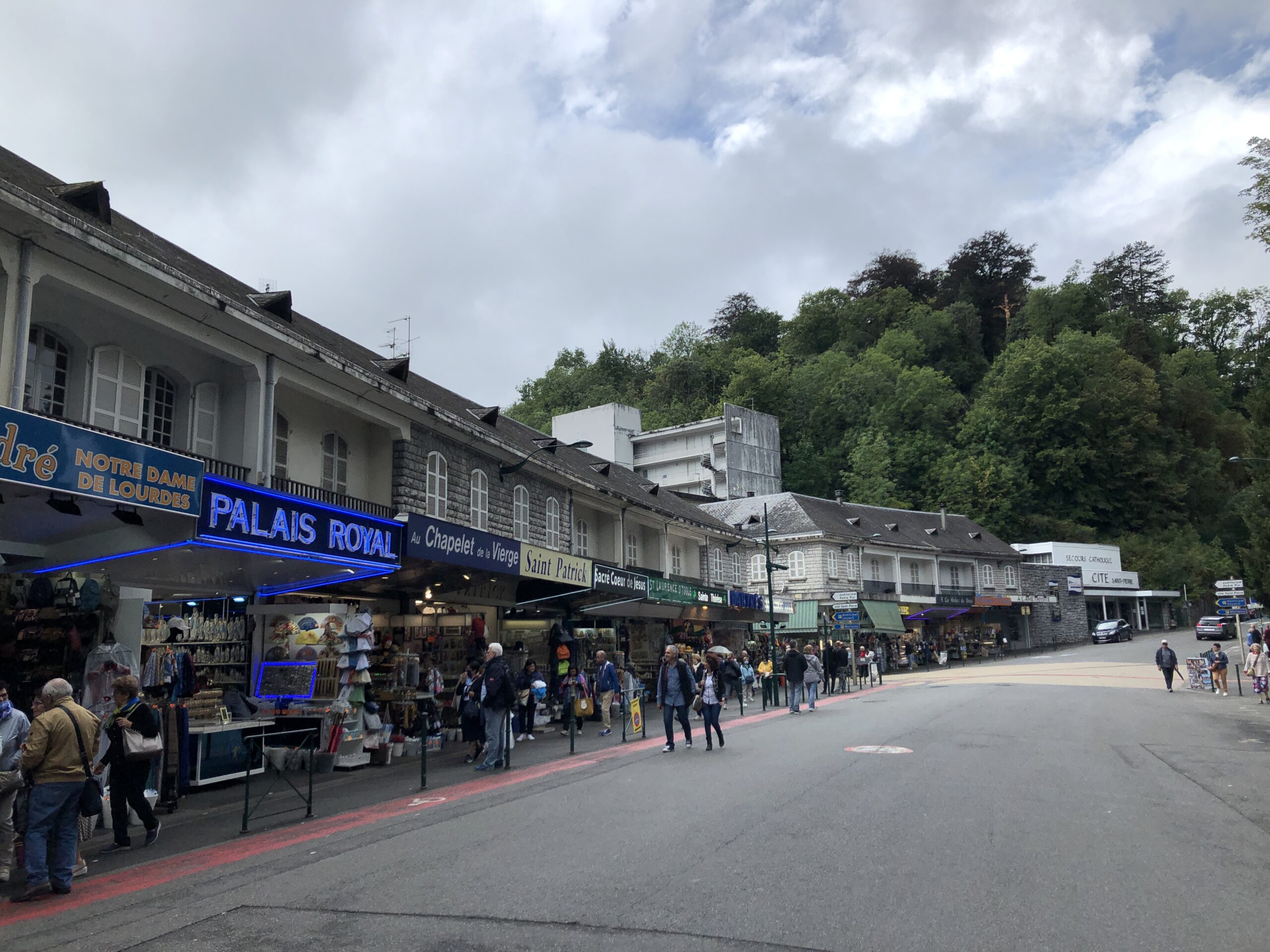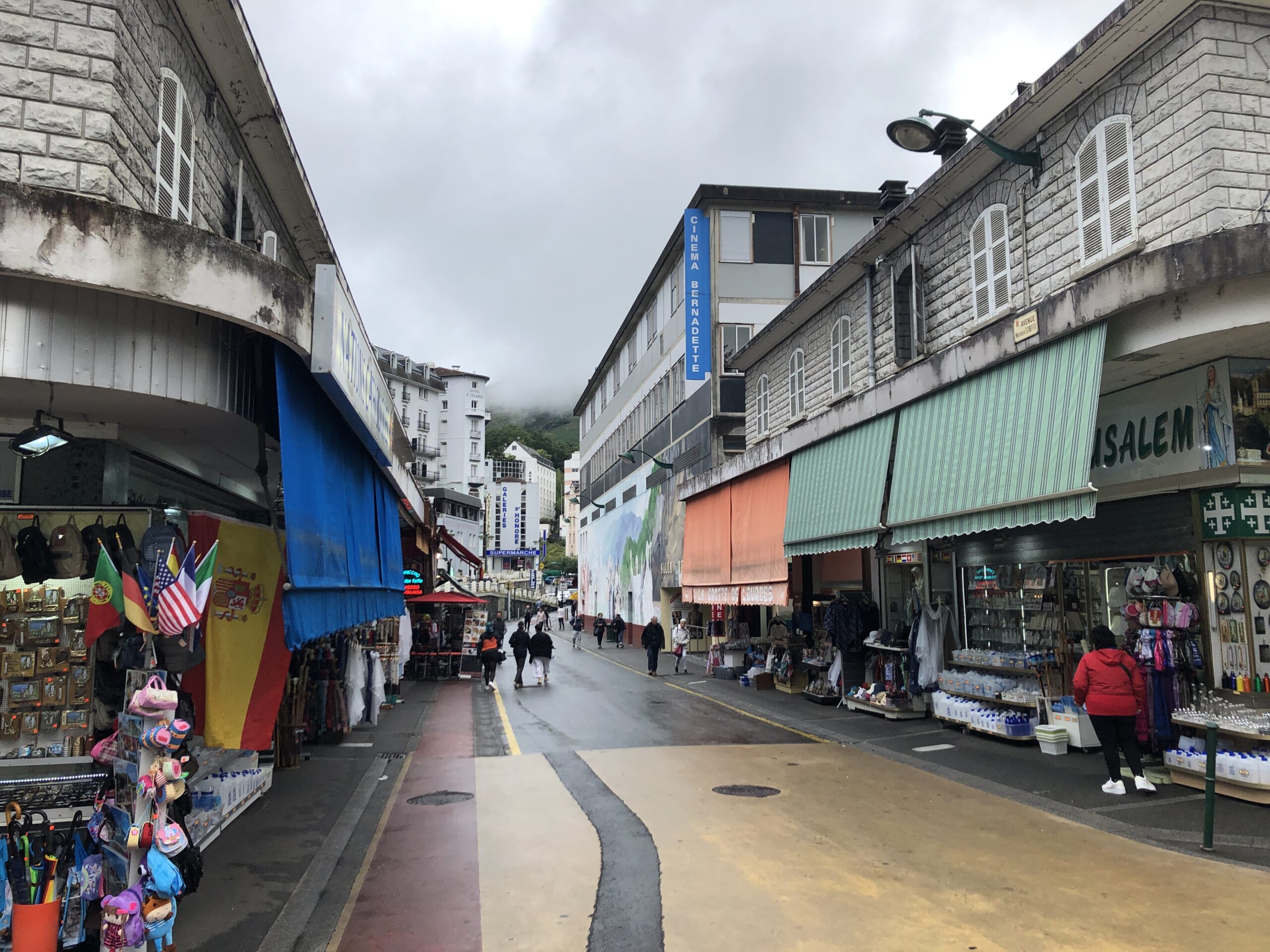 I palazzi del centro città sono elegantissimi, hanno facciate ricche di stucchi e grandi finestre che affacciano su strette strade invase da pellegrini. Il Gave de Pau divide la città in due ed i piccoli ponti in ferro che lo attraversano, mostrano un paesaggio ricco di vegetazione e casette dal sapore retrò che affacciano direttamente su letto del fiume. Nonostante la grande confusione di oggetti e persone, Lourdes ha un’atmosfera molto particolare ed affascinante che mi ricorda in qualche modo quelle città che fanno da sfondo ai film degli anni Venti.