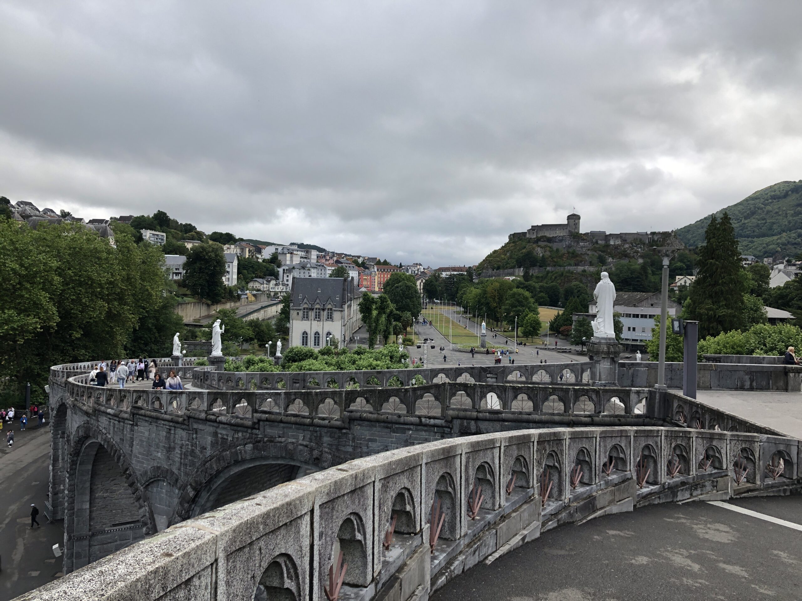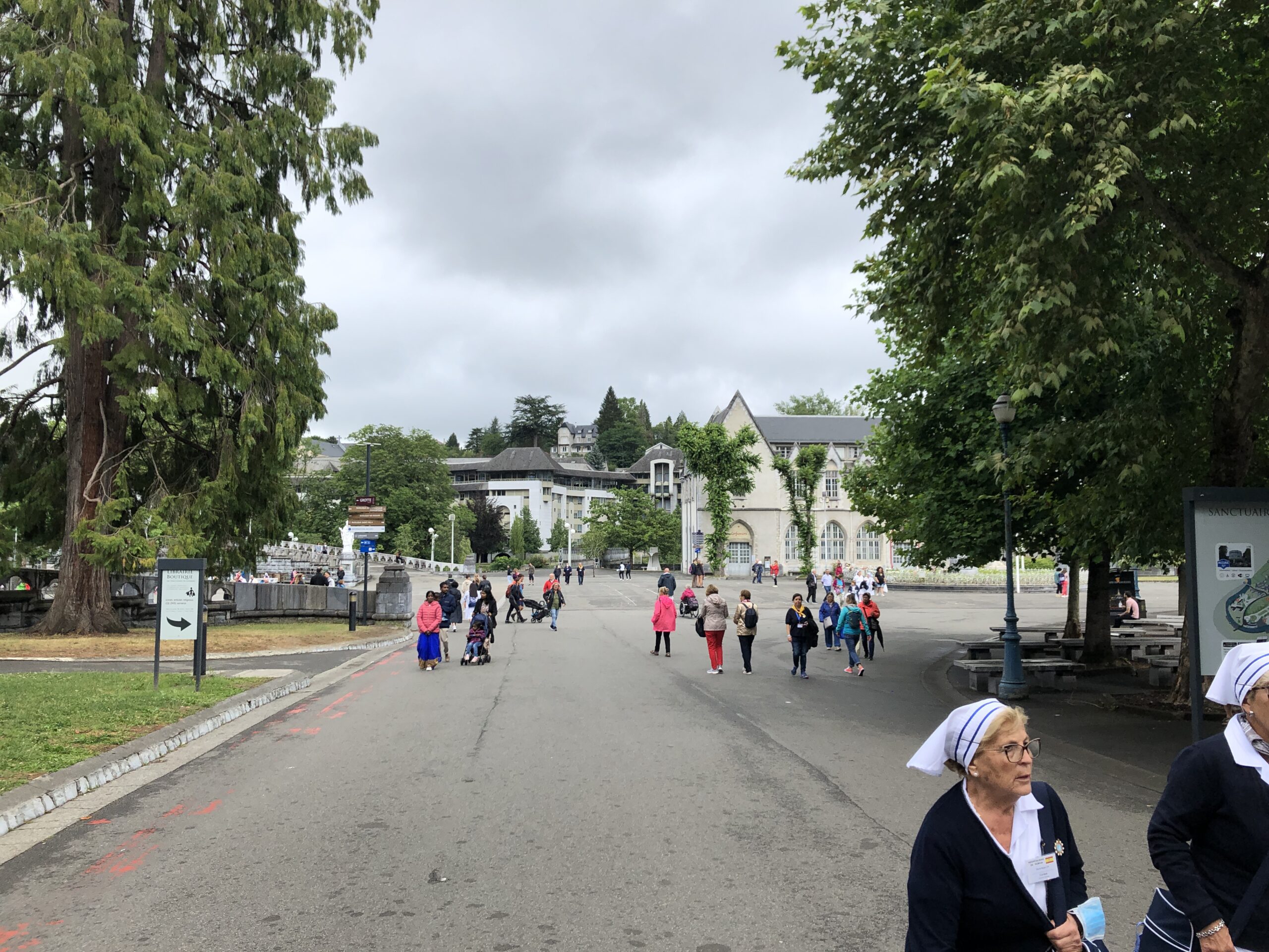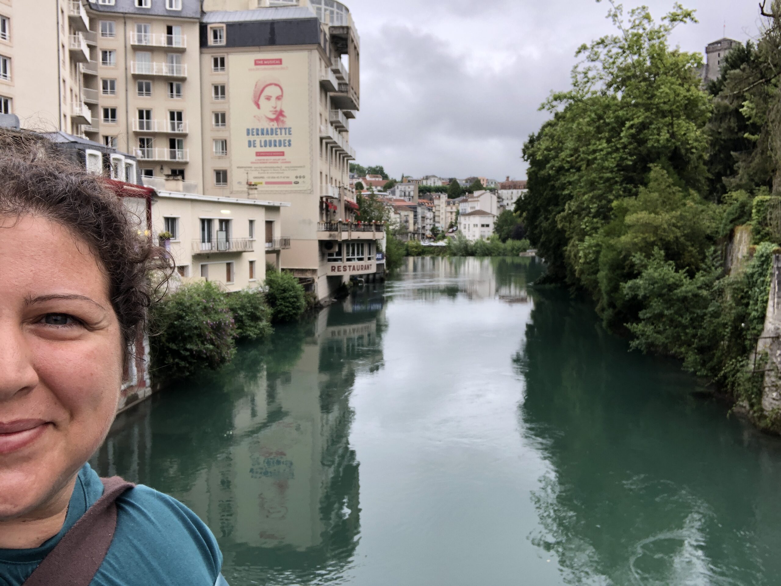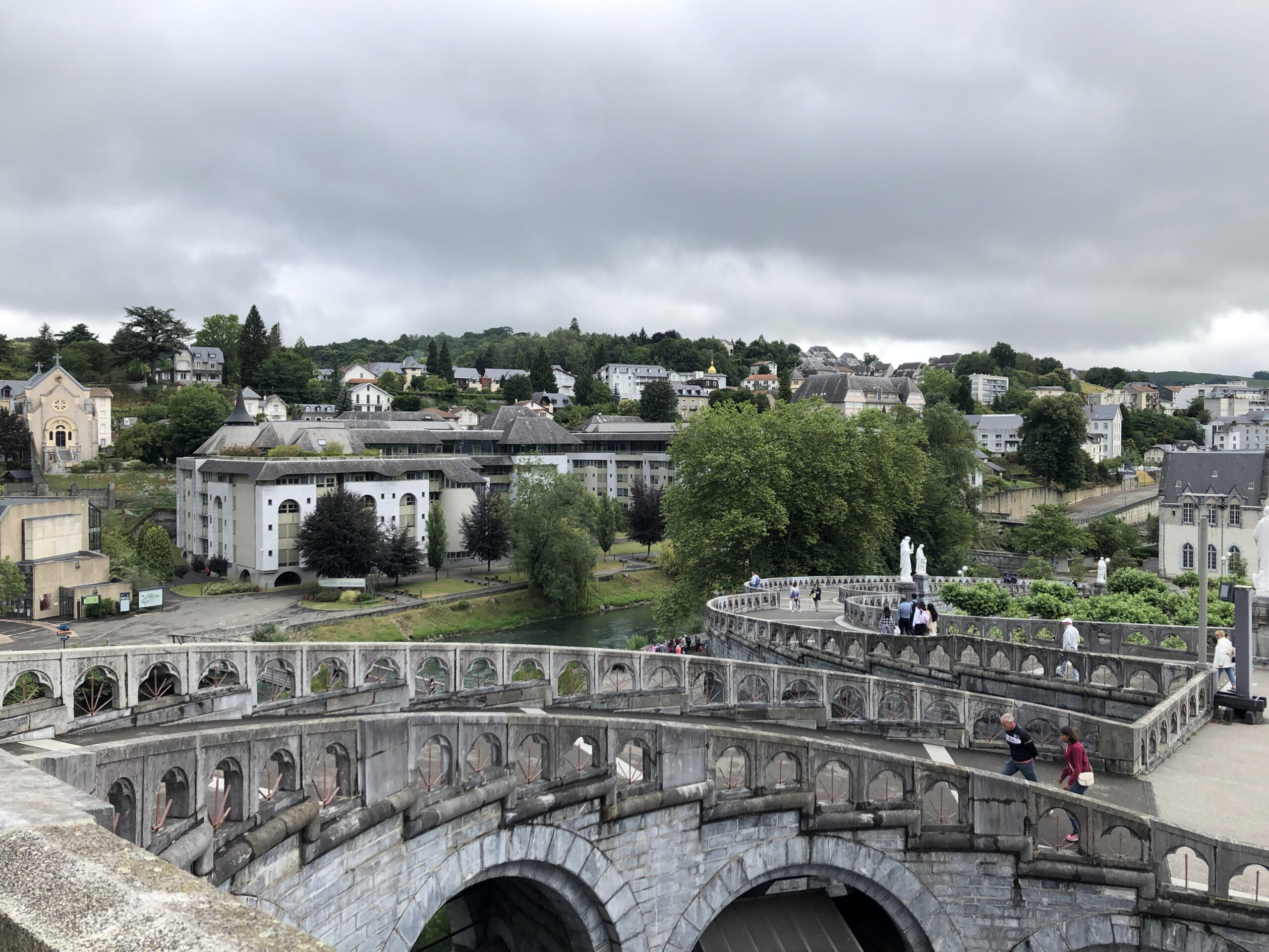 I palazzi del centro città sono elegantissimi, hanno facciate ricche di stucchi e grandi finestre che affacciano su strette strade invase da pellegrini. Il Gave de Pau divide la città in due ed i piccoli ponti in ferro che lo attraversano, mostrano un paesaggio ricco di vegetazione e casette dal sapore retrò che affacciano direttamente su letto del fiume. Nonostante la grande confusione di oggetti e persone, Lourdes ha un’atmosfera molto particolare ed affascinante che mi ricorda in qualche modo quelle città che fanno da sfondo ai film degli anni Venti.