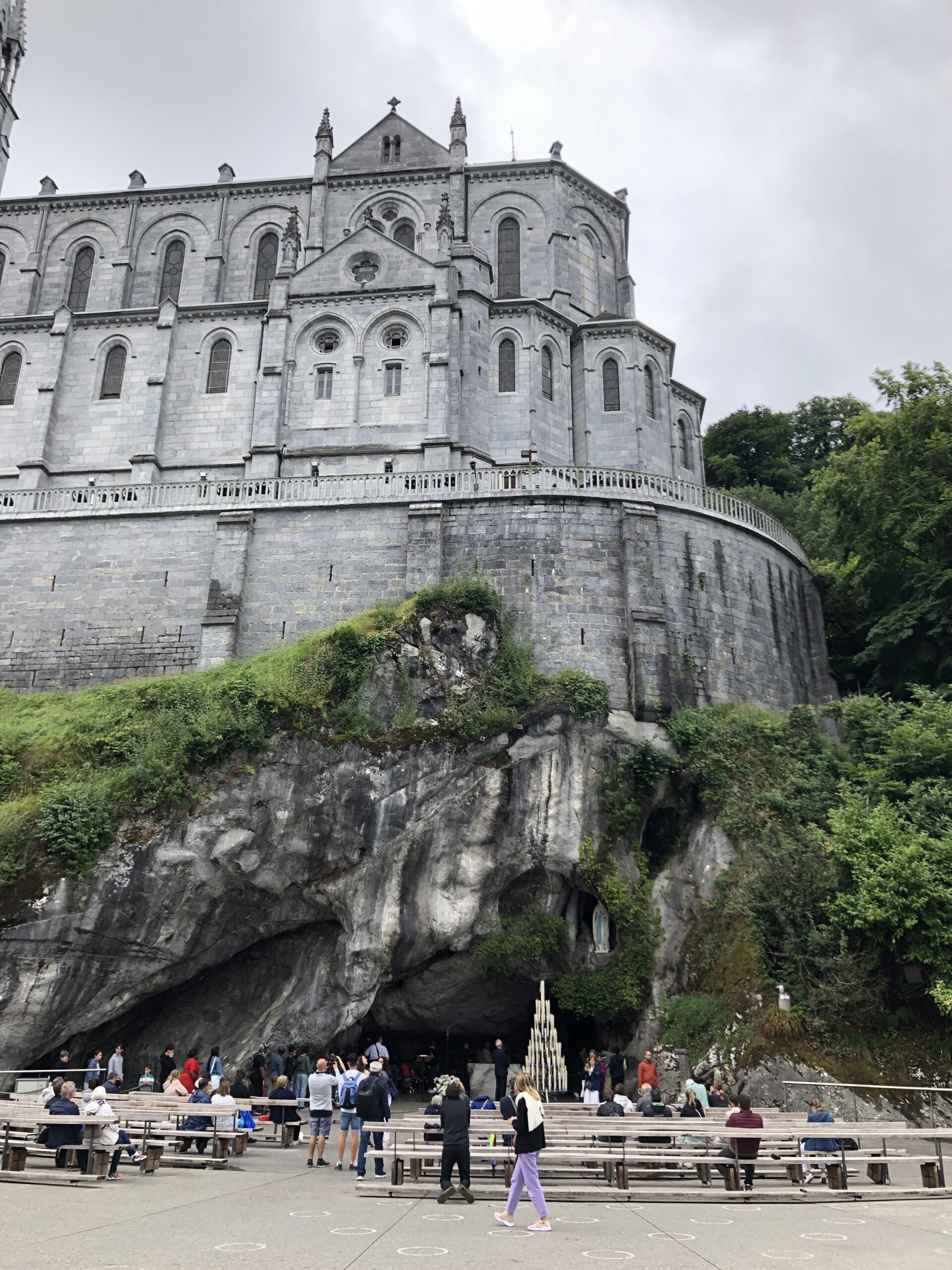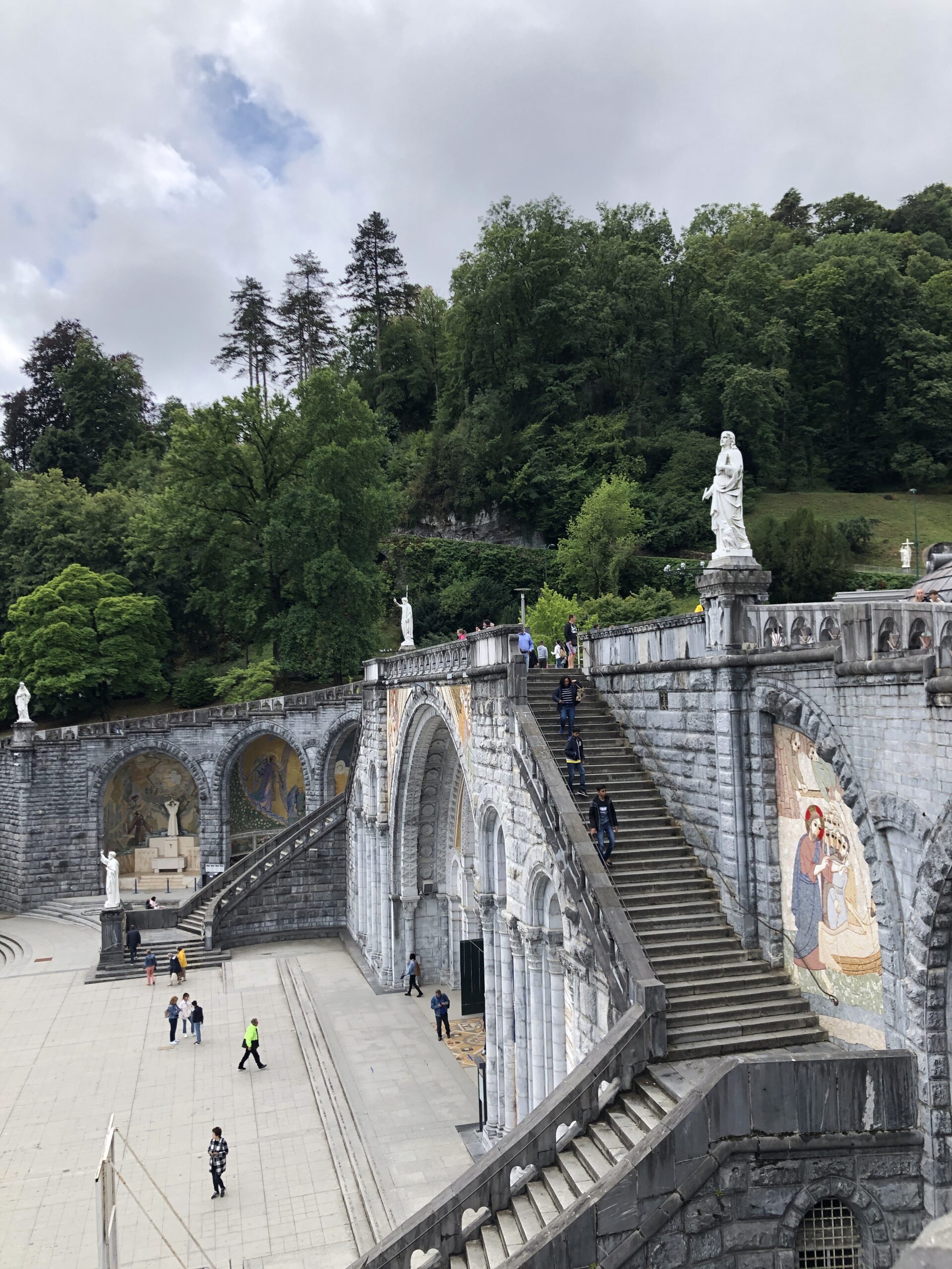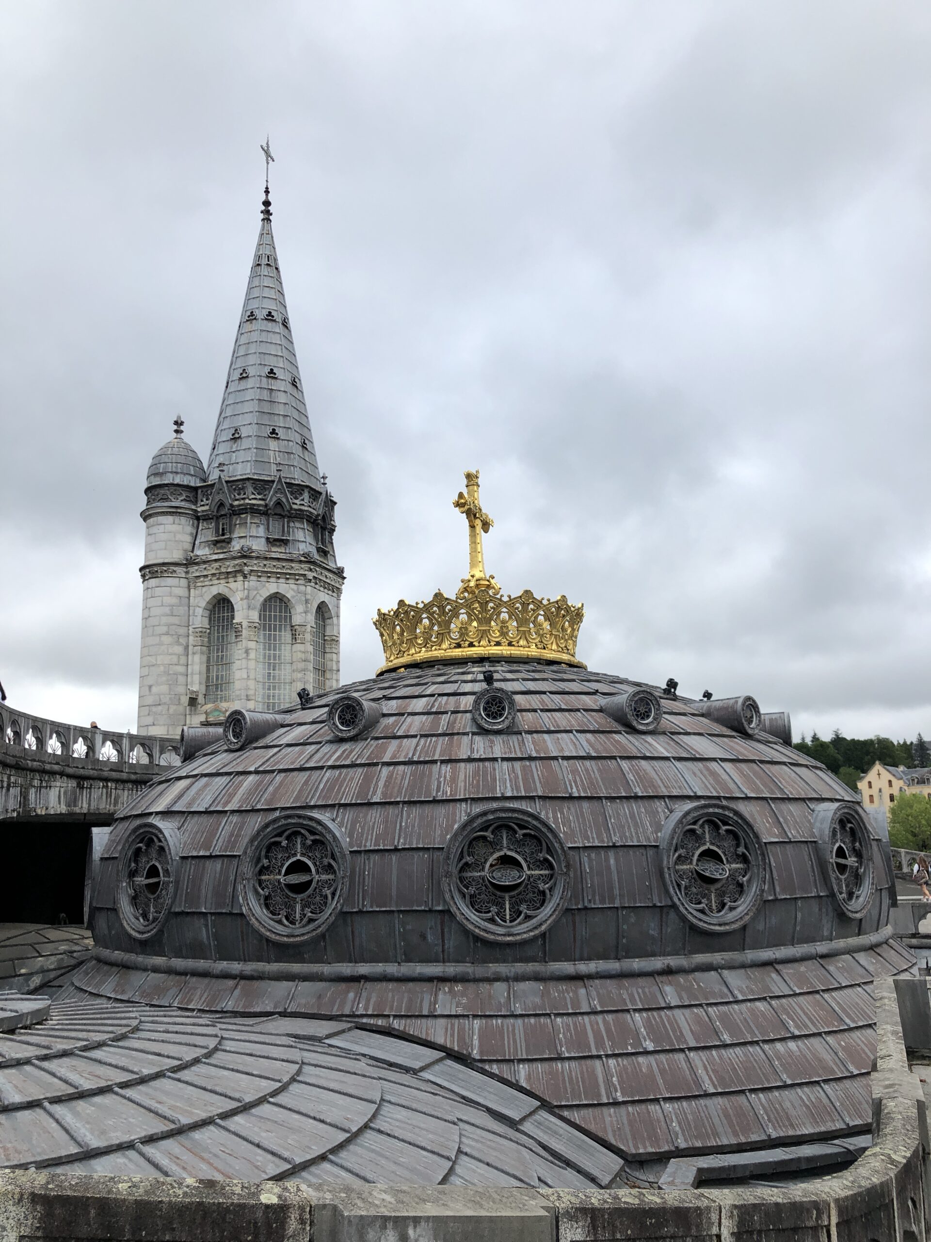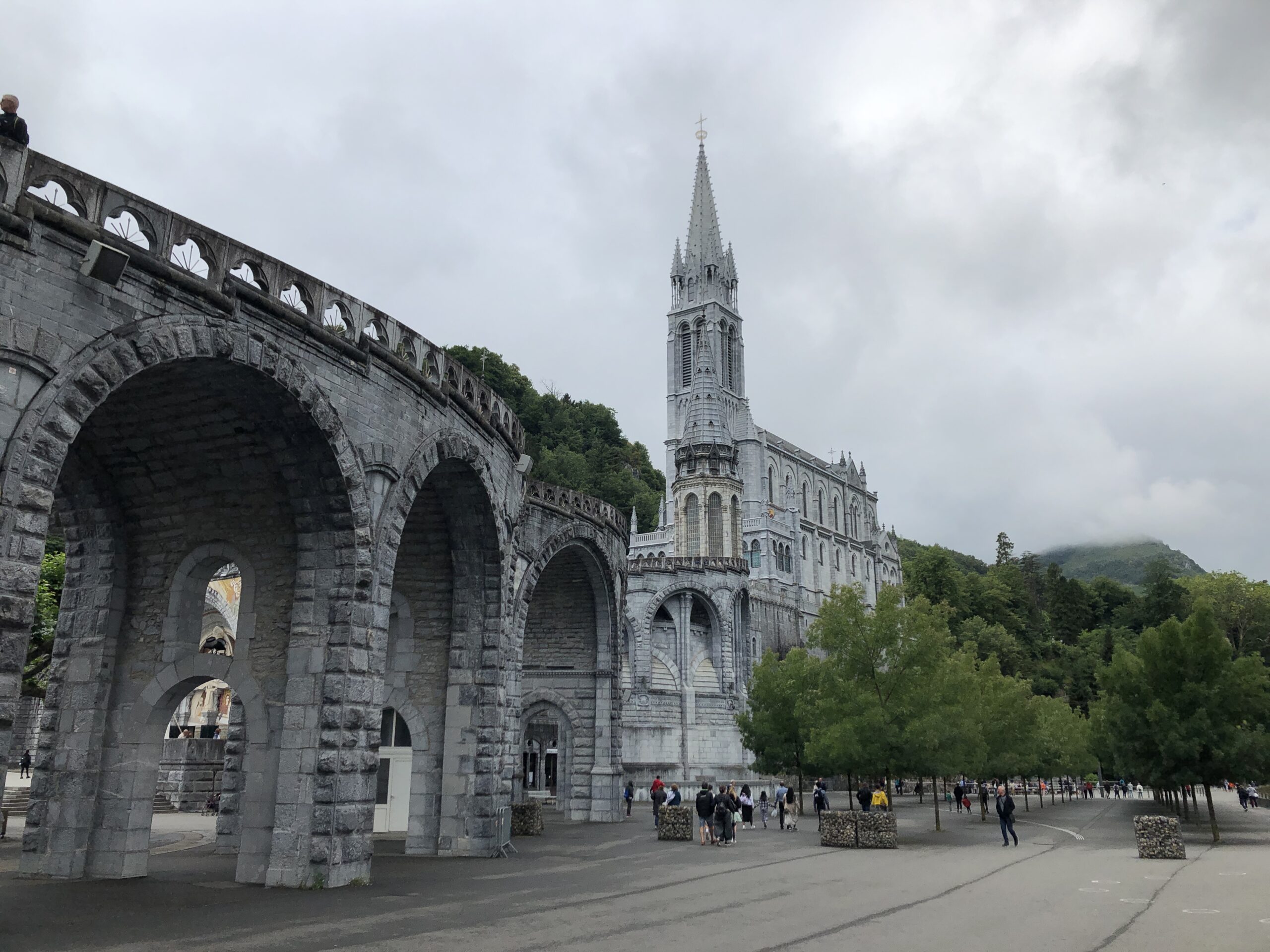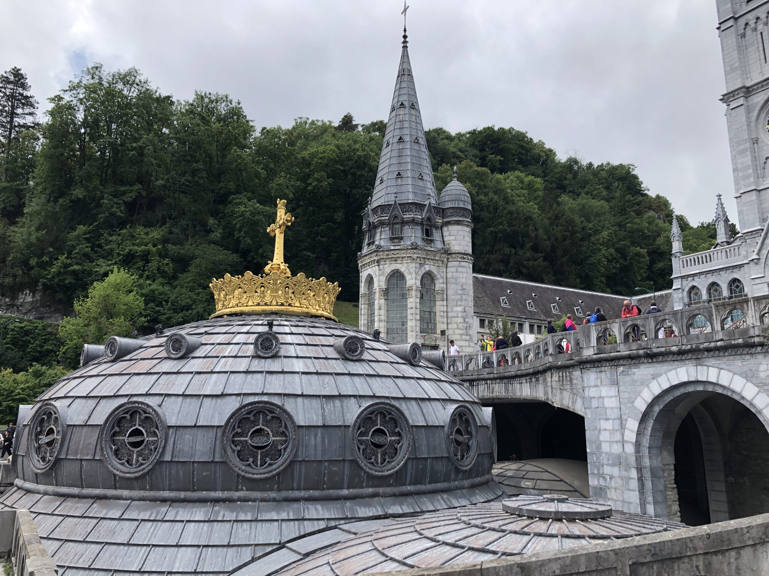 I palazzi del centro città sono elegantissimi, hanno facciate ricche di stucchi e grandi finestre che affacciano su strette strade invase da pellegrini. Il Gave de Pau divide la città in due ed i piccoli ponti in ferro che lo attraversano, mostrano un paesaggio ricco di vegetazione e casette dal sapore retrò che affacciano direttamente su letto del fiume. Nonostante la grande confusione di oggetti e persone, Lourdes ha un’atmosfera molto particolare ed affascinante che mi ricorda in qualche modo quelle città che fanno da sfondo ai film degli anni Venti.