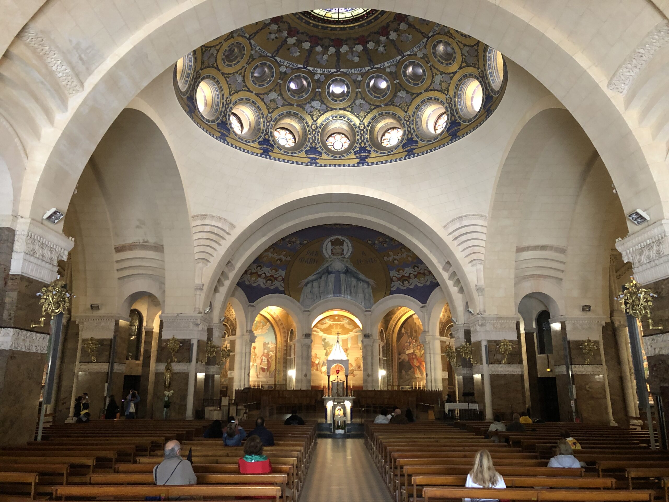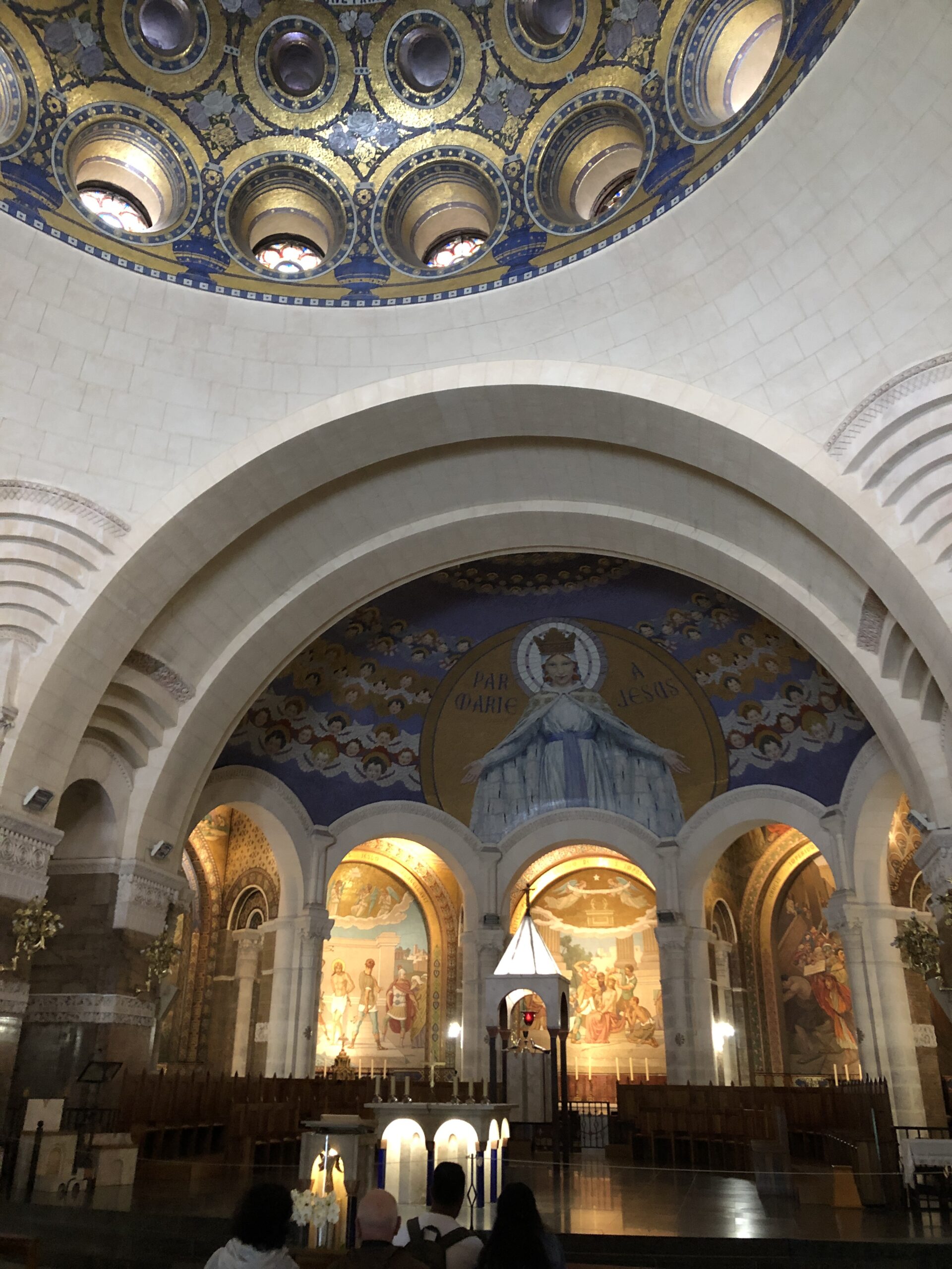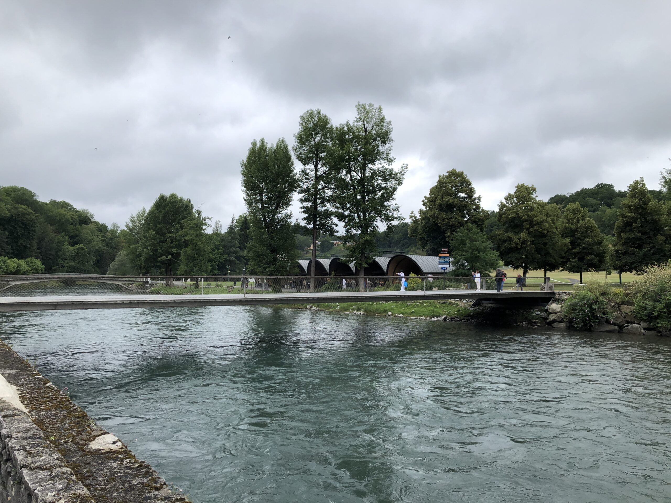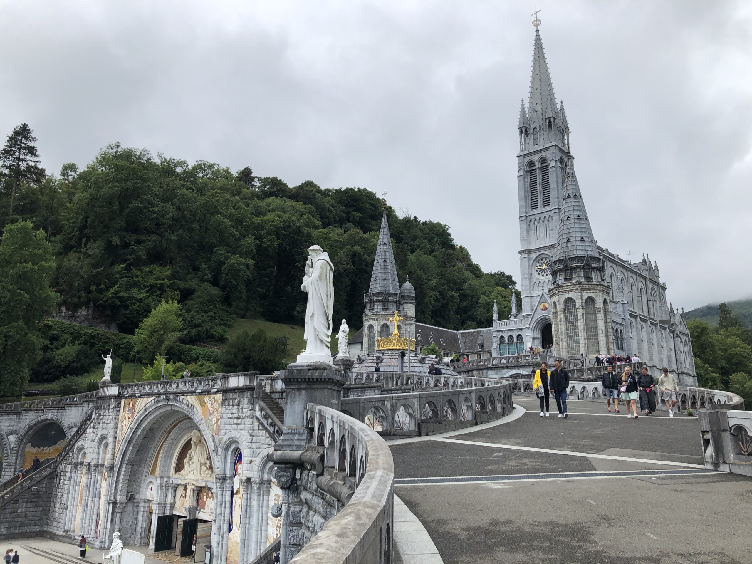 I palazzi del centro città sono elegantissimi, hanno facciate ricche di stucchi e grandi finestre che affacciano su strette strade invase da pellegrini. Il Gave de Pau divide la città in due ed i piccoli ponti in ferro che lo attraversano, mostrano un paesaggio ricco di vegetazione e casette dal sapore retrò che affacciano direttamente su letto del fiume. Nonostante la grande confusione di oggetti e persone, Lourdes ha un’atmosfera molto particolare ed affascinante che mi ricorda in qualche modo quelle città che fanno da sfondo ai film degli anni Venti.