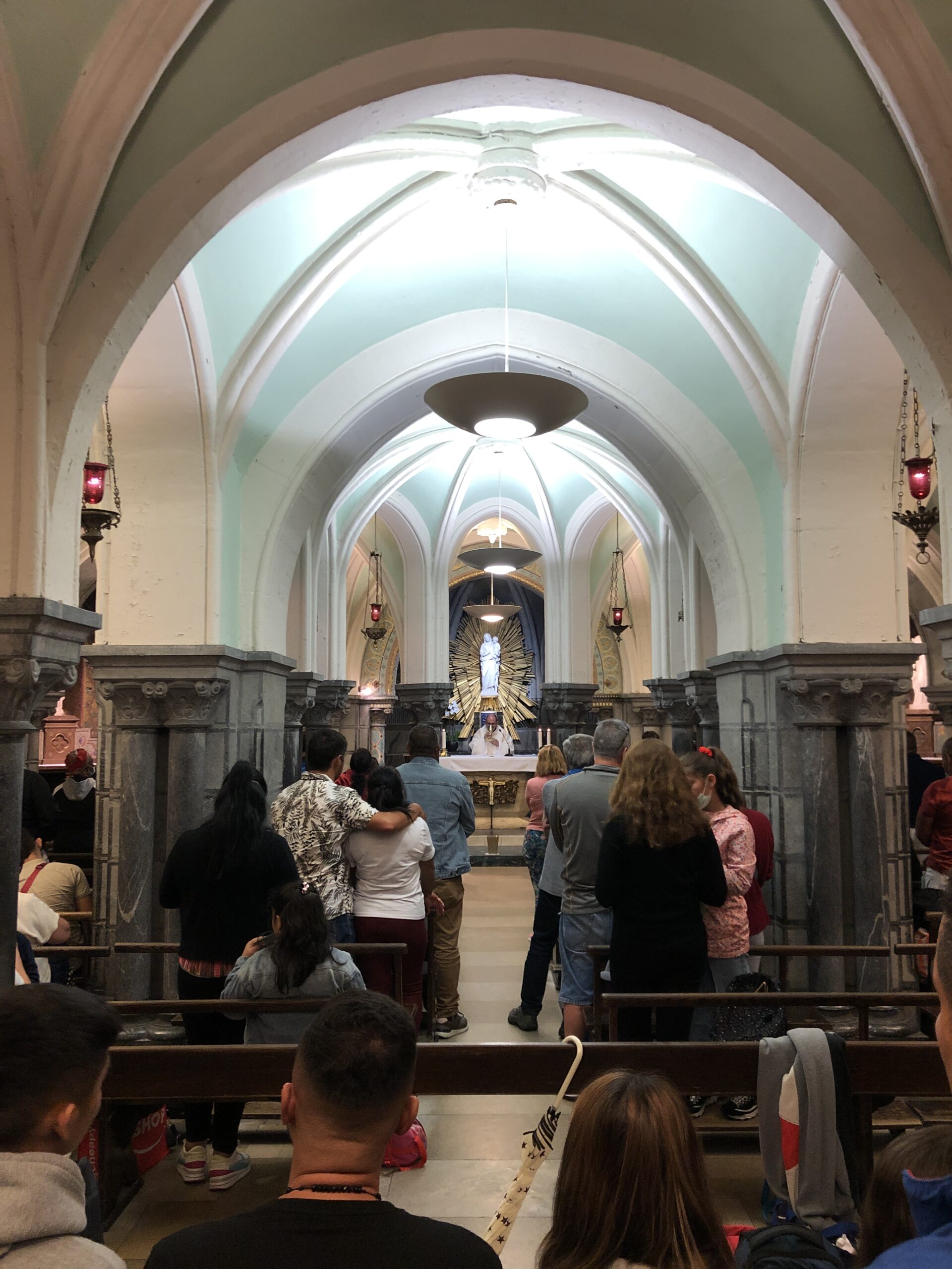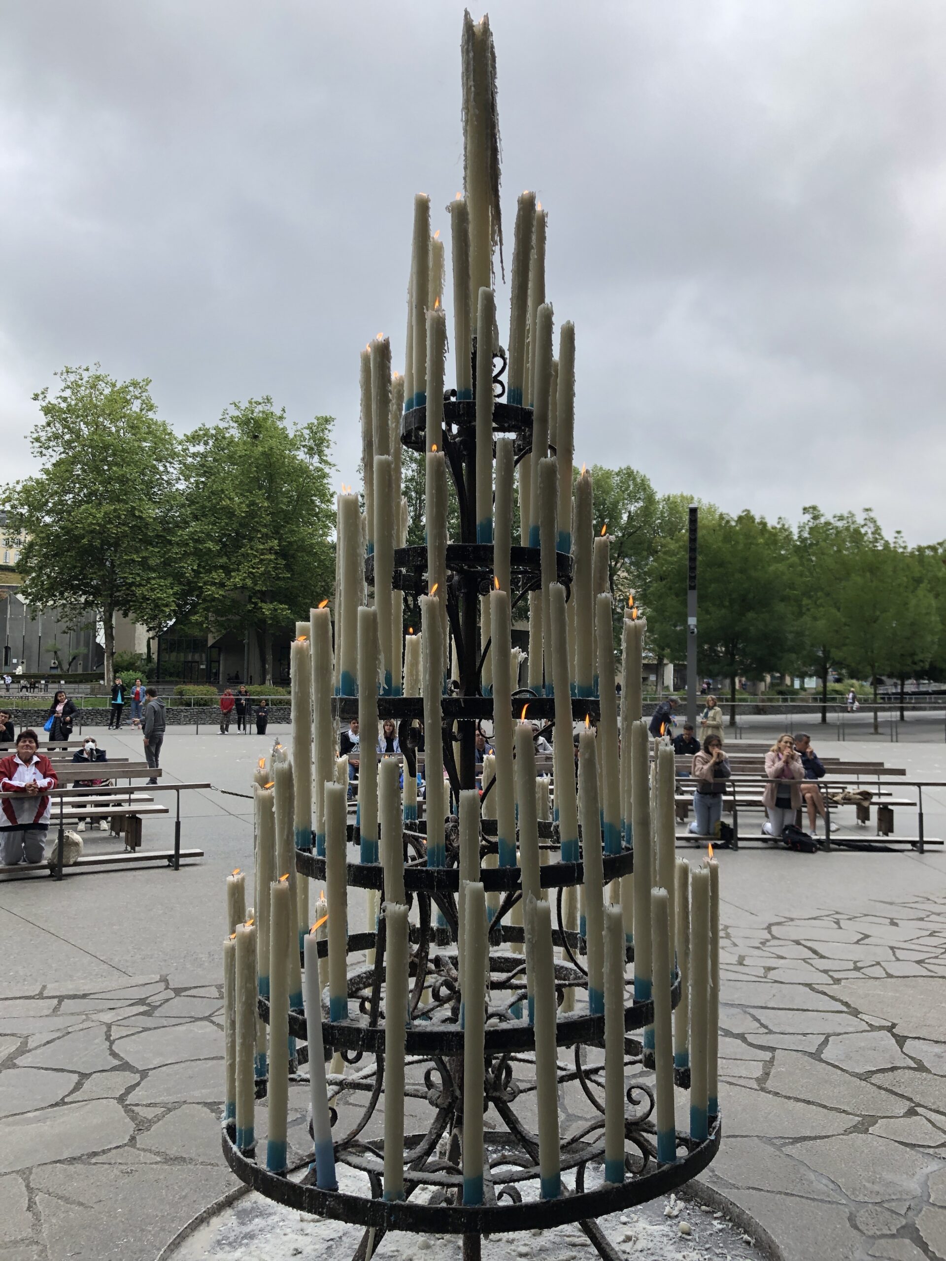 Tutto il parco infonde una gran pace, devo ammetterlo. All’interno dell’immensa chiesa, centinaia di fedeli con le mani unite al petto e gli occhi chiusi, affidano i pensieri a statue colorate. Il profumo d’incenso invade le navate e le piccole cappelle laterali. Le candele, con la loro luce tremolante, fanno vibrare tutto l’ambiente. I giardini verdi sono come oasi di pace ed il fiume gonfio e cristallino, scorre lento ed indisturbato tra le comitive di fedeli.