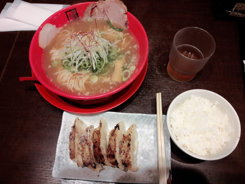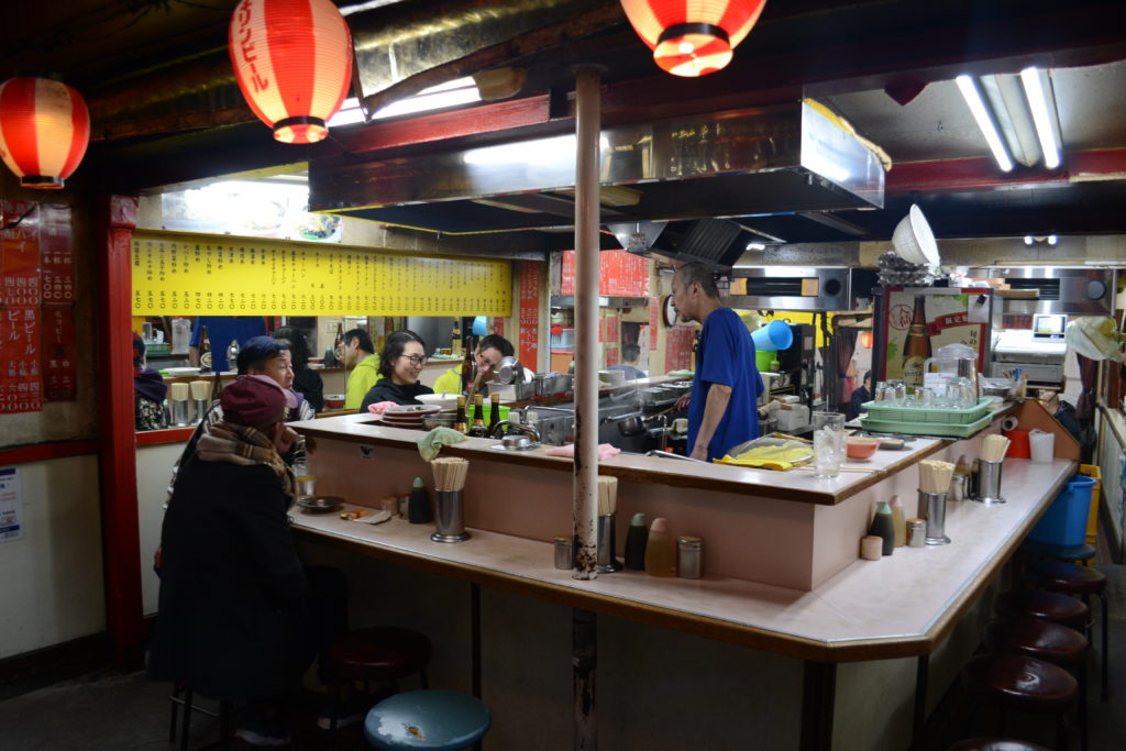 Anzitutto ci sono solo ragazzi, la cucina è proprio al centro della sala e potete decidere se mangiare davanti a loro seduti al bancone o al tavolino. Nel locale si può fumare ma non c’è assolutamente puzza di fumo. La birra alla spina è molto buona e se volete del tè freddo viene offerto insieme all’acqua. La cosa strana è che per scolare gli spaghetti il cuoco li prende con un grande colino da dentro l’enorme pentolone e da un colpo secco facendo così scolare tutta l’acqua direttamente a terra. Ahahah roba da manicomio, eppure era tutto pulito. Con circa 8 euro vi viene servito il ramen con del riso a parte e vi consiglio di prendere anche i ravioli alla piastra sono fenomenali.