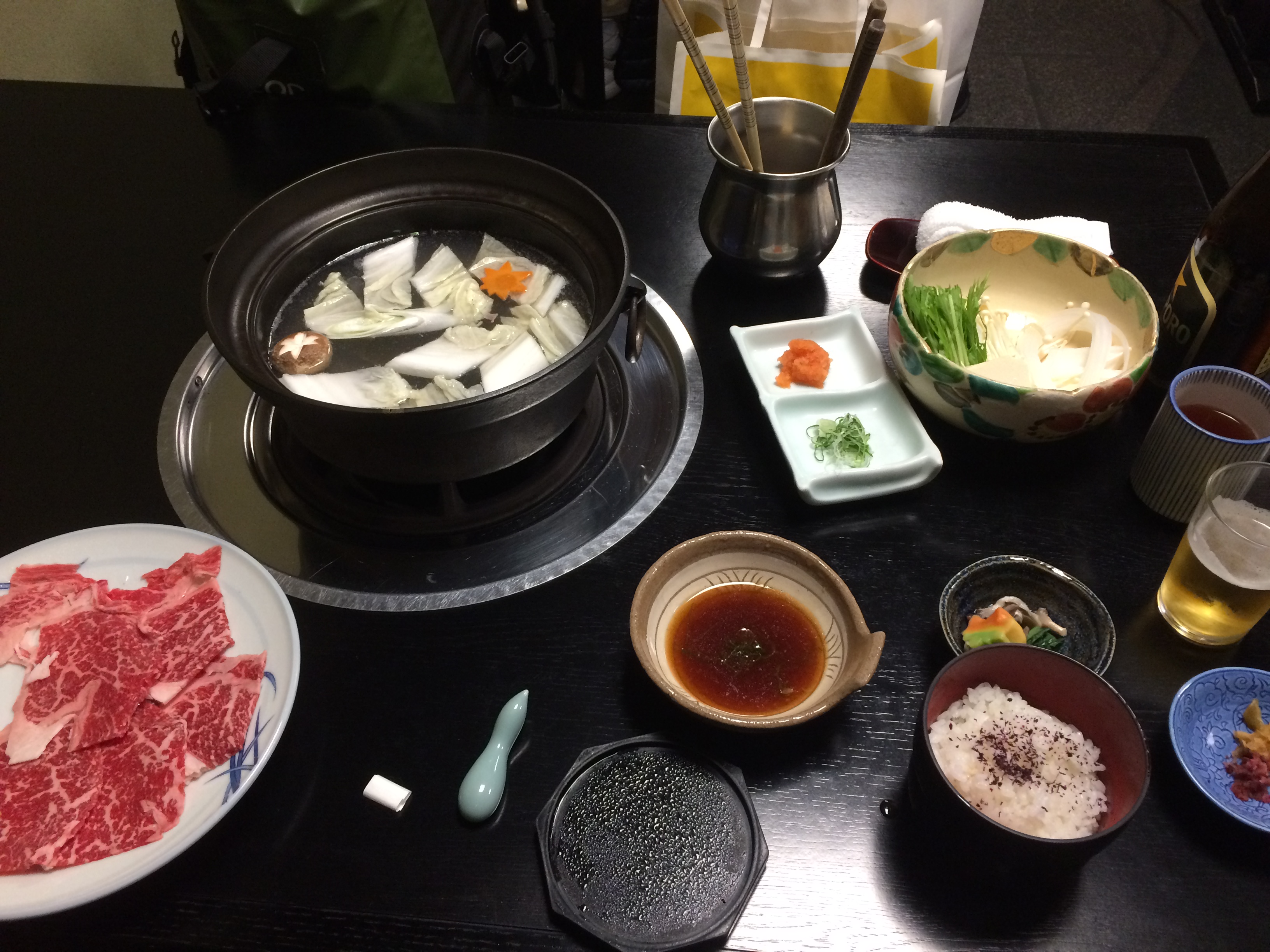 Un’altro modo di cucinare la carne è lo shabu shabu. Ti viene servita della carne cruda tagliata in fette molto sottili, una pentola con dell’acqua e molte verdure e funghi e spezie. Mentre l’acqua bolle insieme alle verdure e tutto il resto tu puoi fare conversazione con i tuoi commensali. E’ un po’ questo il senso, la condivisione. Praticamente è come cucinare al tavolo. quando l’acqua è abbastanza calda prendi la carne con le bacchette e la agiti tre o quattro volte nella pentola sino a che non si cuoce. Quindi la intingi nella soia e la mangi in un sol boccone. Se siete in compagnia è una cosa simpatica da poter provare, ma non aspettatevi di leccarsi i baffi perché, infondo, non è altro che carne lessata.