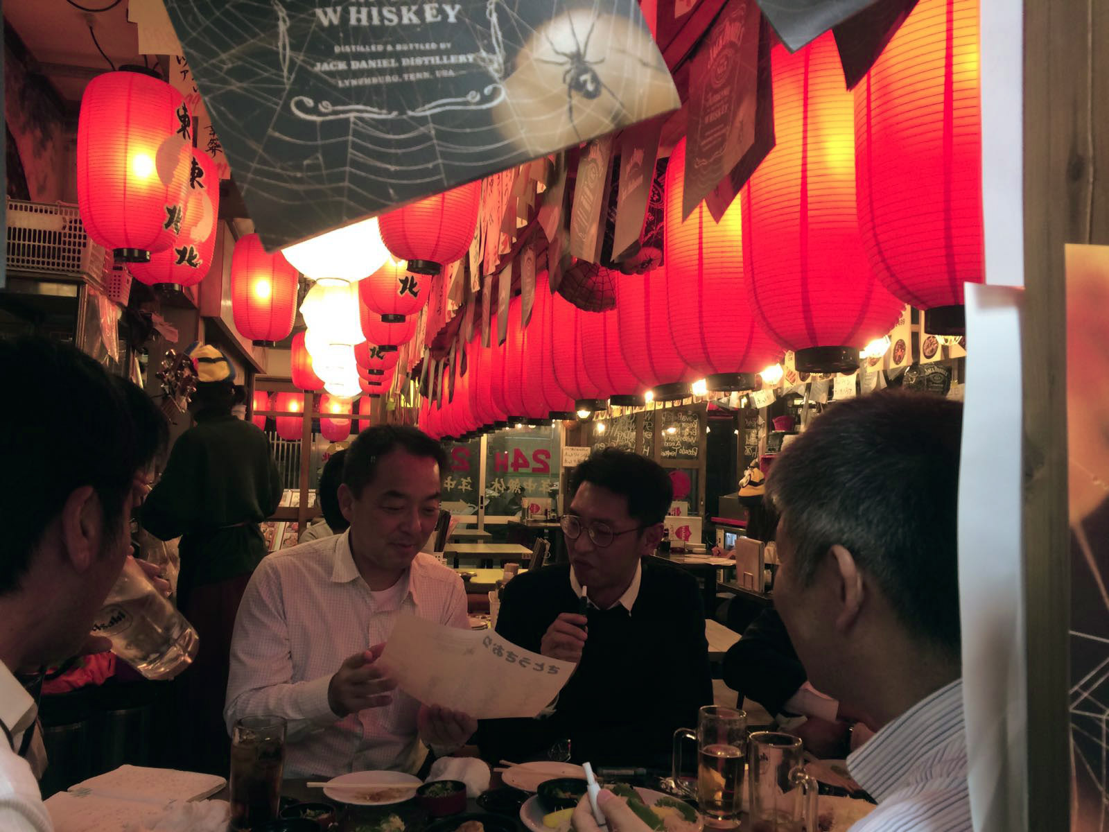 A Ueno vicino la stazione c’è un ristorante sempre affollatissimo ‘GyuMaru’. All’interno c’è aria di festa, il locale è pieno zeppo di laterne rosse che pendono dal soffitto, qualcuno suona la chitarra, uomini in giacca e cravatta bevono come spugne e il cibo te lo cucini su delle piccole griglie roventi al centro del tavolo. Puoi fumare e se ti va puoi anche metterti a cantare a squarcia gola, qualcuno ti seguirà sicuramente. Dimenticavo, ogni volta che qualcuno entra o esce dal locale si grida! Diciamo che è un posto informale e non molto costoso dove passare una serata.Vi consiglio un piatto di spaghetti piccanti saltati con verdure e gamberi.