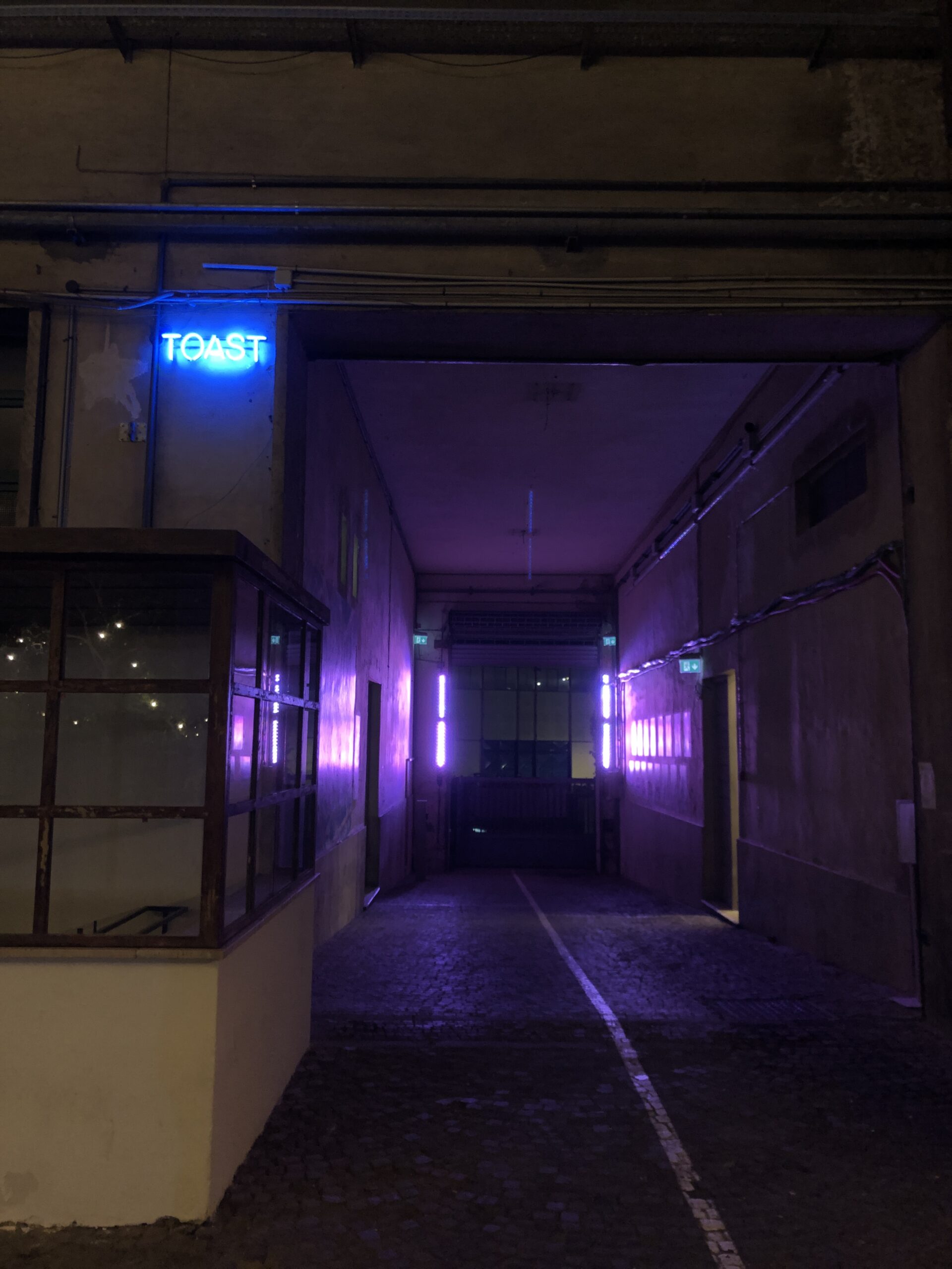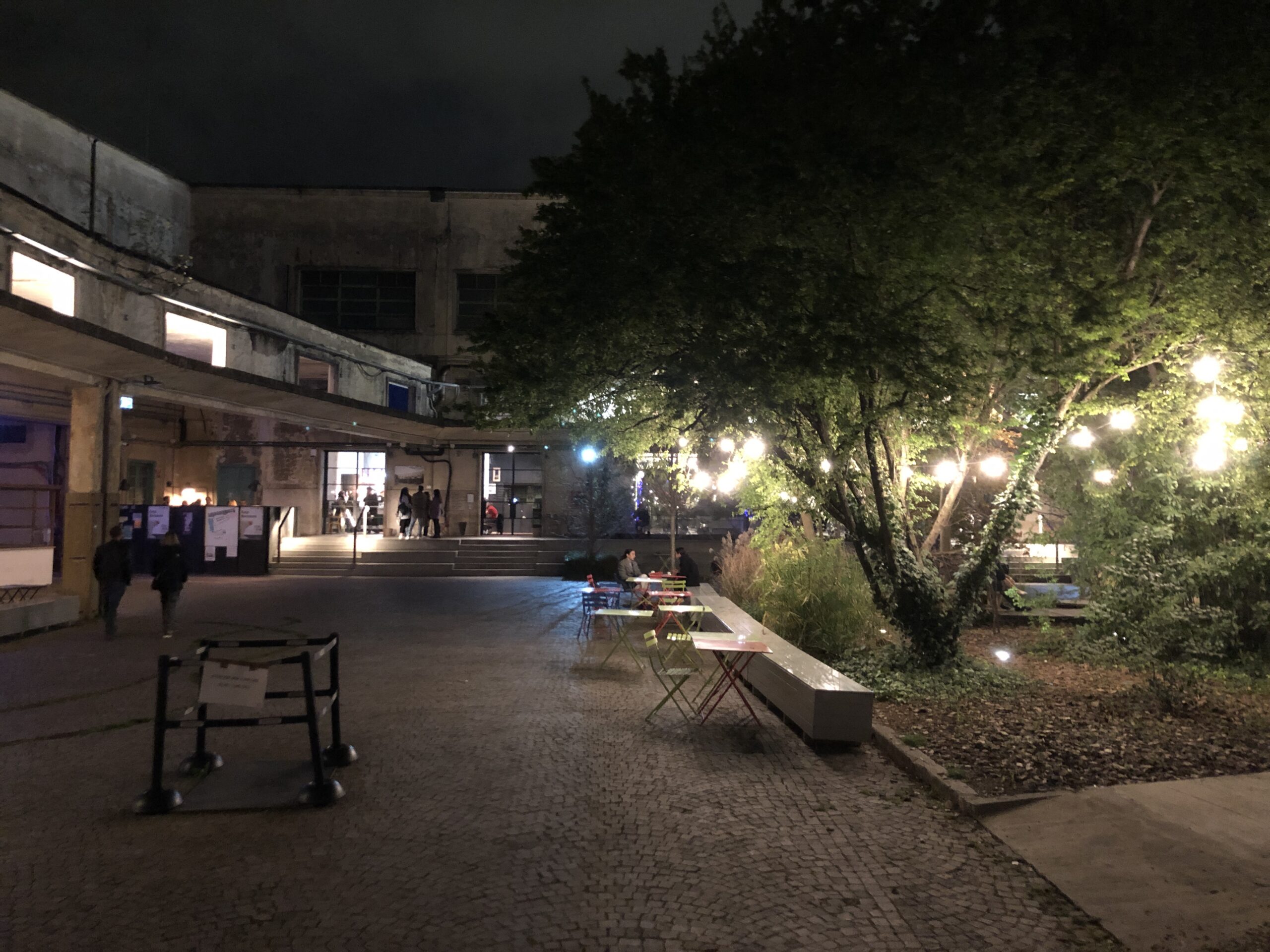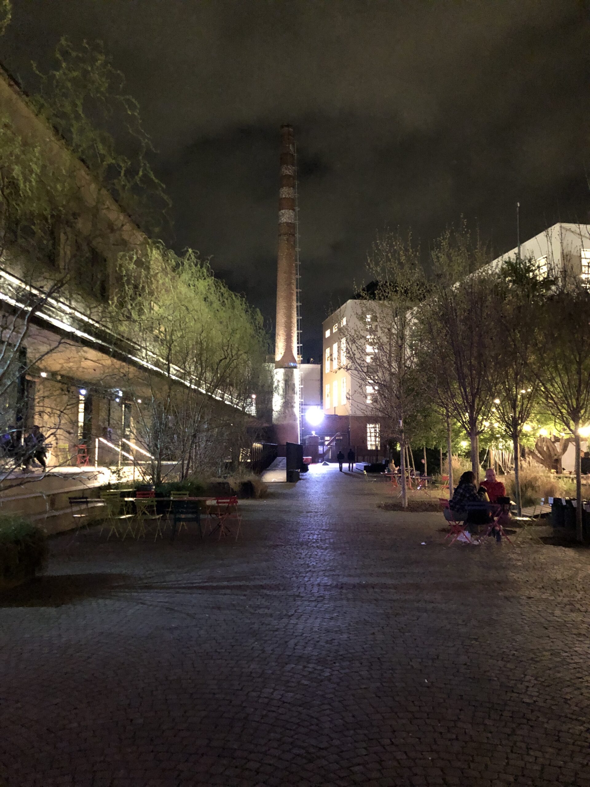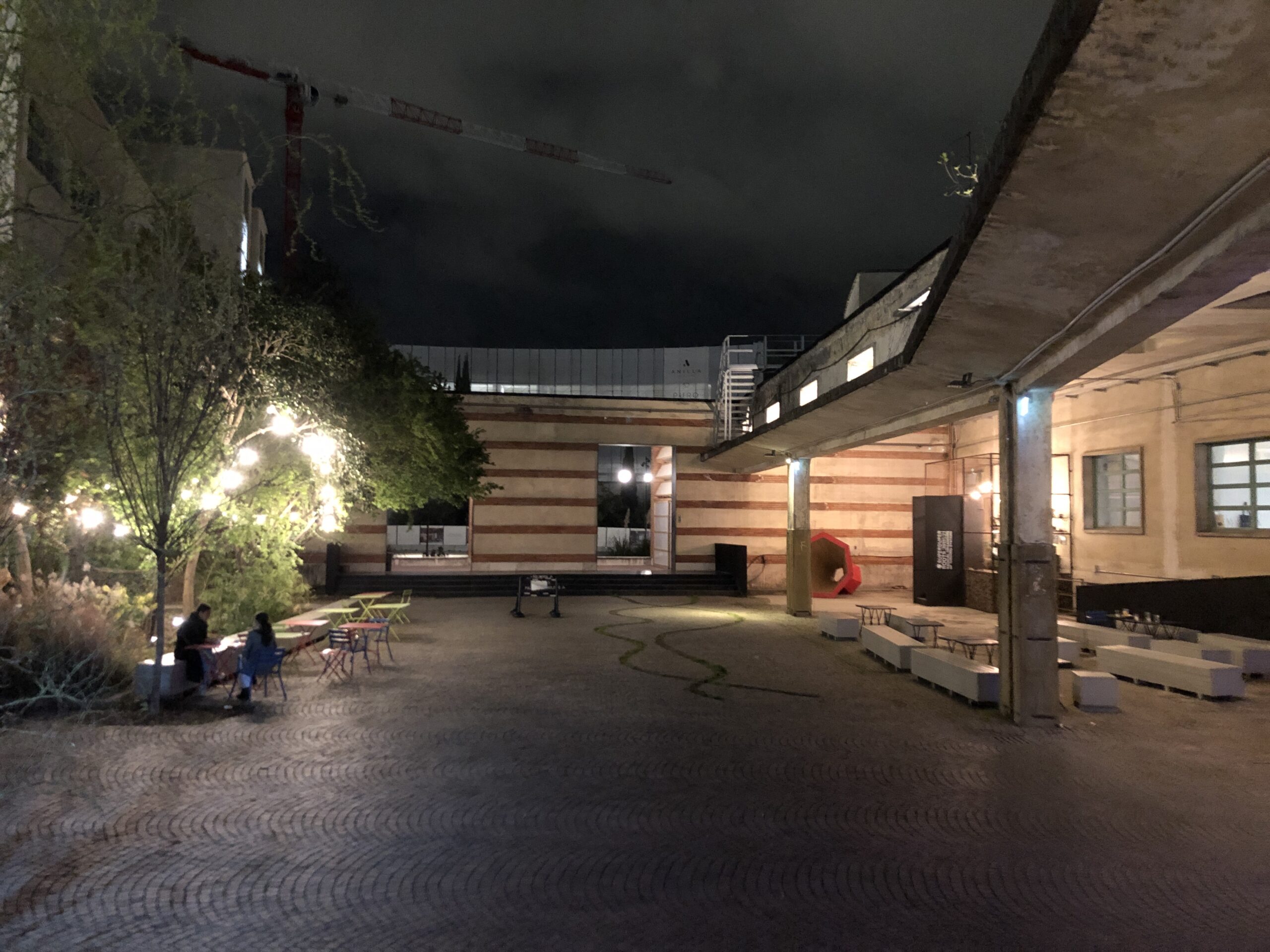 Immaginate perciò un enorme complesso edilizio risalente agli anni Trenta, squadrato, dalle linee pulite come l’architettura razionalista impone, con una vecchia ciminiera in mattoni e le finestre in ferro che affacciano su ampi piazzali deserti. Adesso spruzzate un po’ di colore, piantate alberi, posizionate luci al neon e suddividete gli spazi tra laboratori di artisti, sale teatrali, locali dove fermarsi dalla colazione al dopocena, luoghi in cui sperimentare e creare la propria arte.