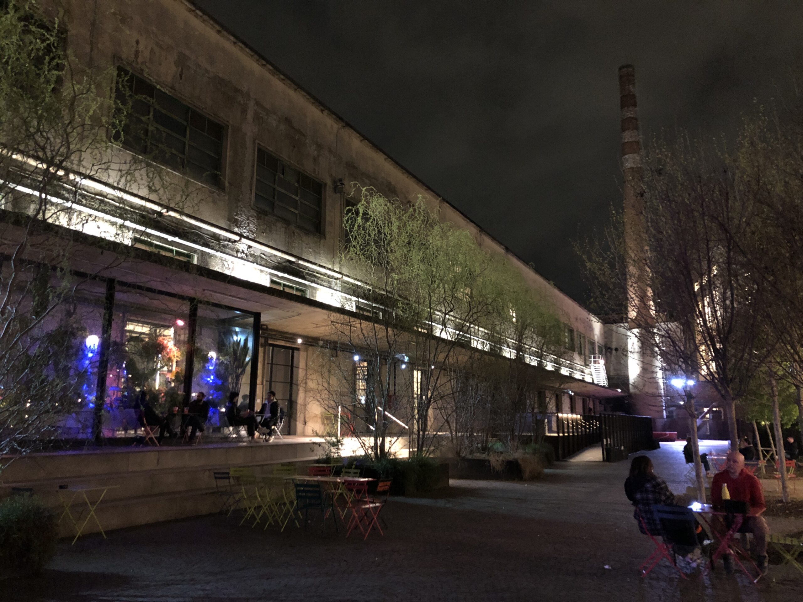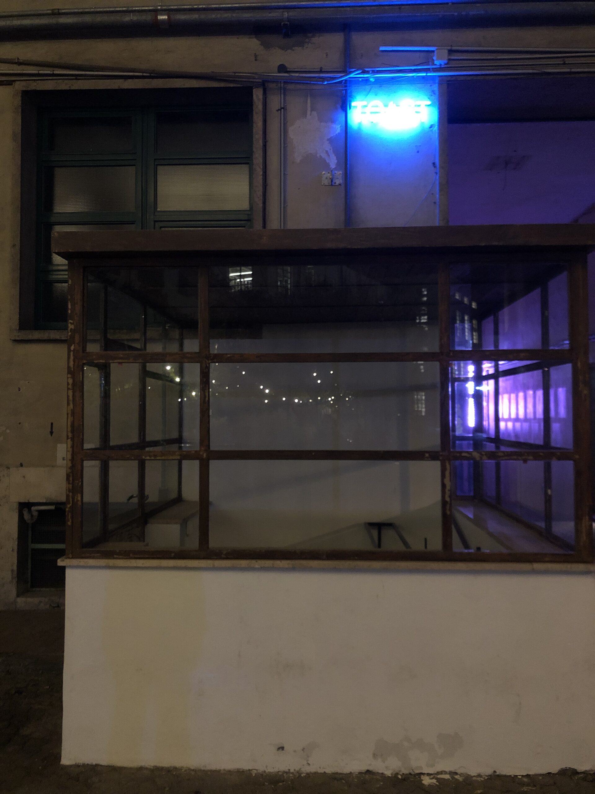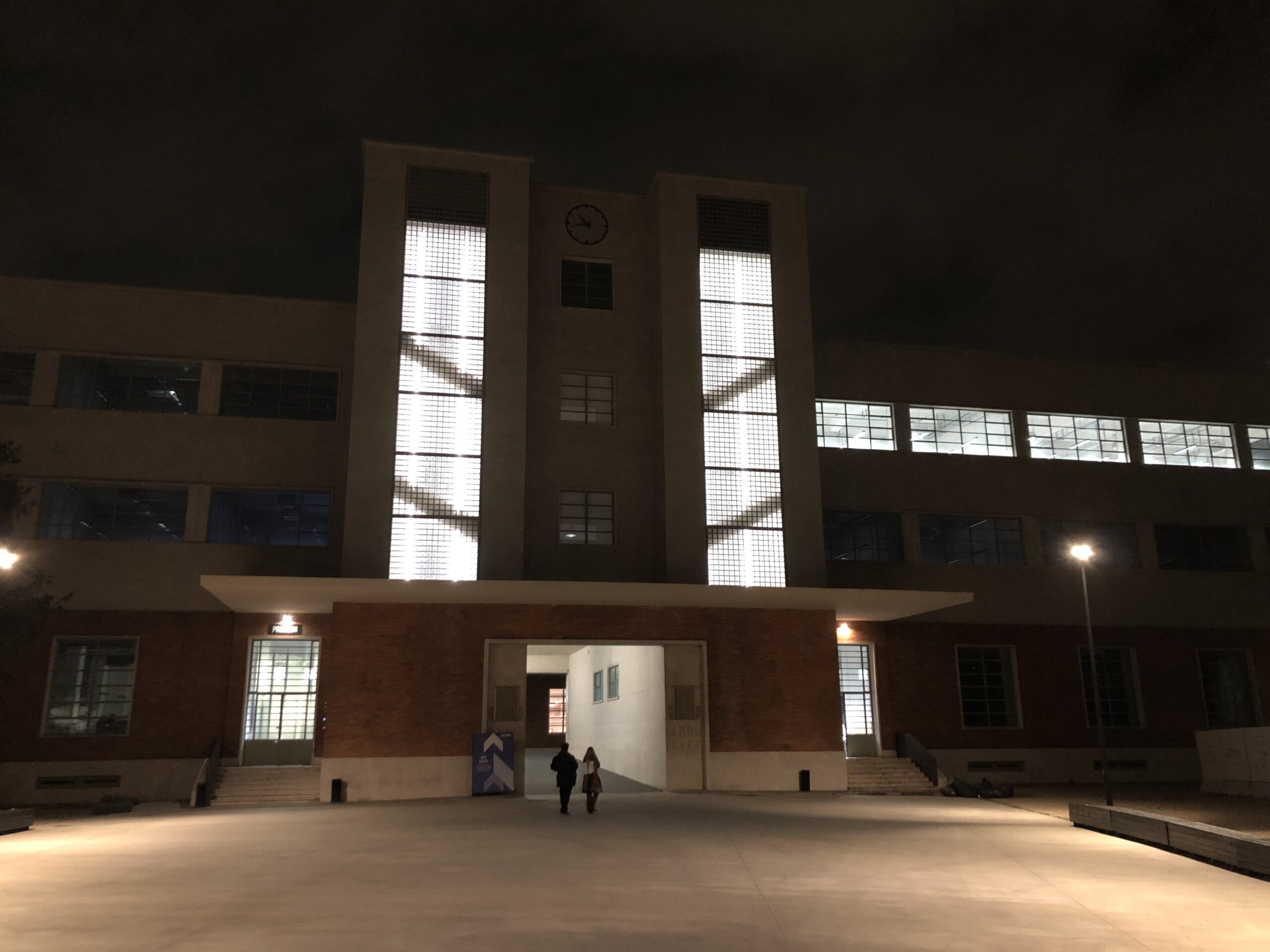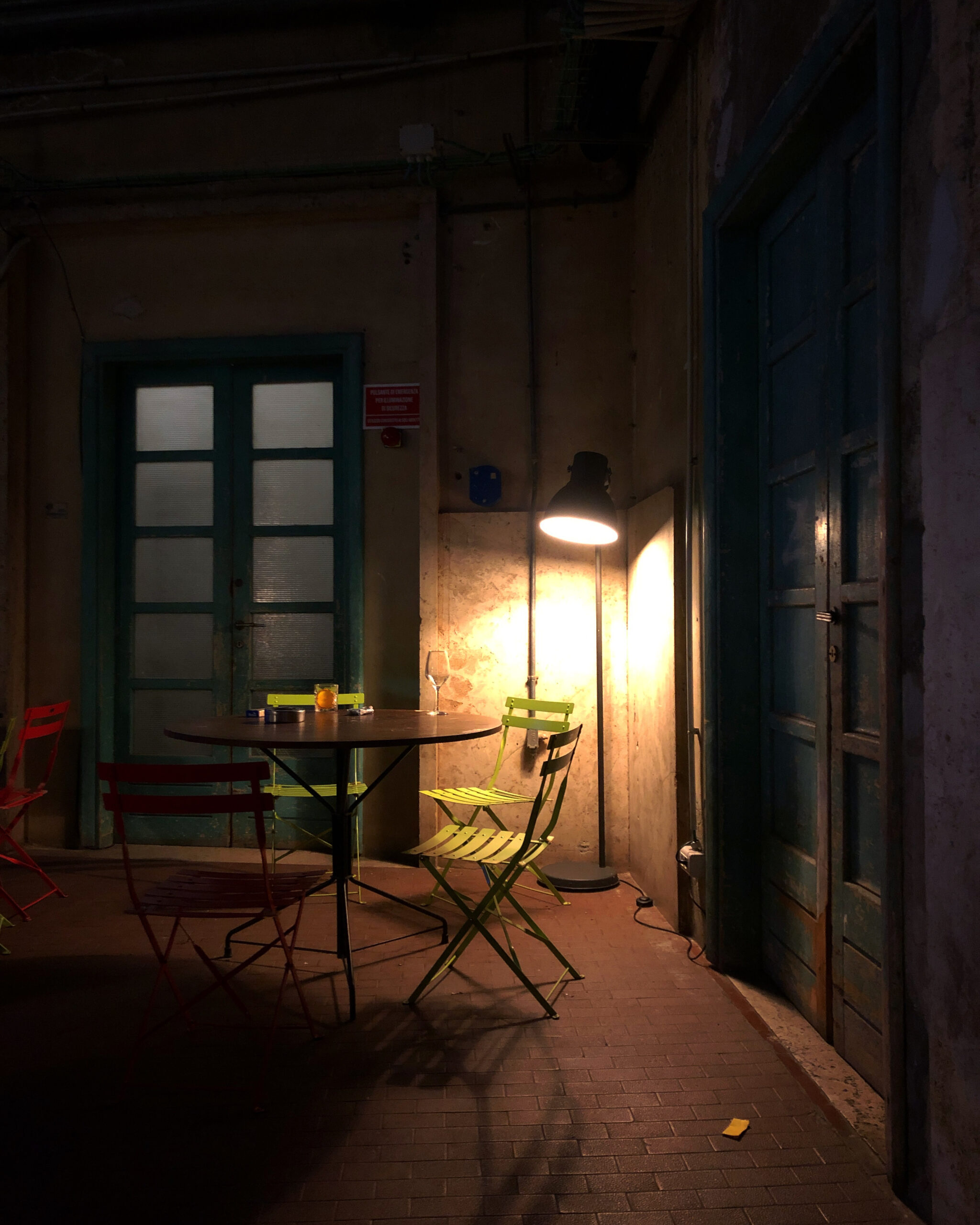 Immaginate perciò un enorme complesso edilizio risalente agli anni Trenta, squadrato, dalle linee pulite come l’architettura razionalista impone, con una vecchia ciminiera in mattoni e le finestre in ferro che affacciano su ampi piazzali deserti. Adesso spruzzate un po’ di colore, piantate alberi, posizionate luci al neon e suddividete gli spazi tra laboratori di artisti, sale teatrali, locali dove fermarsi dalla colazione al dopocena, luoghi in cui sperimentare e creare la propria arte.