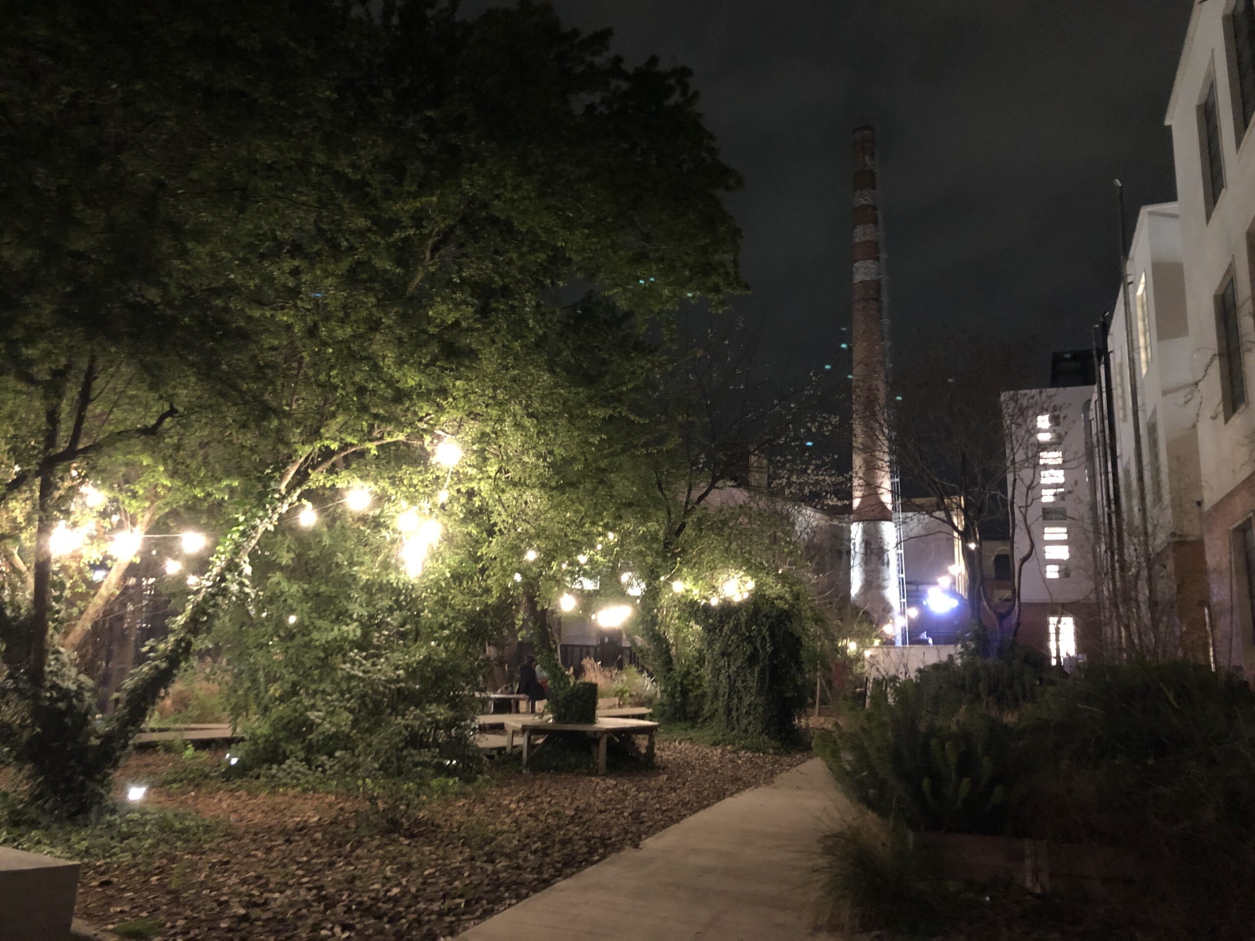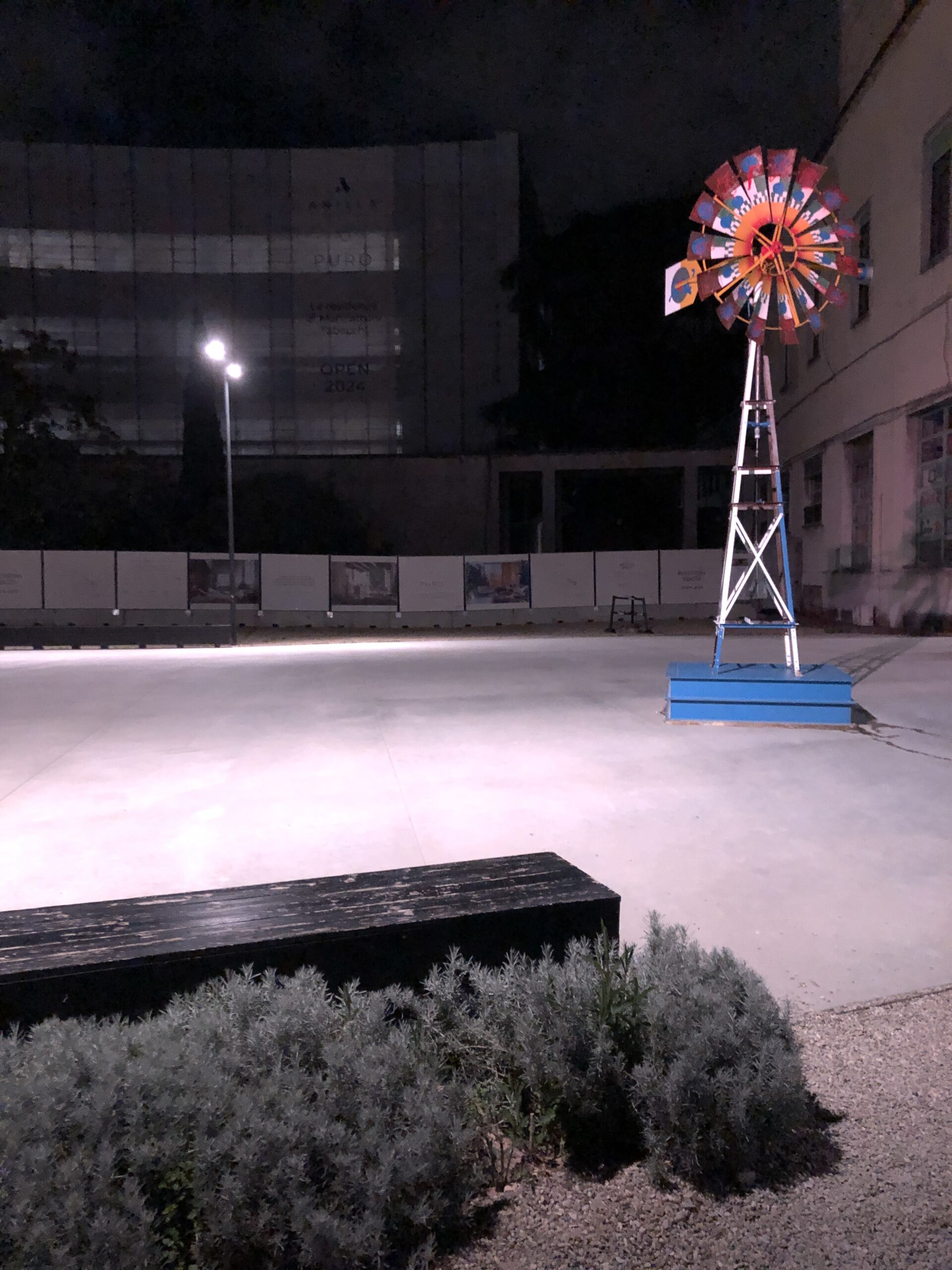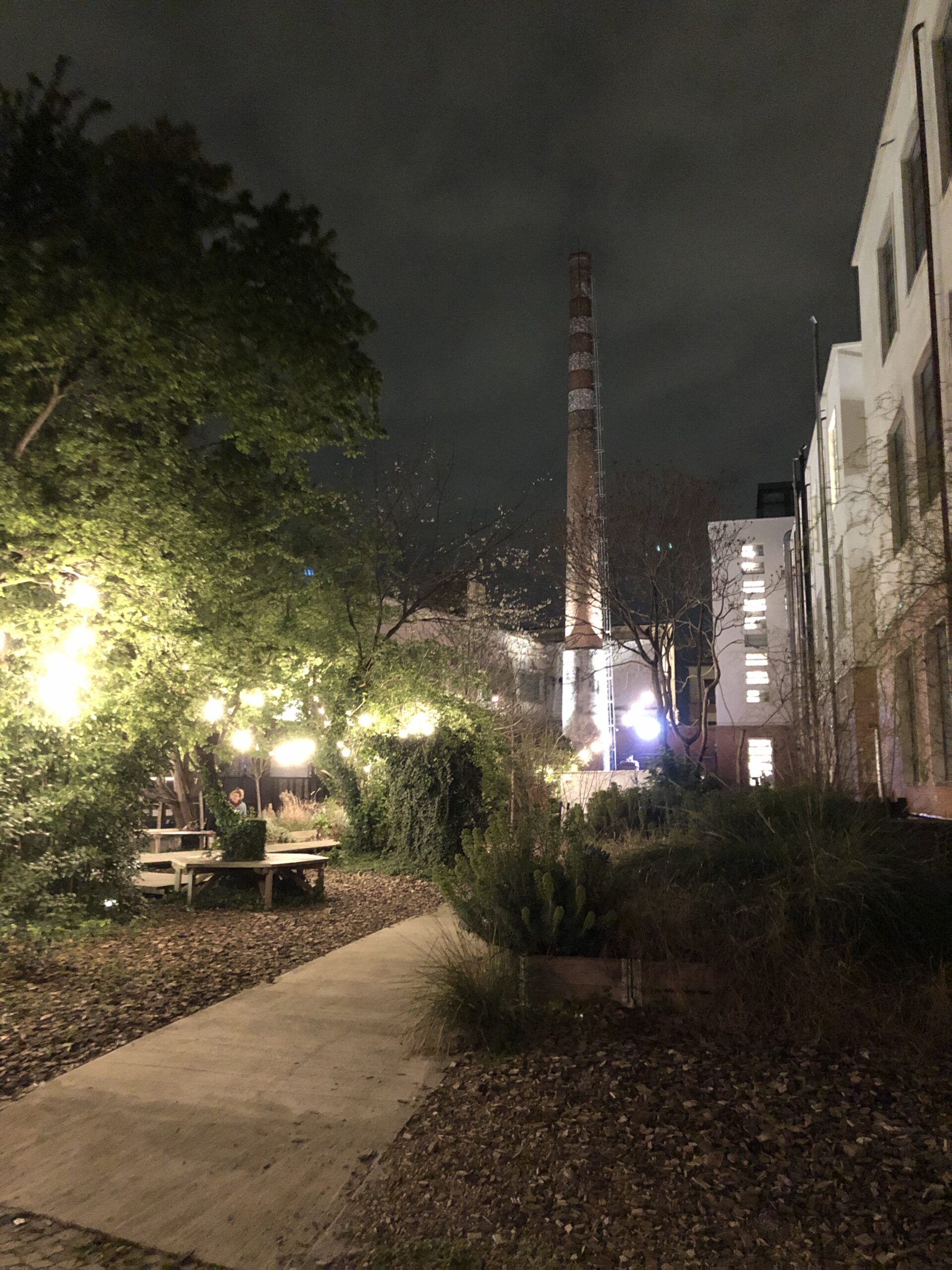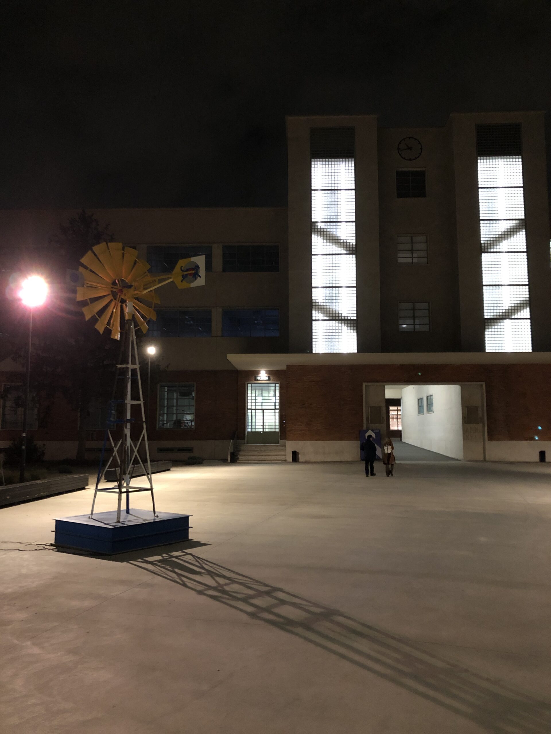 Immaginate perciò un enorme complesso edilizio risalente agli anni Trenta, squadrato, dalle linee pulite come l’architettura razionalista impone, con una vecchia ciminiera in mattoni e le finestre in ferro che affacciano su ampi piazzali deserti. Adesso spruzzate un po’ di colore, piantate alberi, posizionate luci al neon e suddividete gli spazi tra laboratori di artisti, sale teatrali, locali dove fermarsi dalla colazione al dopocena, luoghi in cui sperimentare e creare la propria arte.