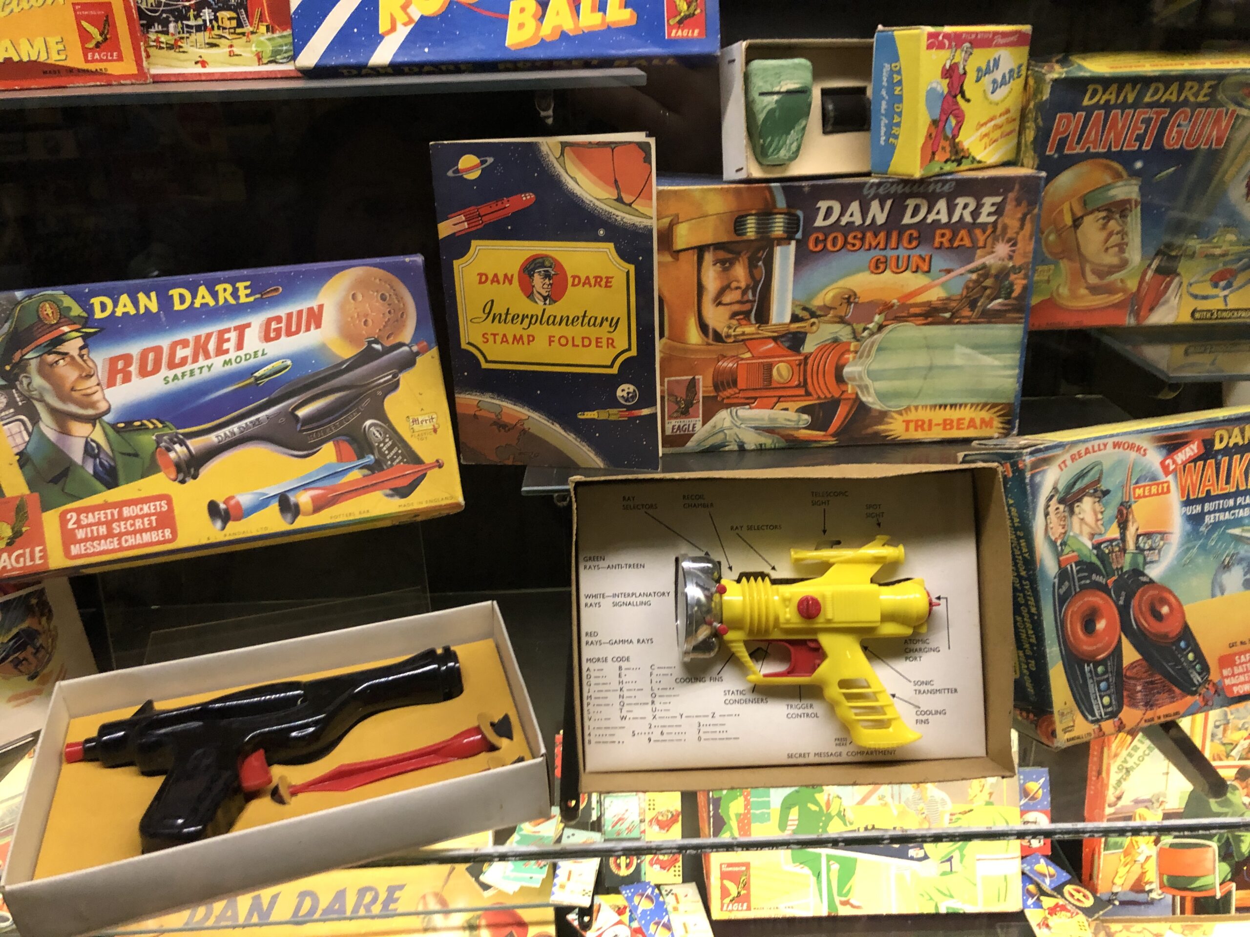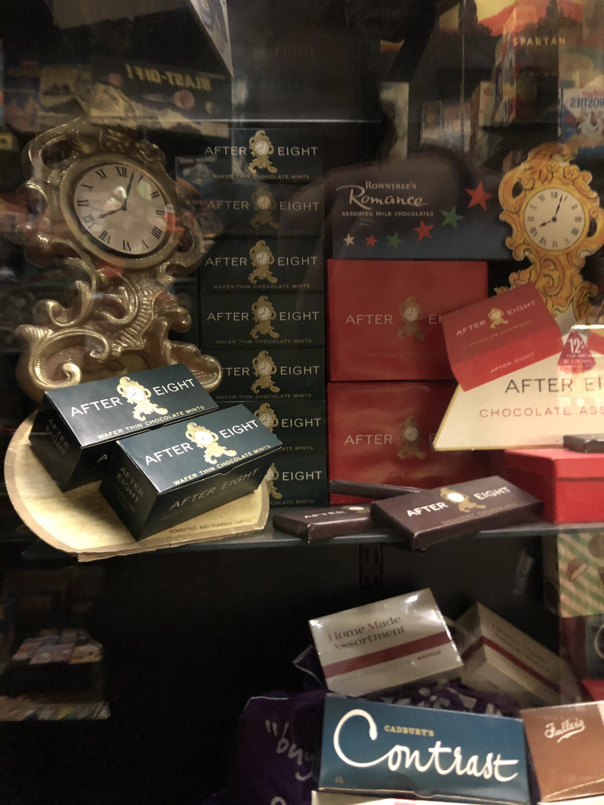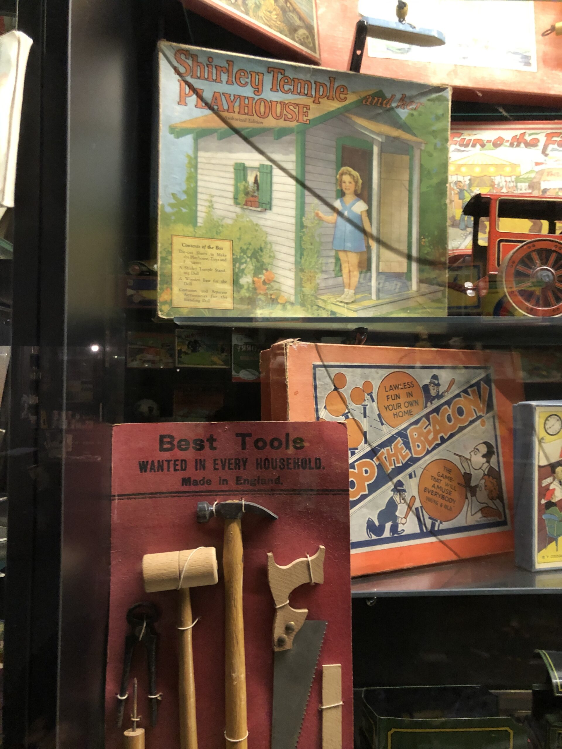 Mi stupisco nel vedere che ci sono prodotti di una longevità strabiliante, come cereali, cioccolatini e saponette. Marchi che non avevo idea fossero così anziani. Ci sono così tante cose sulle quali poggiare lo sguardo che passare in rassegna ogni singola vetrina diventa come un lavoro, e anche piuttosto stancante. Se non stai attento ti sfugge il giocattolo con Shirley Temple sulla confezione o le prime versioni del gioco dell’oca.