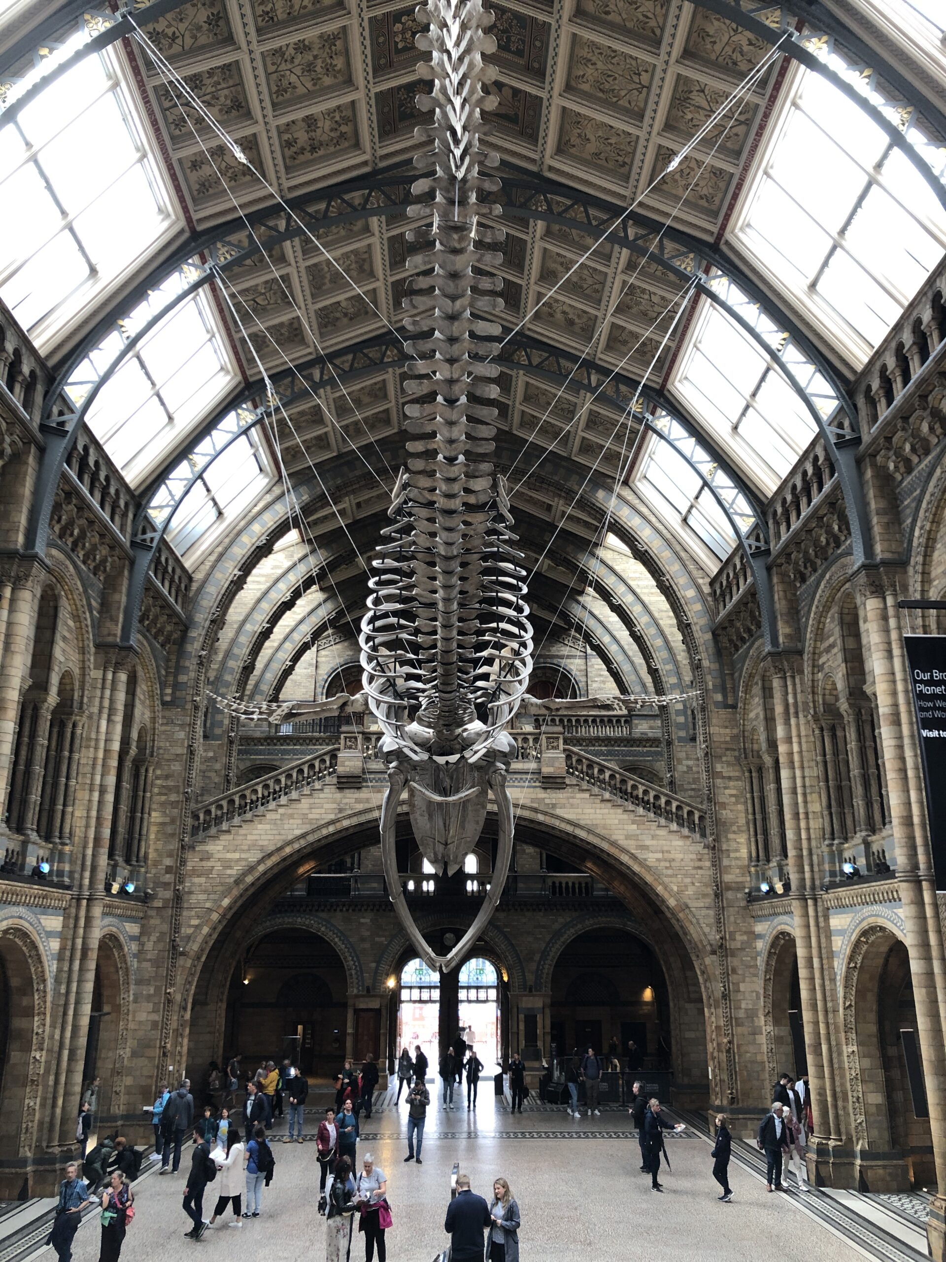 La prima sala è magnificente, la riconosco subito, è stata teatro di molteplici pellicole cinematografiche tra le quali le più conosciute credo siano: Paddington, Poirot e The Mummy. Un enorme scheletro di balena azzurra penzola dal soffitto sulle teste dei visitatori dell’atrio centrale. La sua dimensione fa effetto e tenerezza, la stessa sensazione che provo per le teche in vetro che mi circondano, piene di scheletri di animali che purtroppo non conoscerò mai.