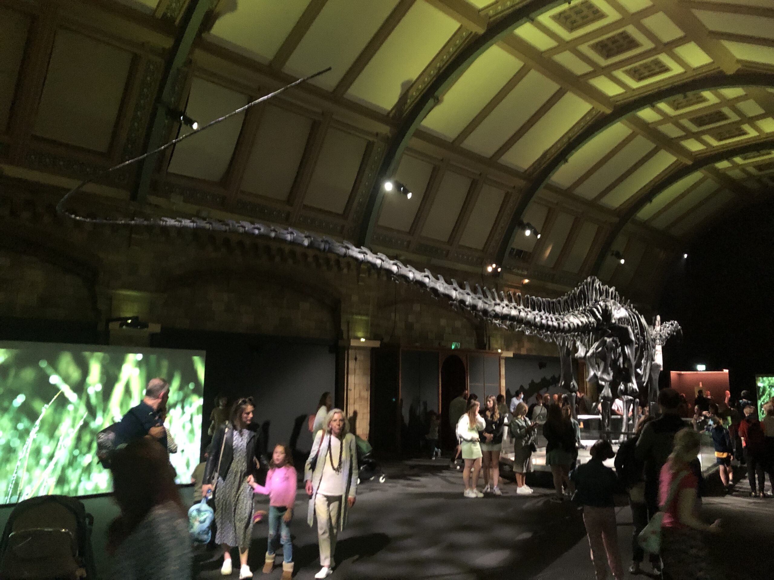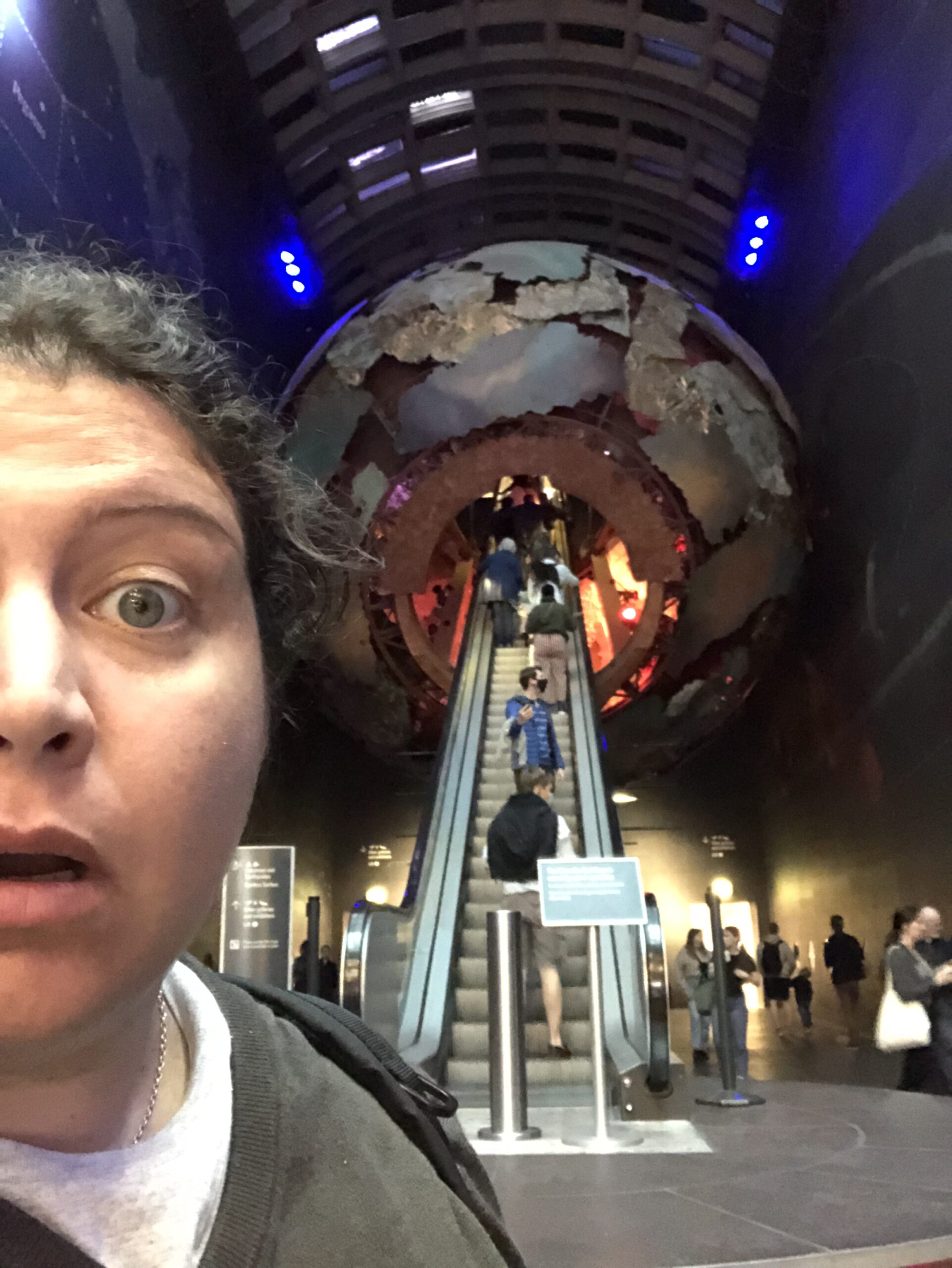 - la zona blu è dedicata agli abitanti degli oceani, alla biologia umana e ai dinosauri. I corridoi erano infestati da bambini che gridavano felici manifestando tutto il loro stupore. Centinaia di piccole ditate opacizzavano i vetri che racchiudevano le numerose copie di ossa animali esposte in alternanza a pannelli illuminati da vari colori. Interessante ma no entusiasmante.