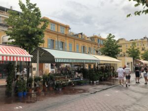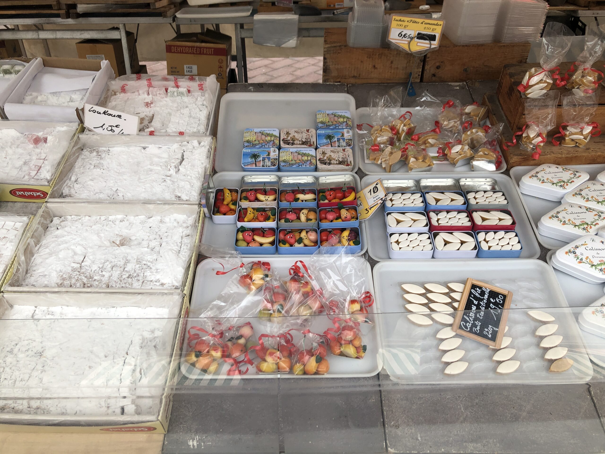 Il mercato nella parte antica è grazioso (come lo sono quasi tutti i mercati del mondo), ogni banco ha un tetto in tela a righe colorate, il che crea due lunghe strisce di tessuto sotto il quale ci si può riparare dal sole durante gli acquisti. Qui si possono trovare tutti i prodotti che ti aspetti di vedere sulle bancarelle francesi: la lavanda, il miele, le saponette, le piante aromatiche e le spezie, oli essenziali e macaron. Qui a Nizza sono in realtà biscotti ad un solo strato, ma non per questo meno buoni.