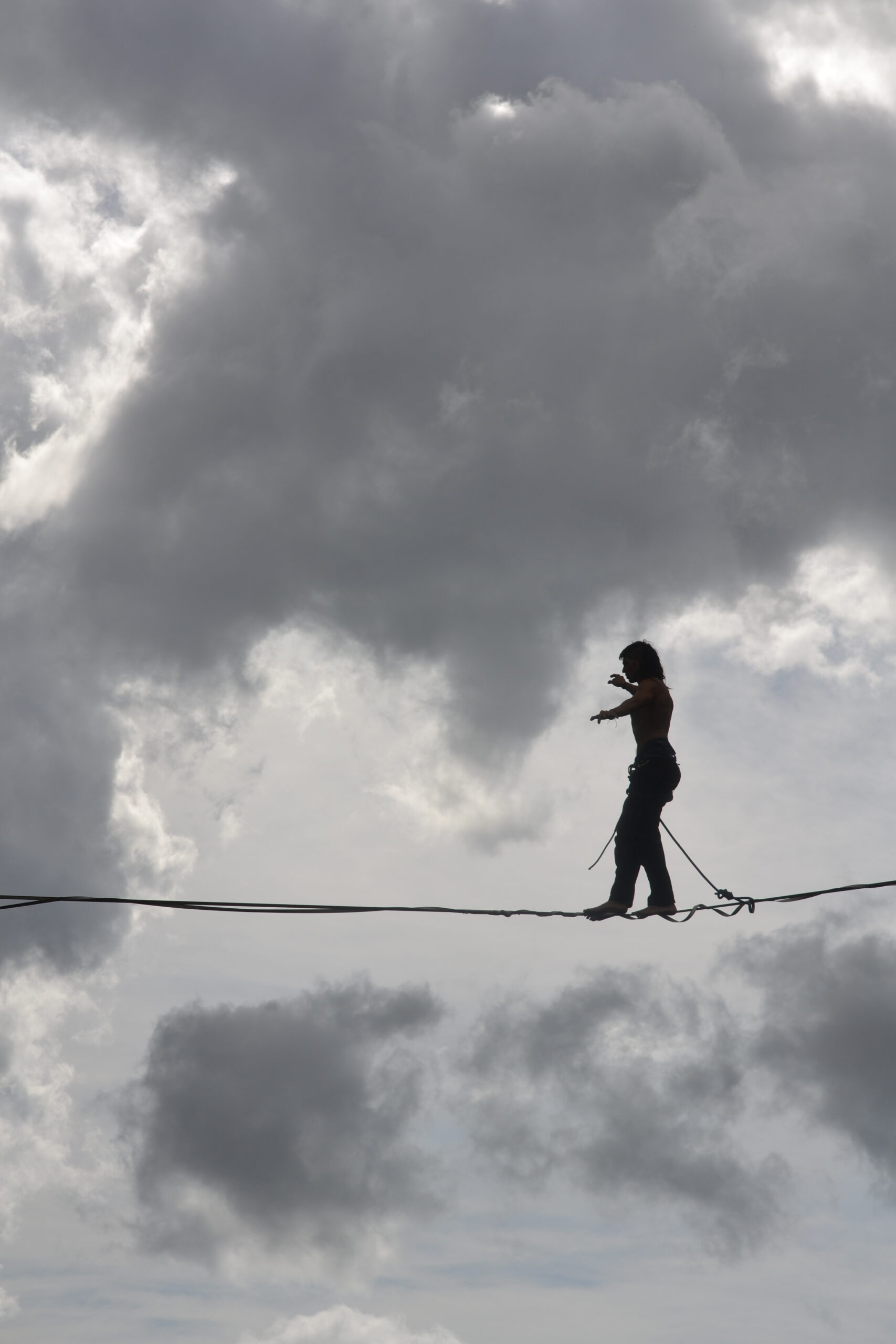 Capita che perde l’equilibrio e cade ed io ho molta più paura di lui che, come se nulla fosse successo, si aggrappa alla fune e con apparente semplicità torna in piedi con un solo salto. Roba che io quando mi allaccio le scarpe e mi alzo troppo velocemente rischio di cadere rovinosamente in terra lui invece, si rialza sfruttando il solo appoggio di 4 cm di stoffa! Assurdo. Un vero fenomeno.