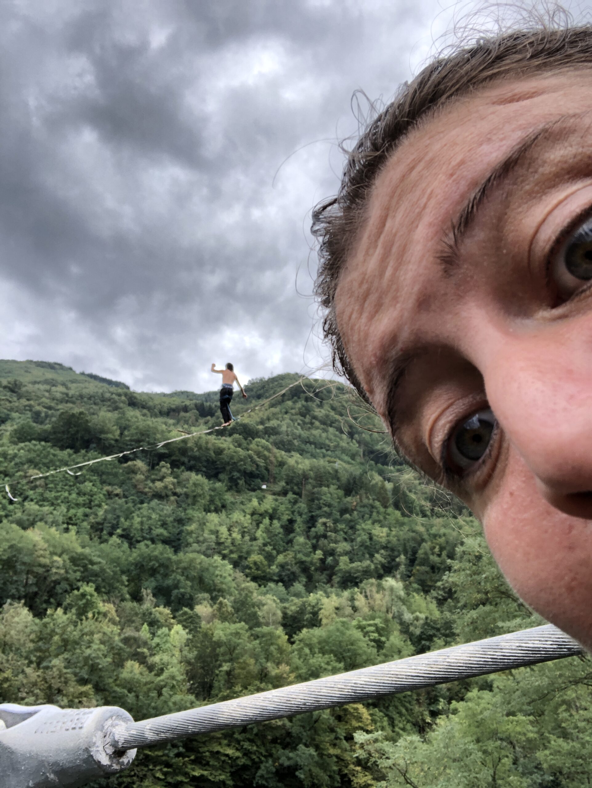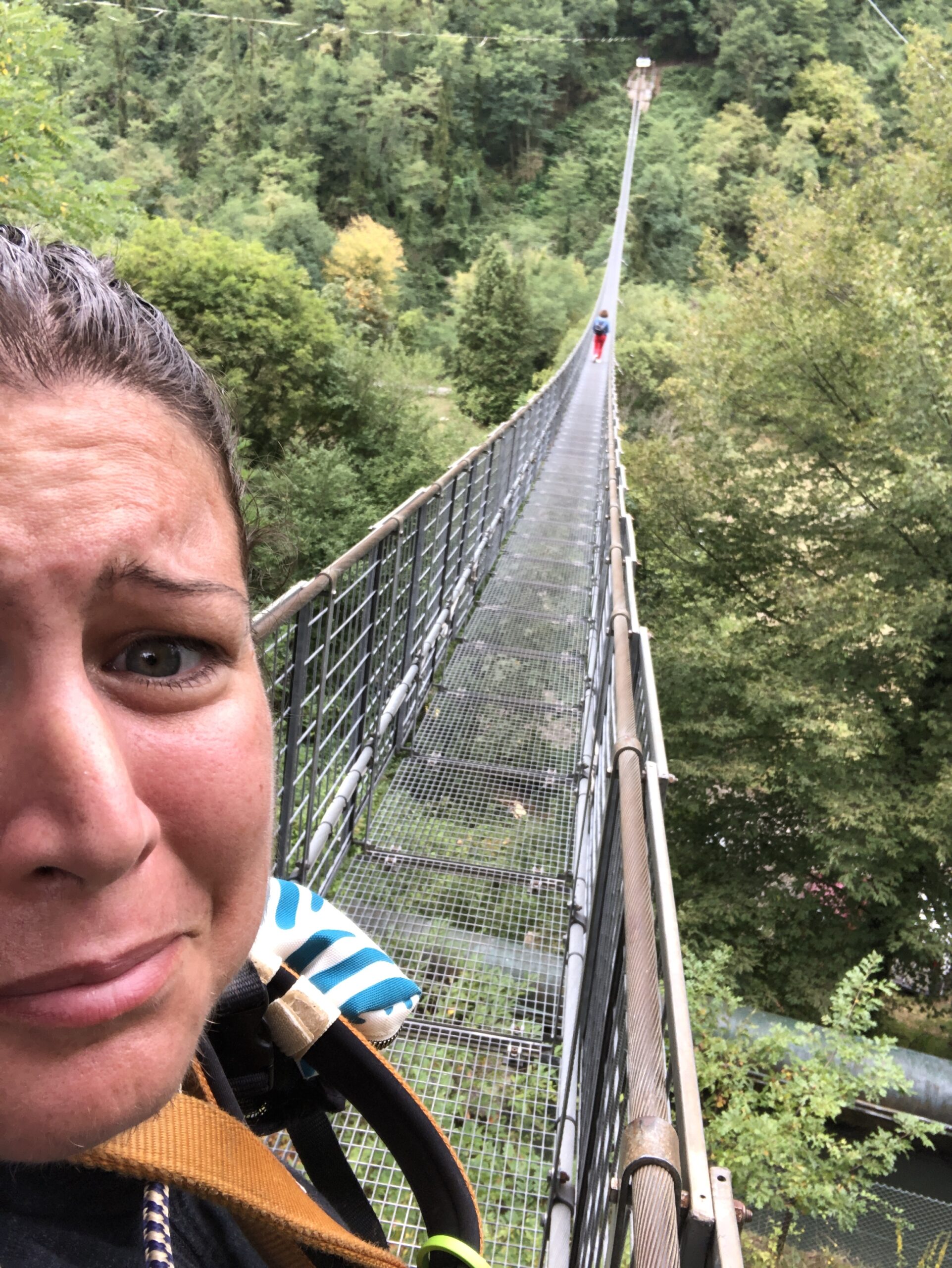 Signora: “Ma dai muoviti! É facile vedrai! Basta che non guardi sotto. Ci vorranno si e no due minuti per arrivare dall’altra parte.”