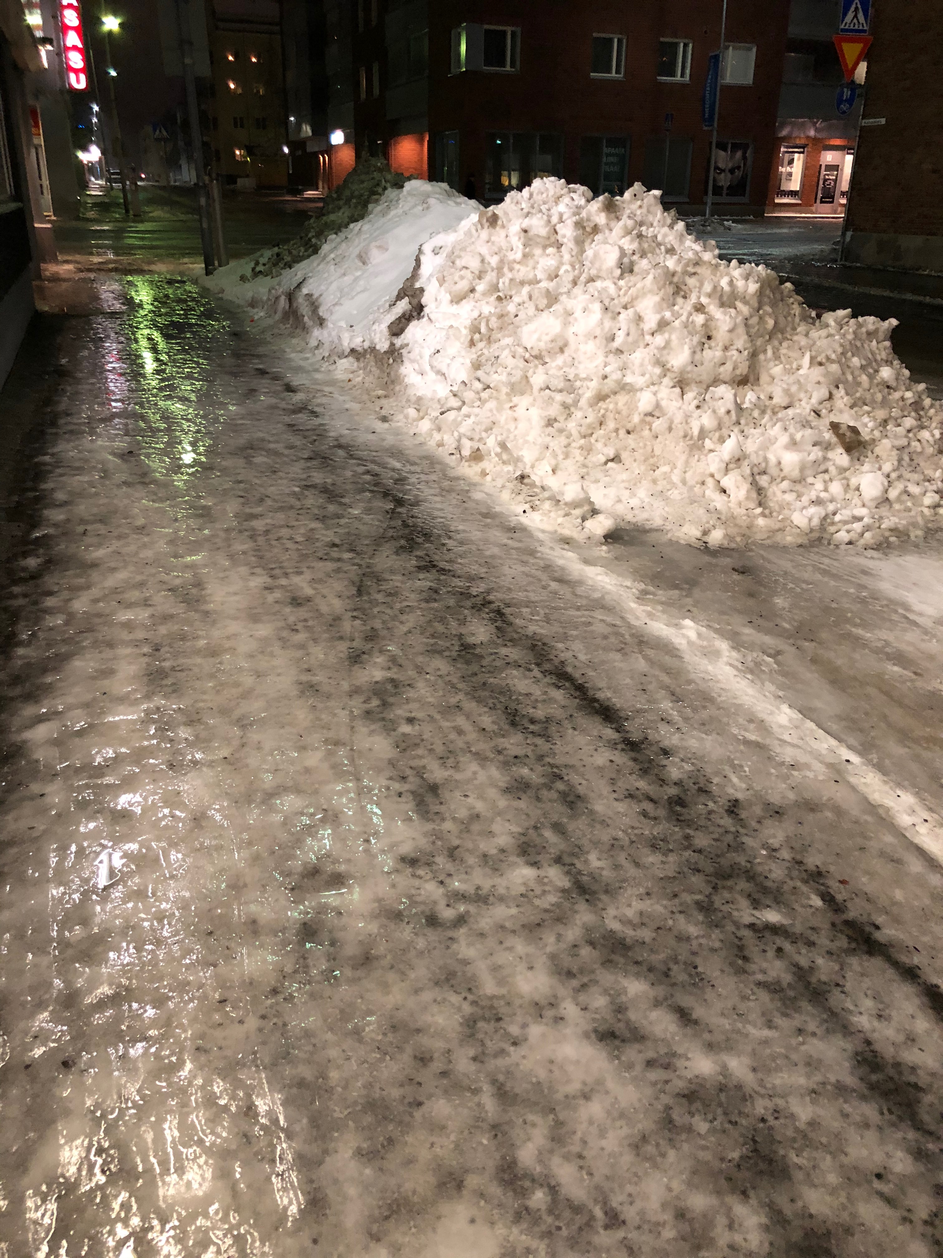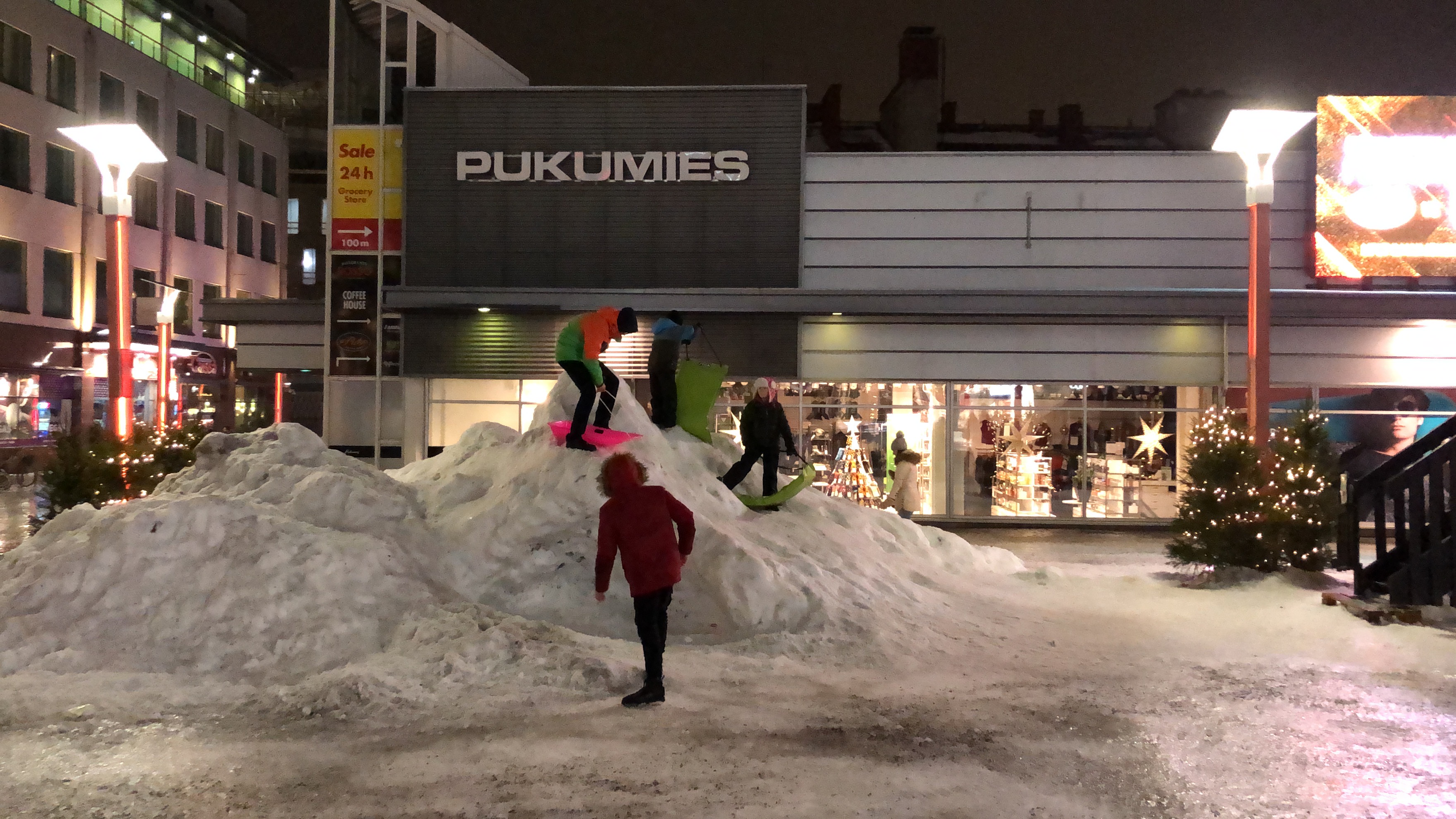 A pensarci bene se sei un bambino (o un pinguino) questa città è la più divertente del Pianeta. Cumuli di neve ai lati delle strade e al centro delle piazze, alcuni alti anche diversi metri, perfetti per un’arrampicata pomeridiana o una scivolata con lo slittino. Qui è un accessorio che hanno in molti, ne vedi di ogni foggia, colore e dimensione e sdrucciolano via in gran velocità stridendo sull’asfalto ghiacciato. Se non fosse che ho perso l’agilità agli inizi del Duemila, ci avrei provato anch’io a scendere da uno di questi rilievi ghiacciati e son sicura, sarei scivolata giù dritta come un fuso andandomi a schiantare contro qualche vetrina.